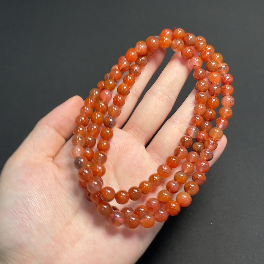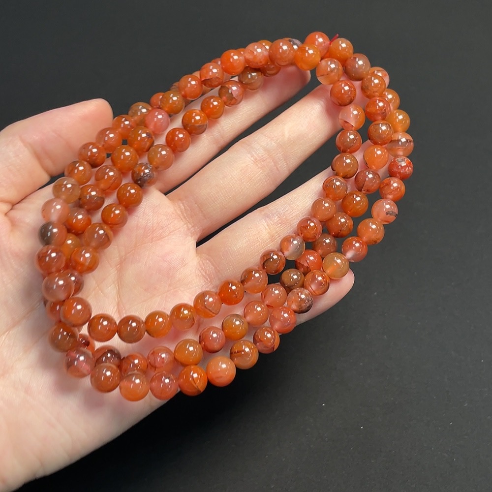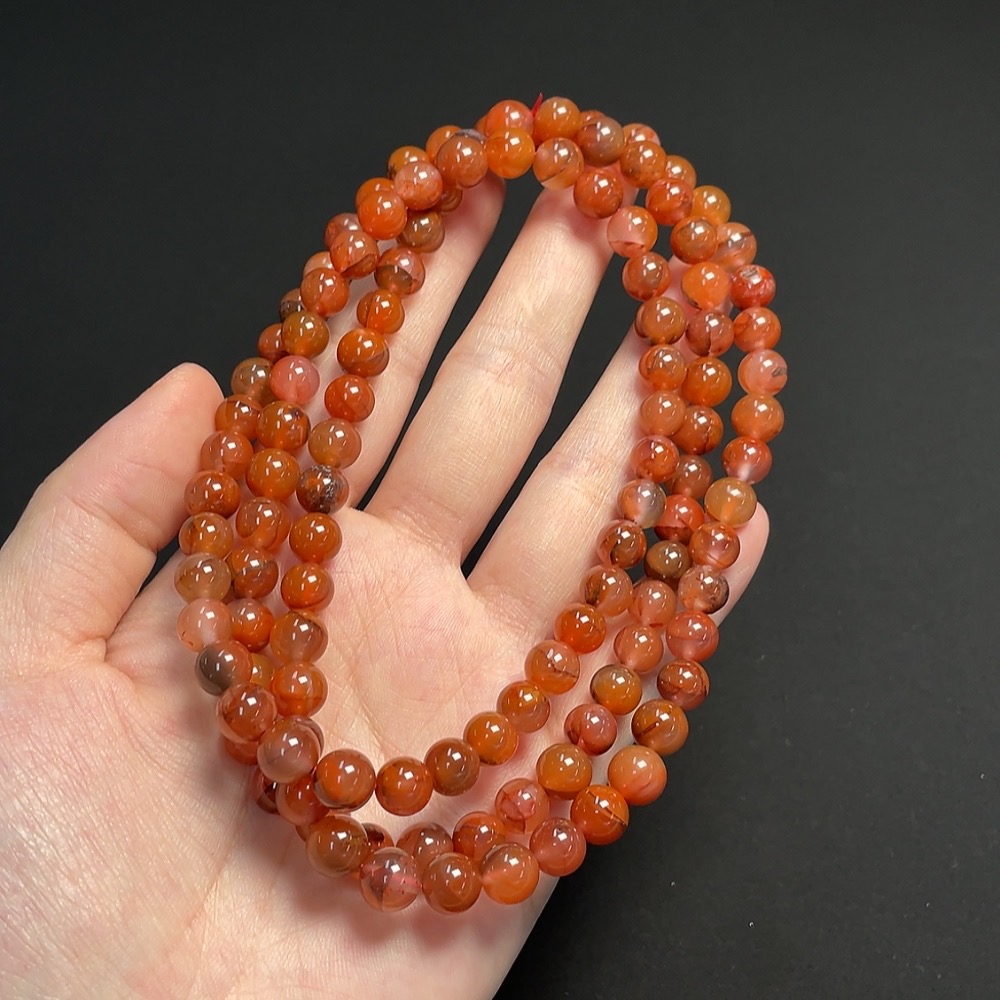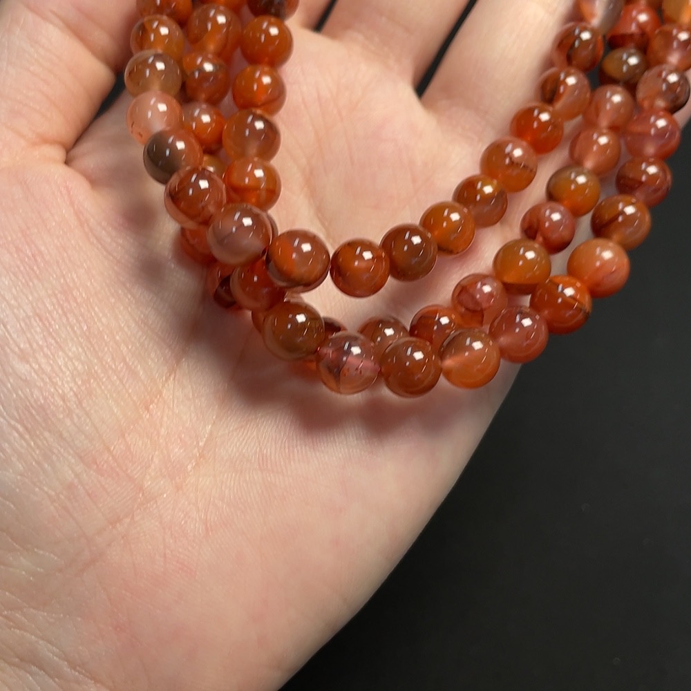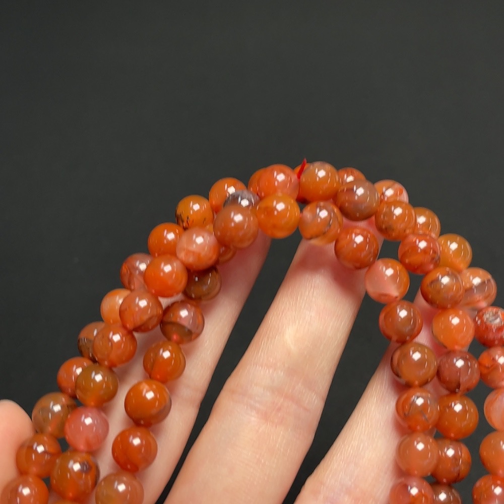 South Red Agate Bead Strand, approximately 7.2mm, total weight about 66.43g, visible organic matter