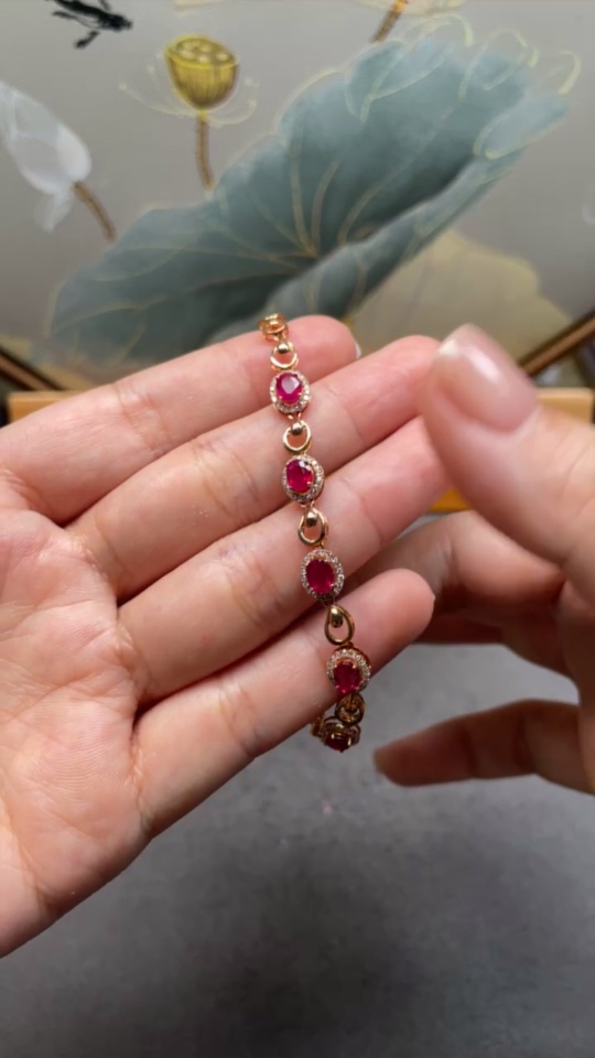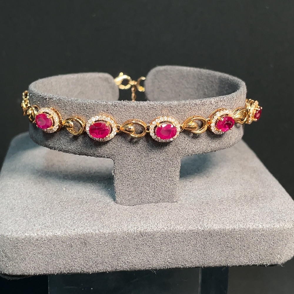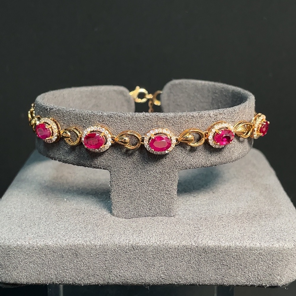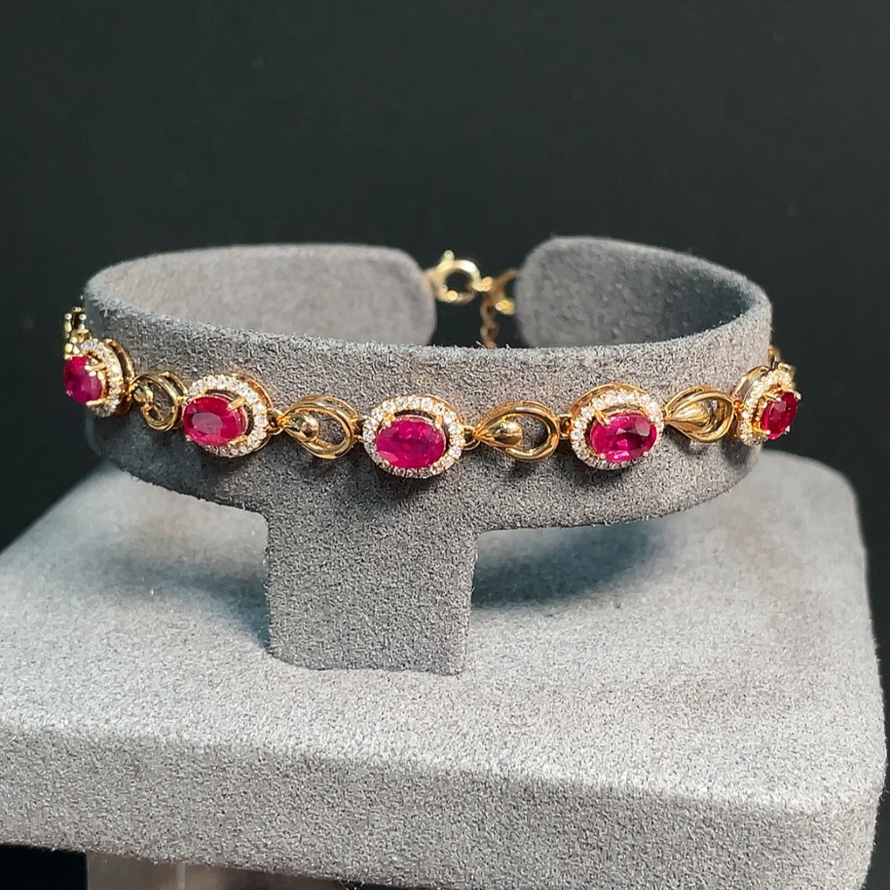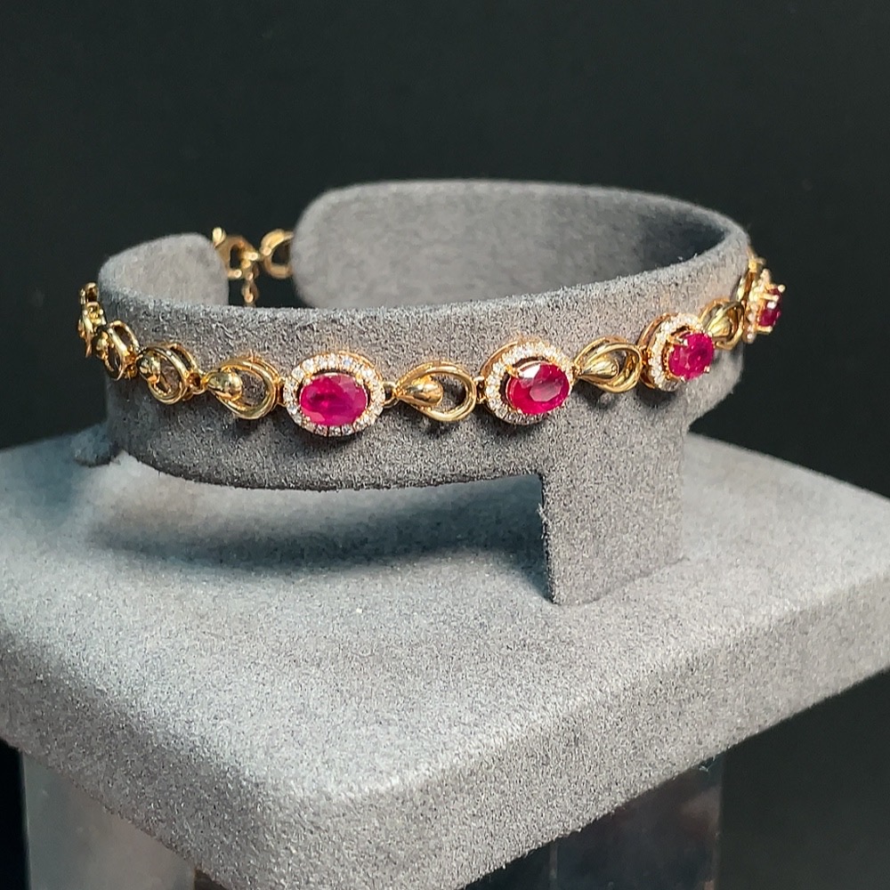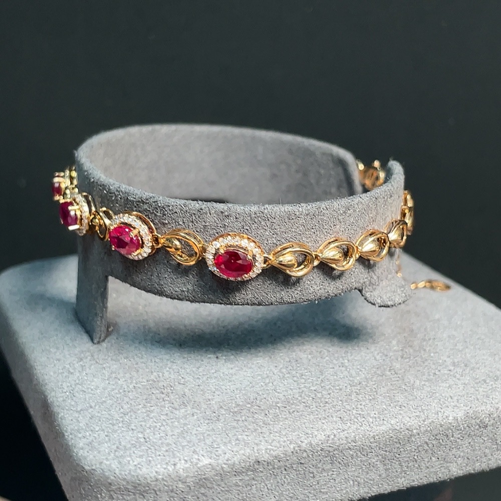Ruby Inlaid Bracelet 18k Gold Total Weight Approx. 6.06g Filled with Diamond Accents