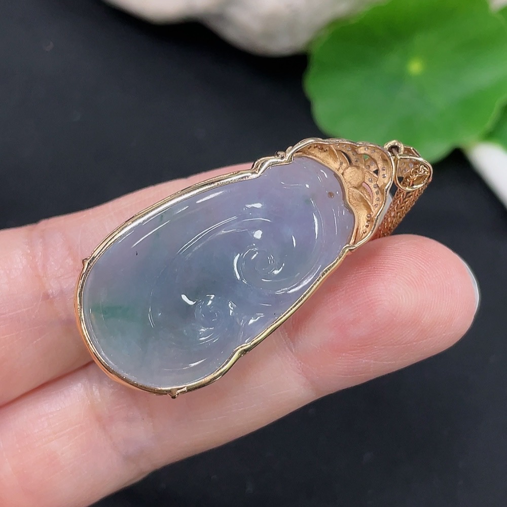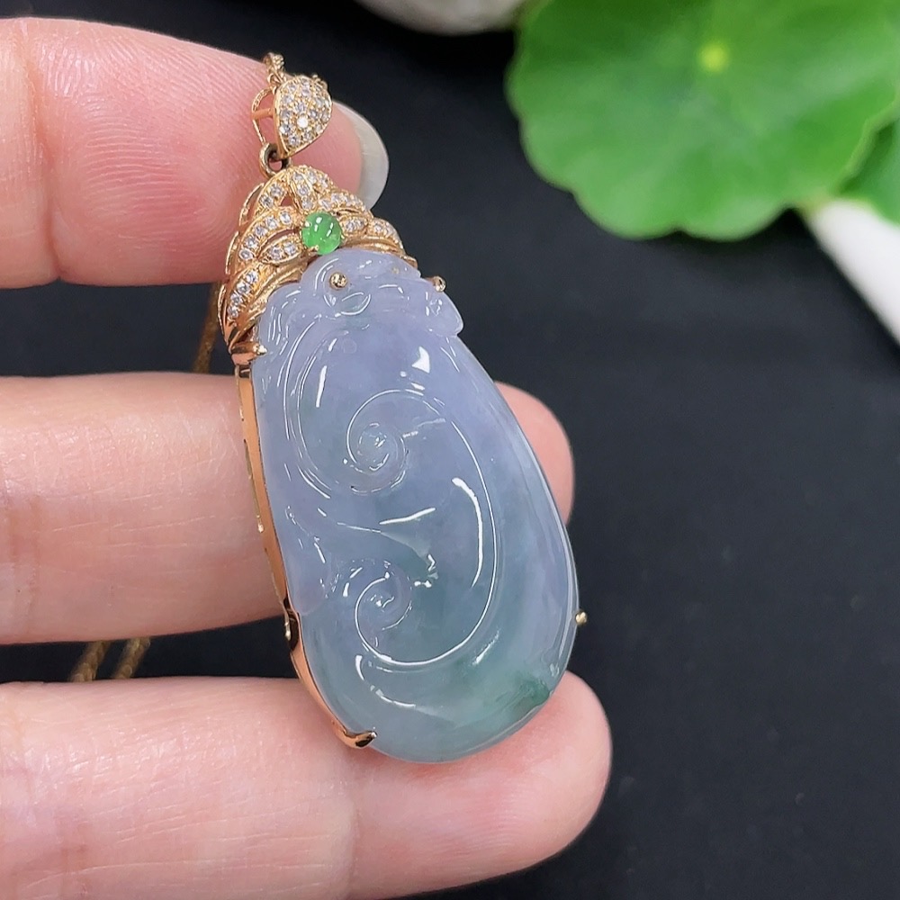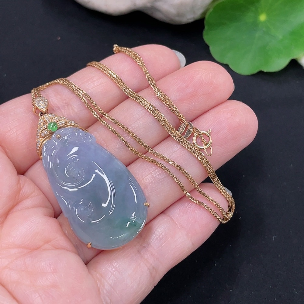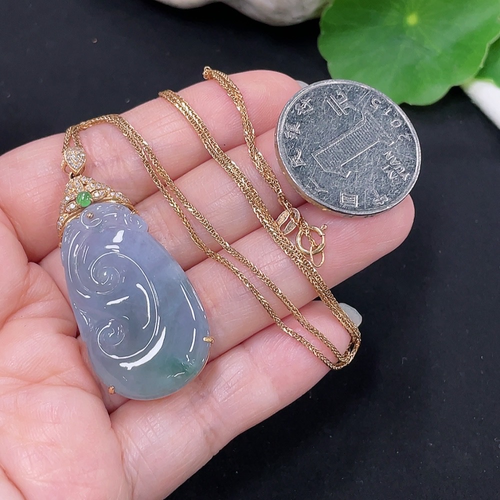 Jadeite Ruyi Inlaid Pendant 18K Gold Total Weight Approx. 9.4g (Including Chain Weight) (With Diamond Accents)