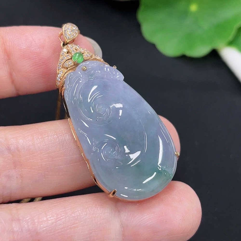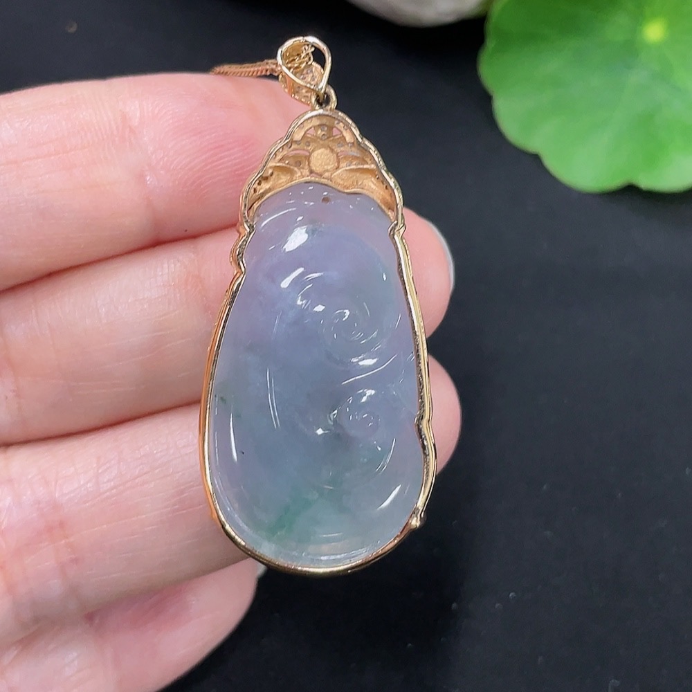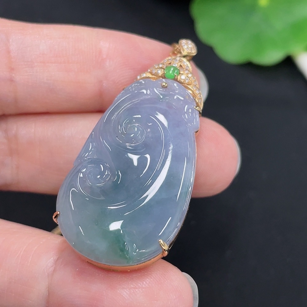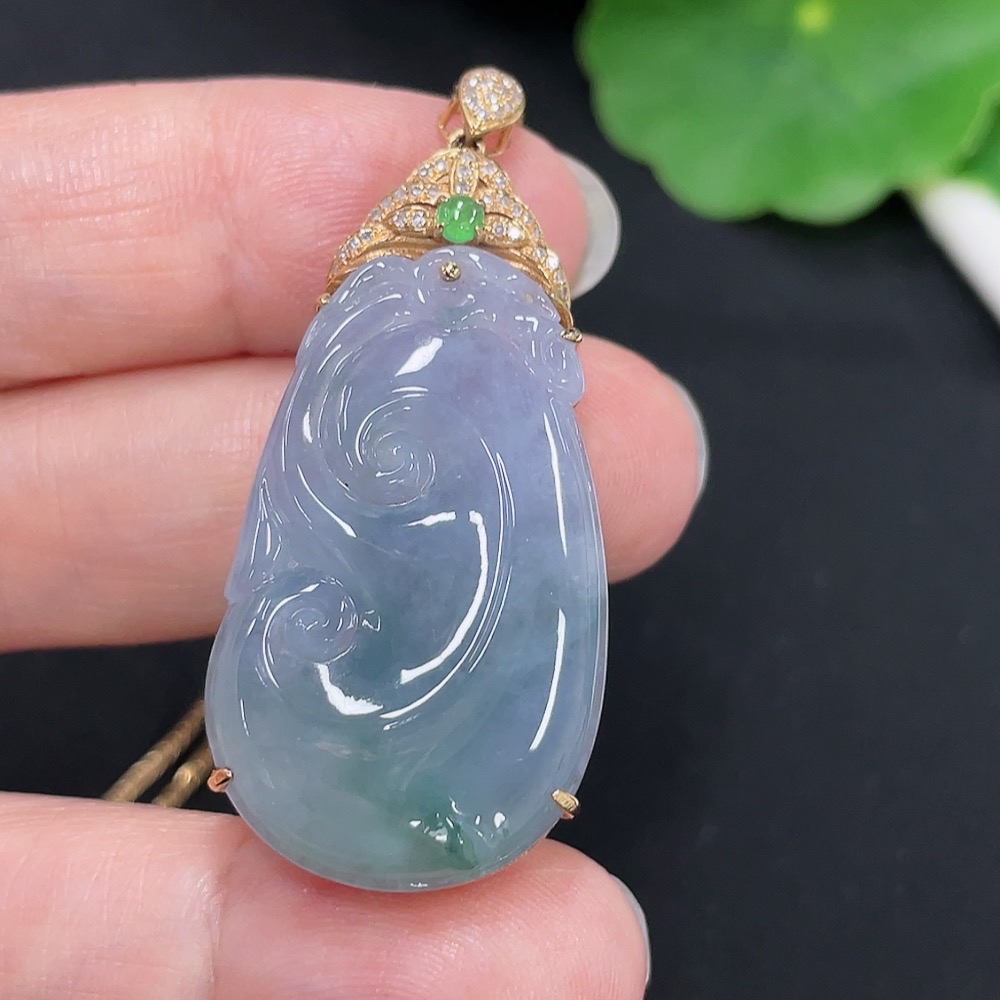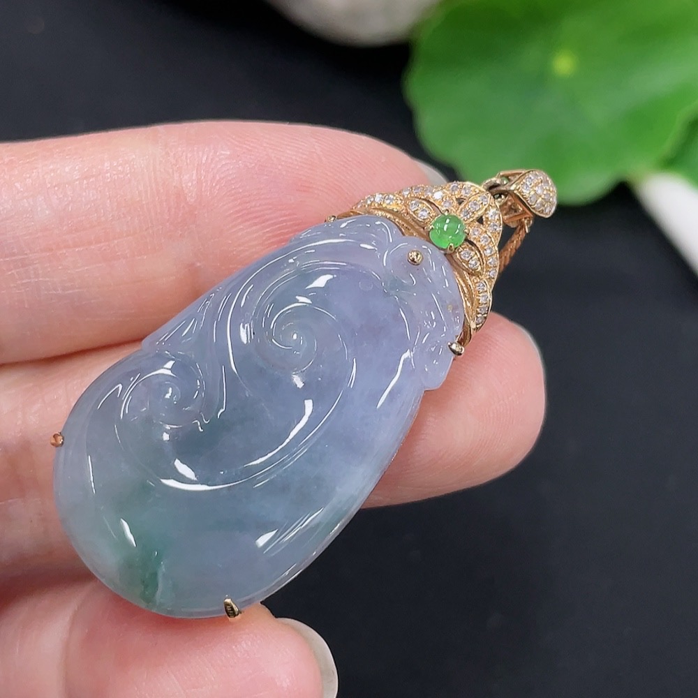 Jadeite Ruyi Inlaid Pendant 18K Gold Total Weight Approx. 9.4g (Including Chain Weight) (With Diamond Accents)