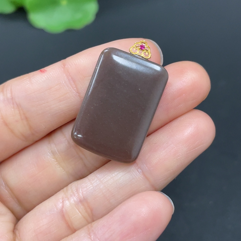 Hetian Jade Pendant, Plain Pendant with 18K Gold Clasp, Total Weight Approx. 9.3g