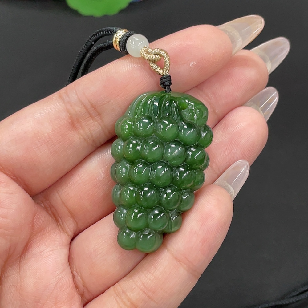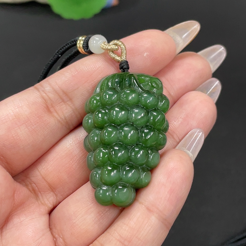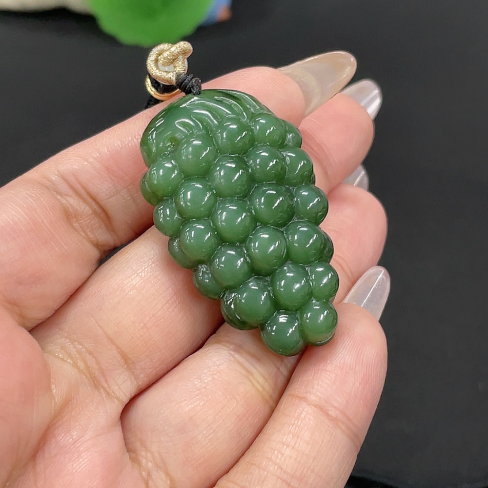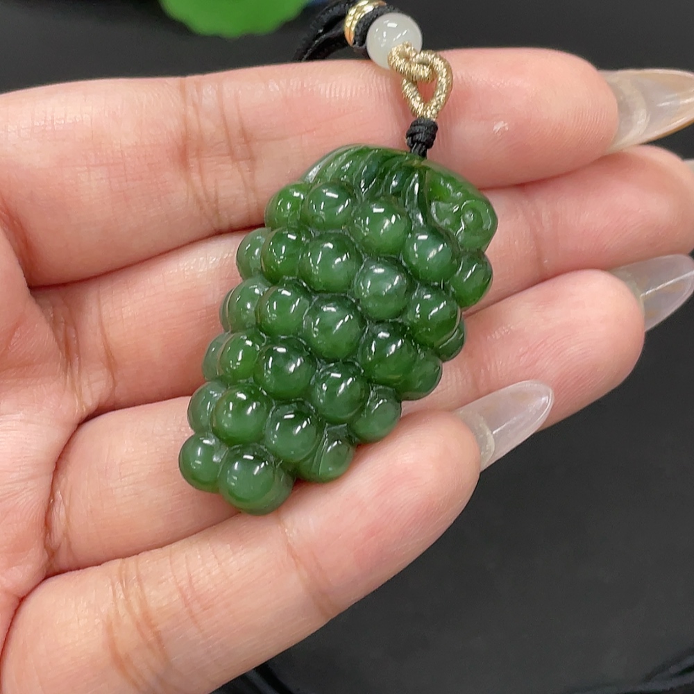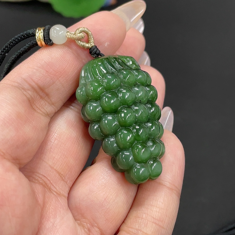 Hetian Jade Jasper Pendant "Blessing of Abundant Descendants" Total Weight Approx. [Including Rope] 26.2g