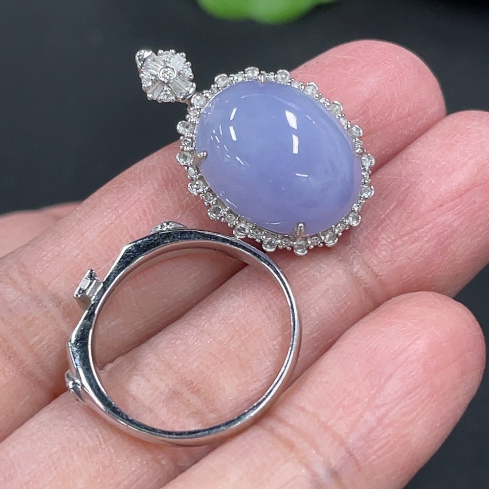 Jadeite Cabochon Ring and Pendant Convertible Set, 18K Gold Setting, Size 14, Total Weight Approx. 6.15g, Accented with Diamonds