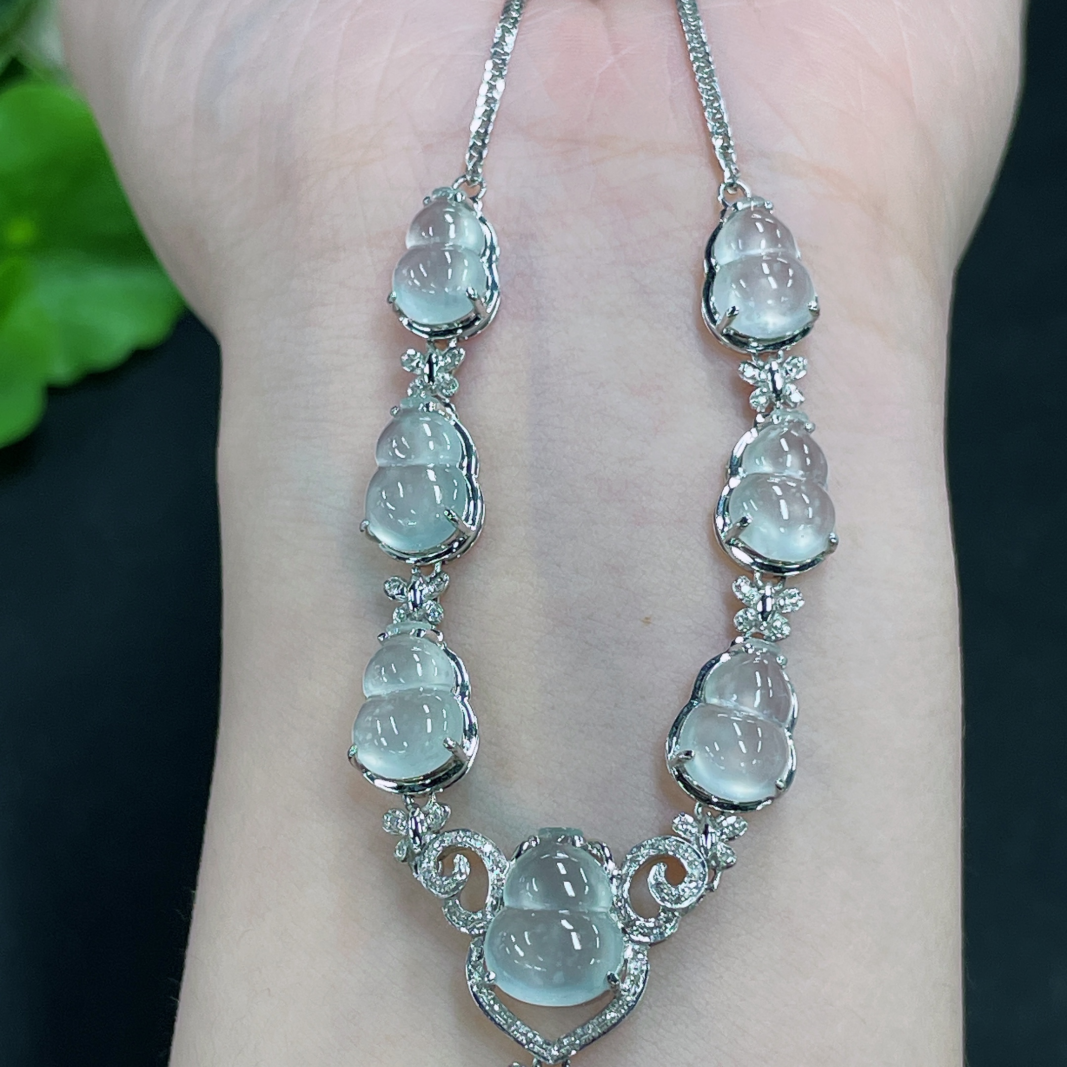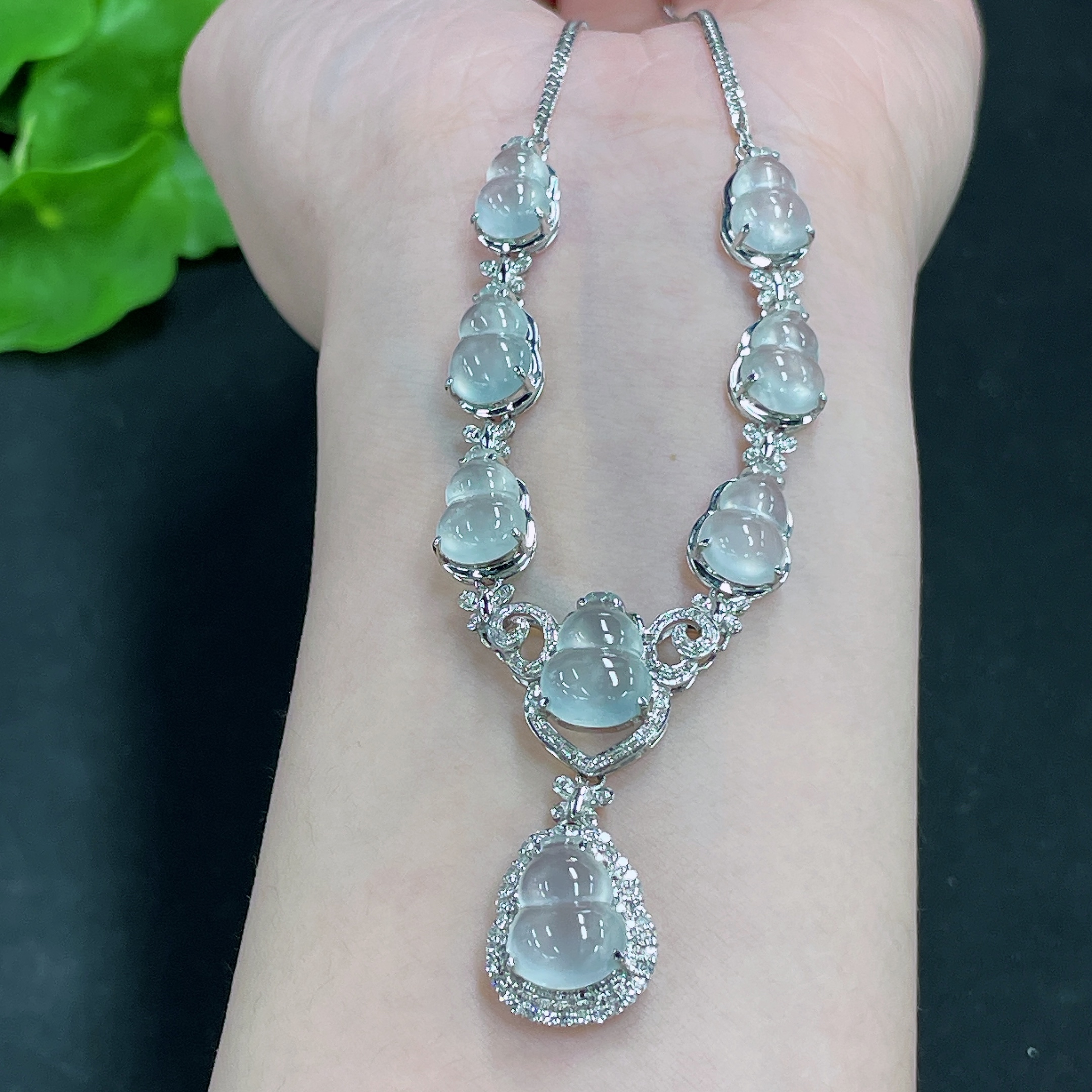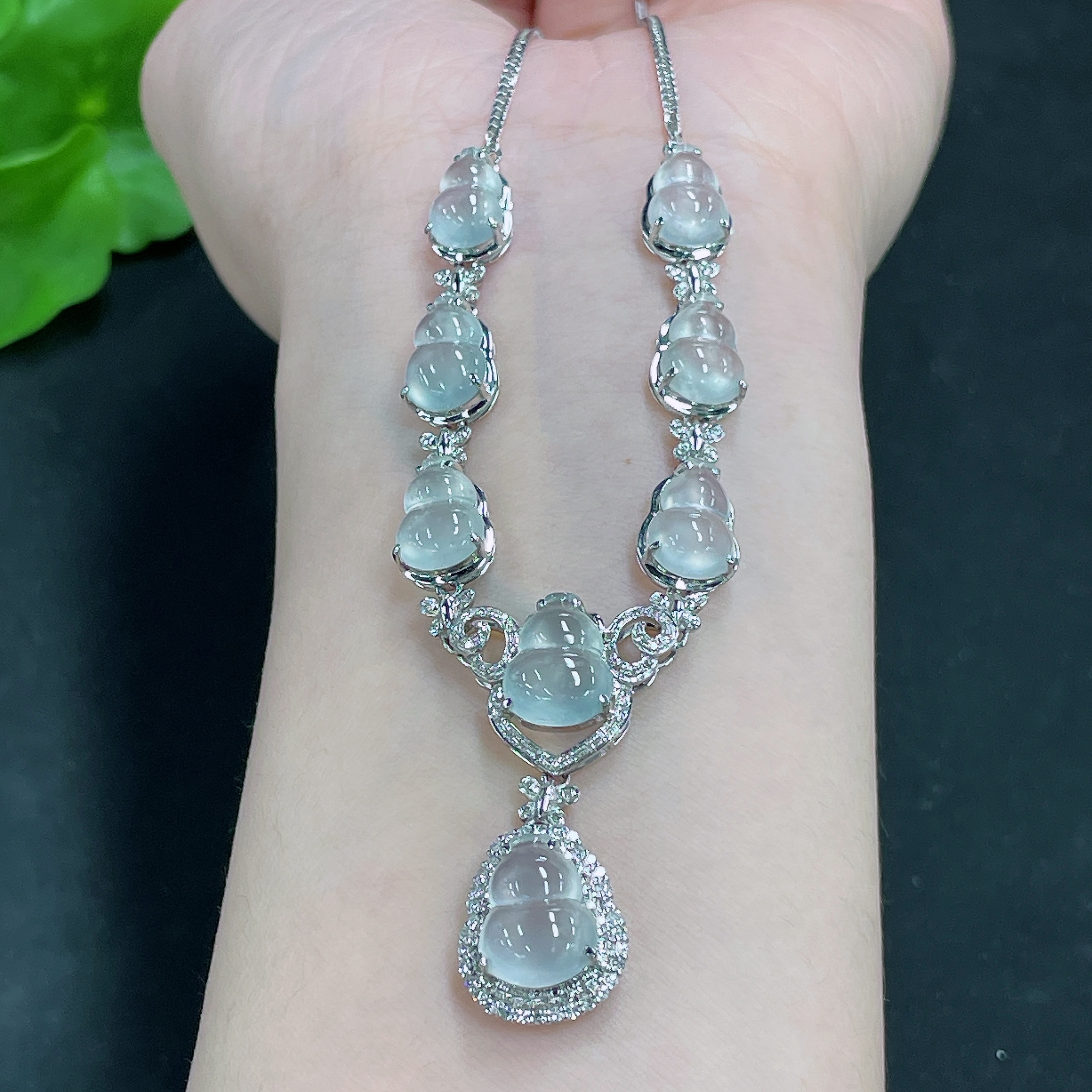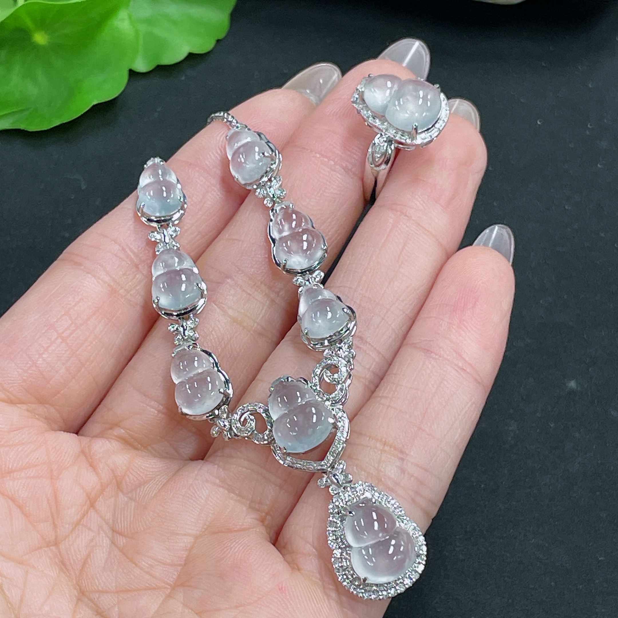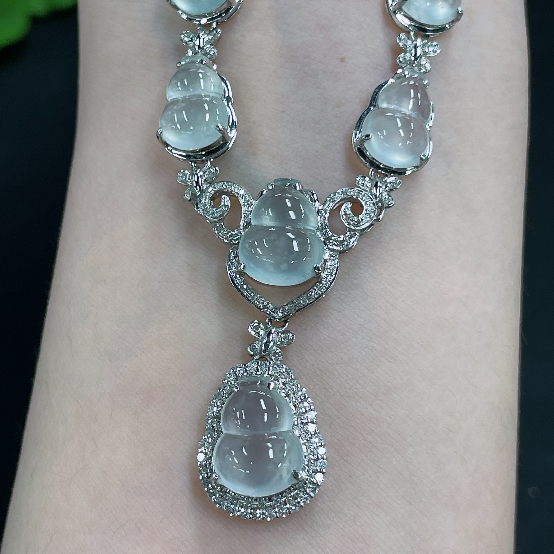 Jadeite Necklace + Ring 18k Gold Set with Diamond Accents Total Weight Approx. 13.76g