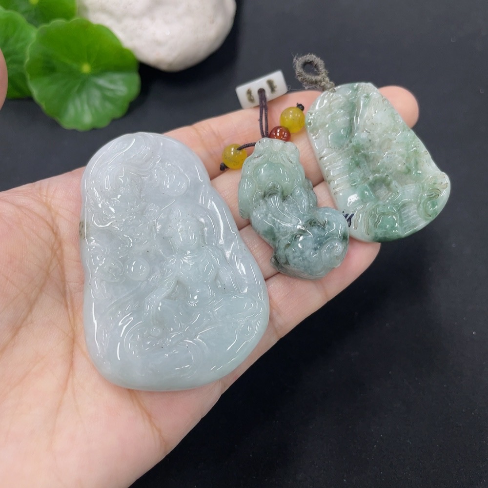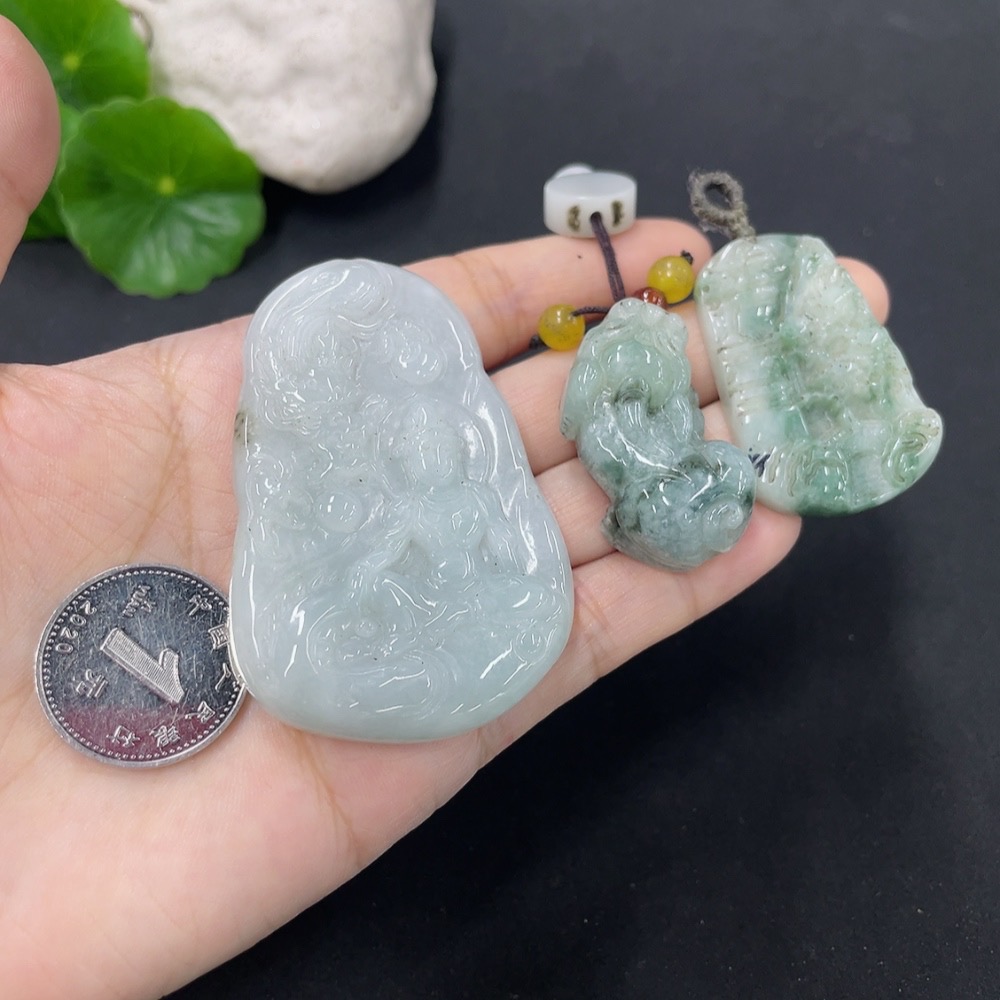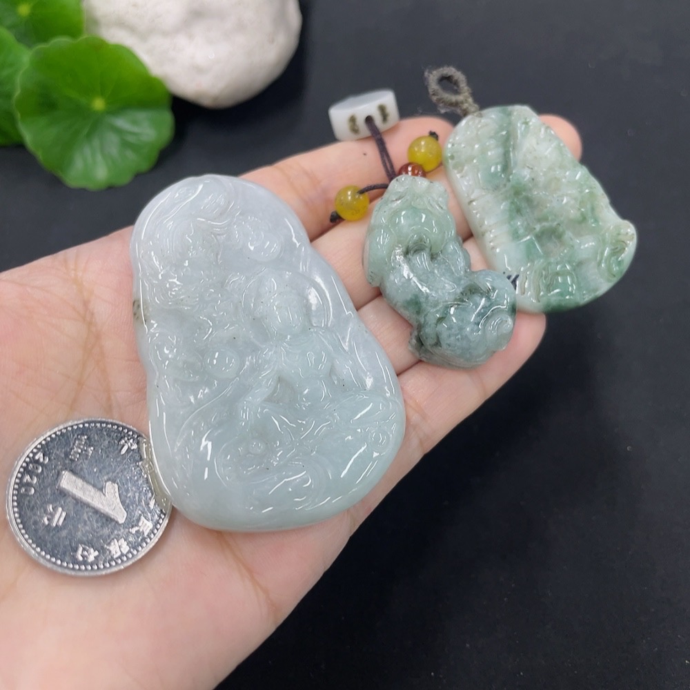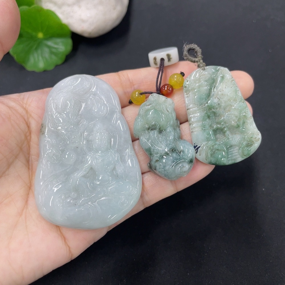Jadeite Pendant Sell as a Lot (with other mineral components) (matching beads not A)