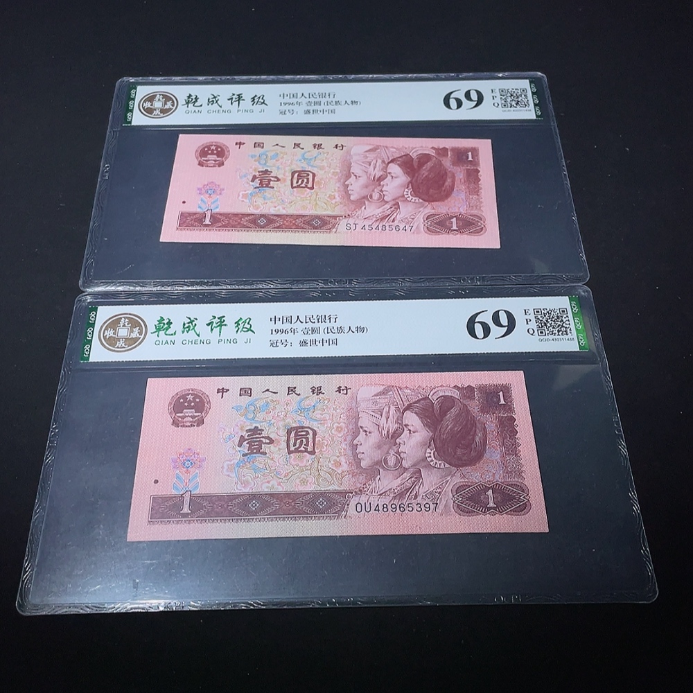 Two 961 banknotes from the fourth edition, graded and encapsulated in protective cases, original and in excellent condition