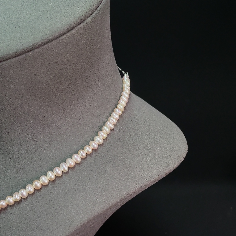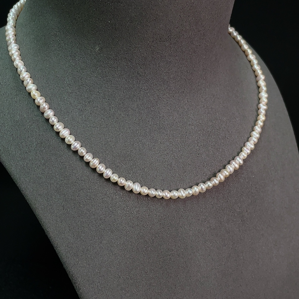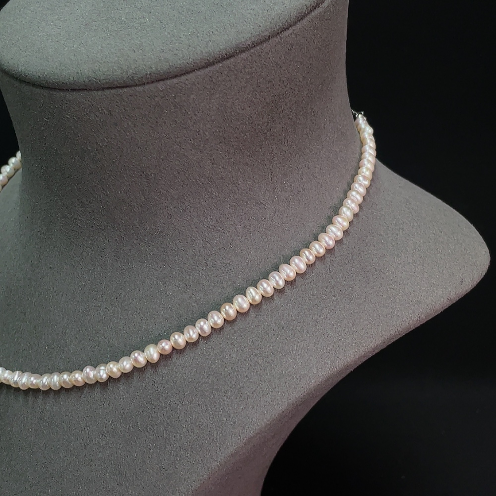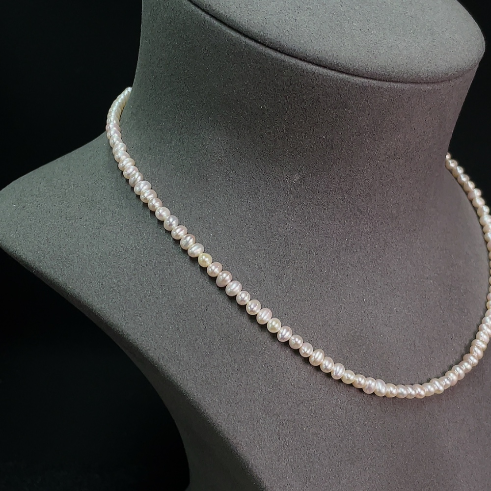Pearl bead necklace, non-gold, total weight approx. 11.3g, bead size approx. 4.7mm