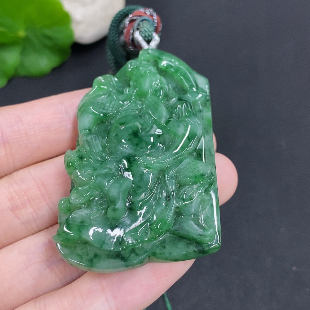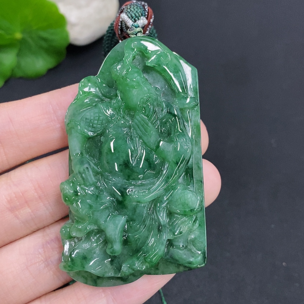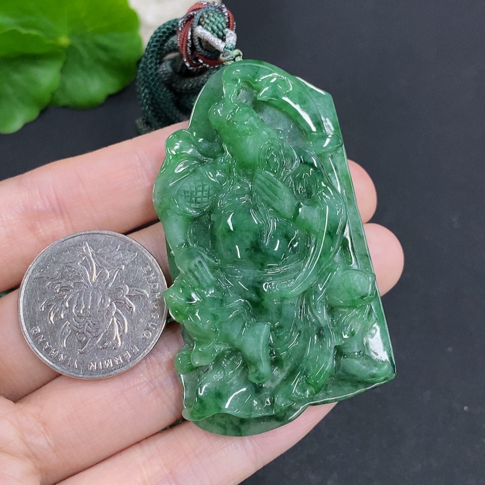 Jadeite Guan Gong Pendant Total Weight Including Rope Approx. 50.8g