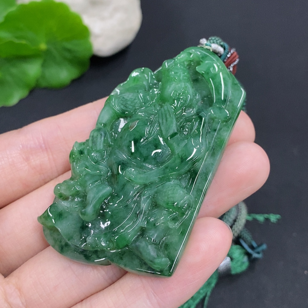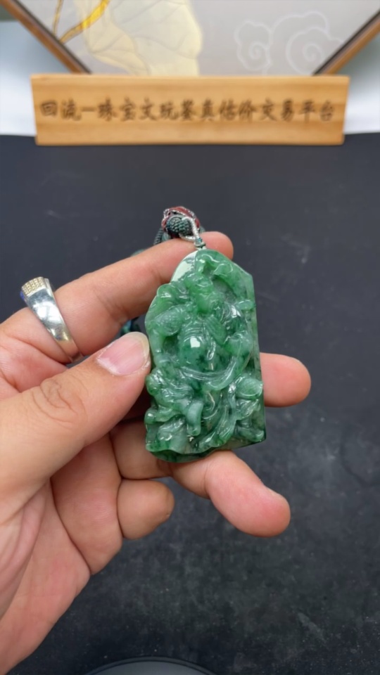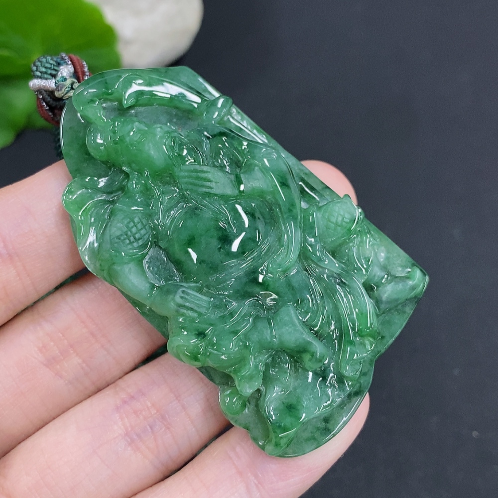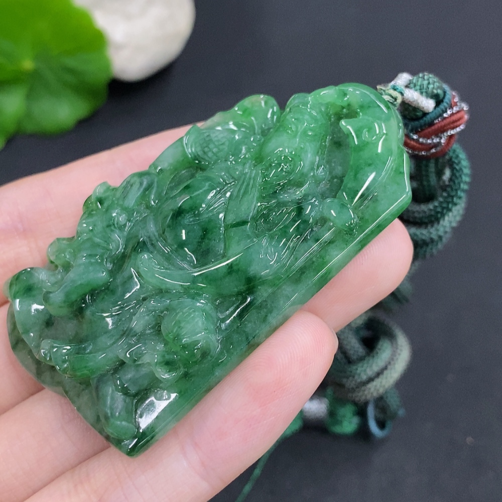 Jadeite Guan Gong Pendant Total Weight Including Rope Approx. 50.8g