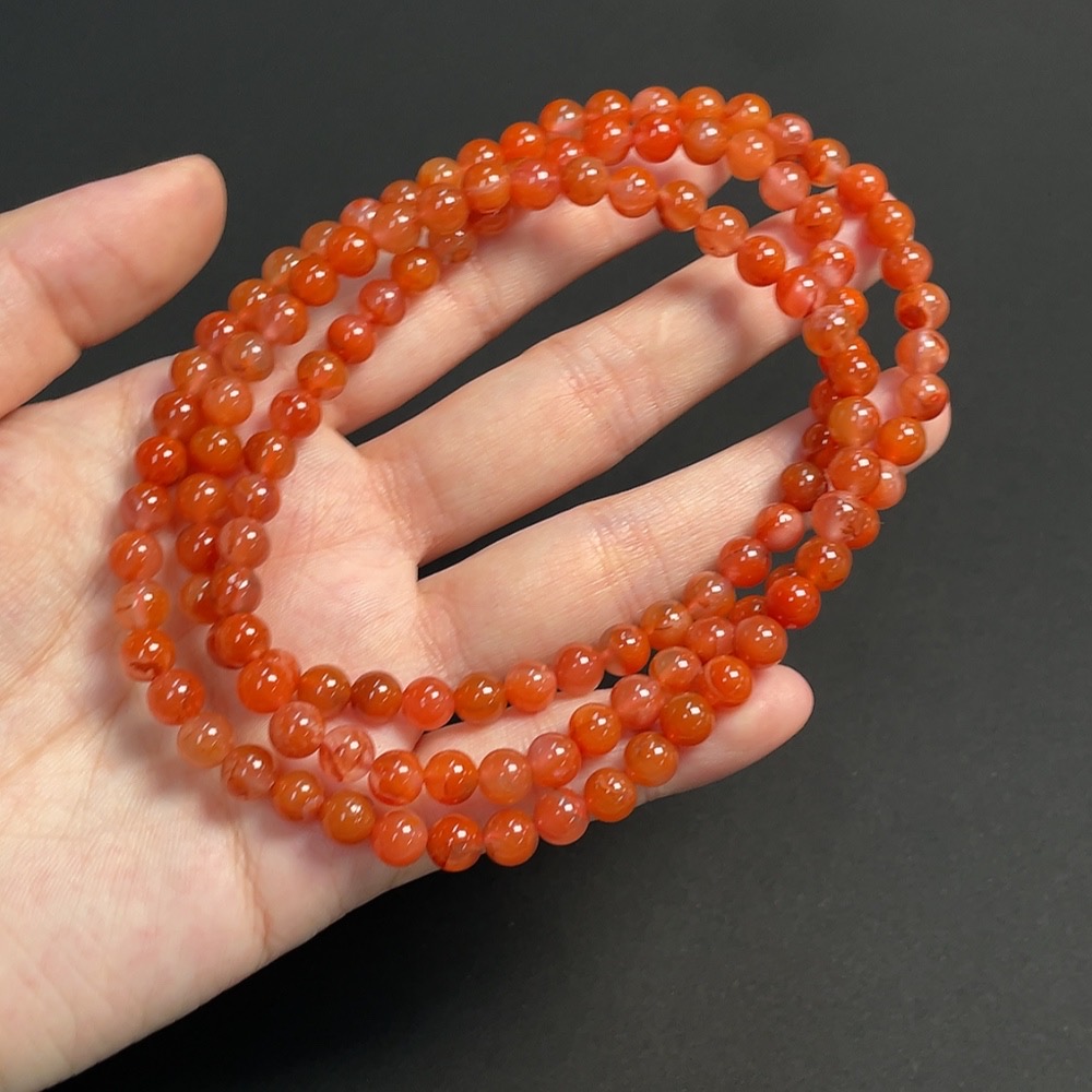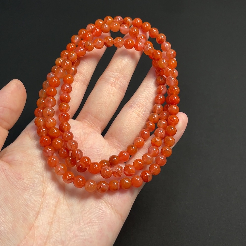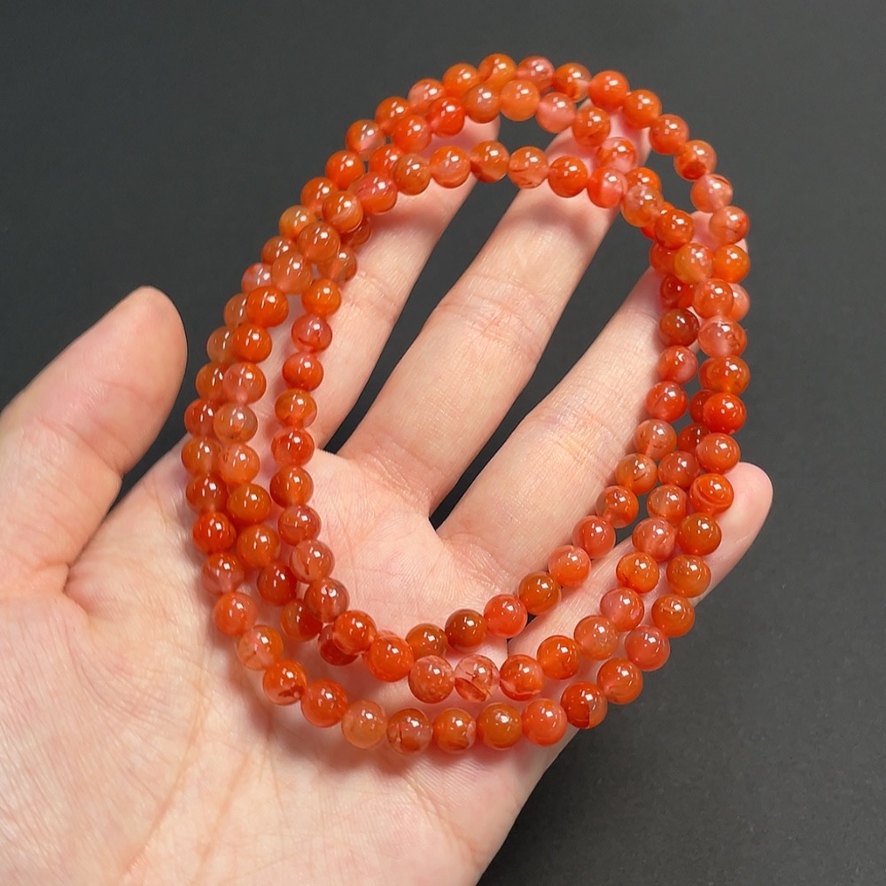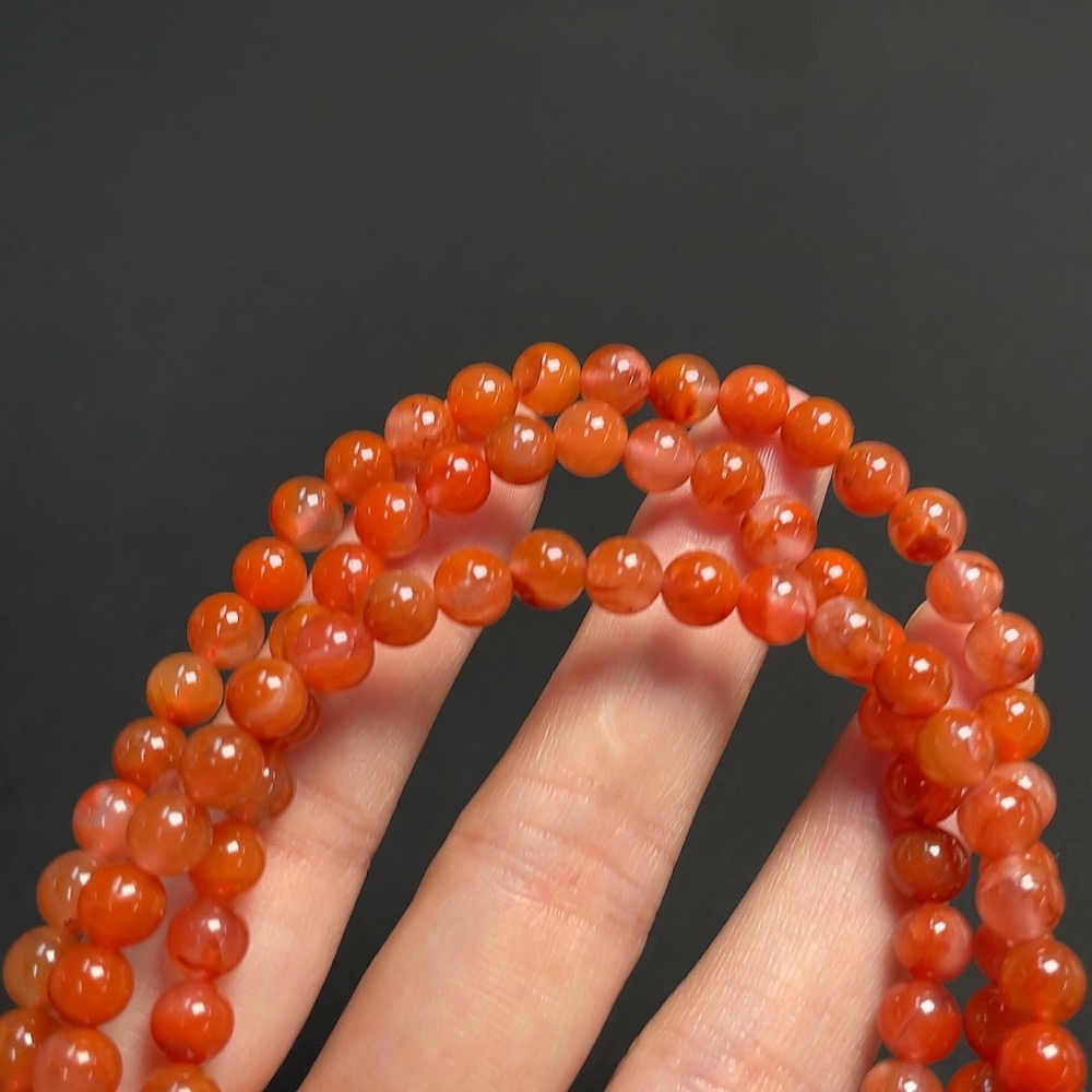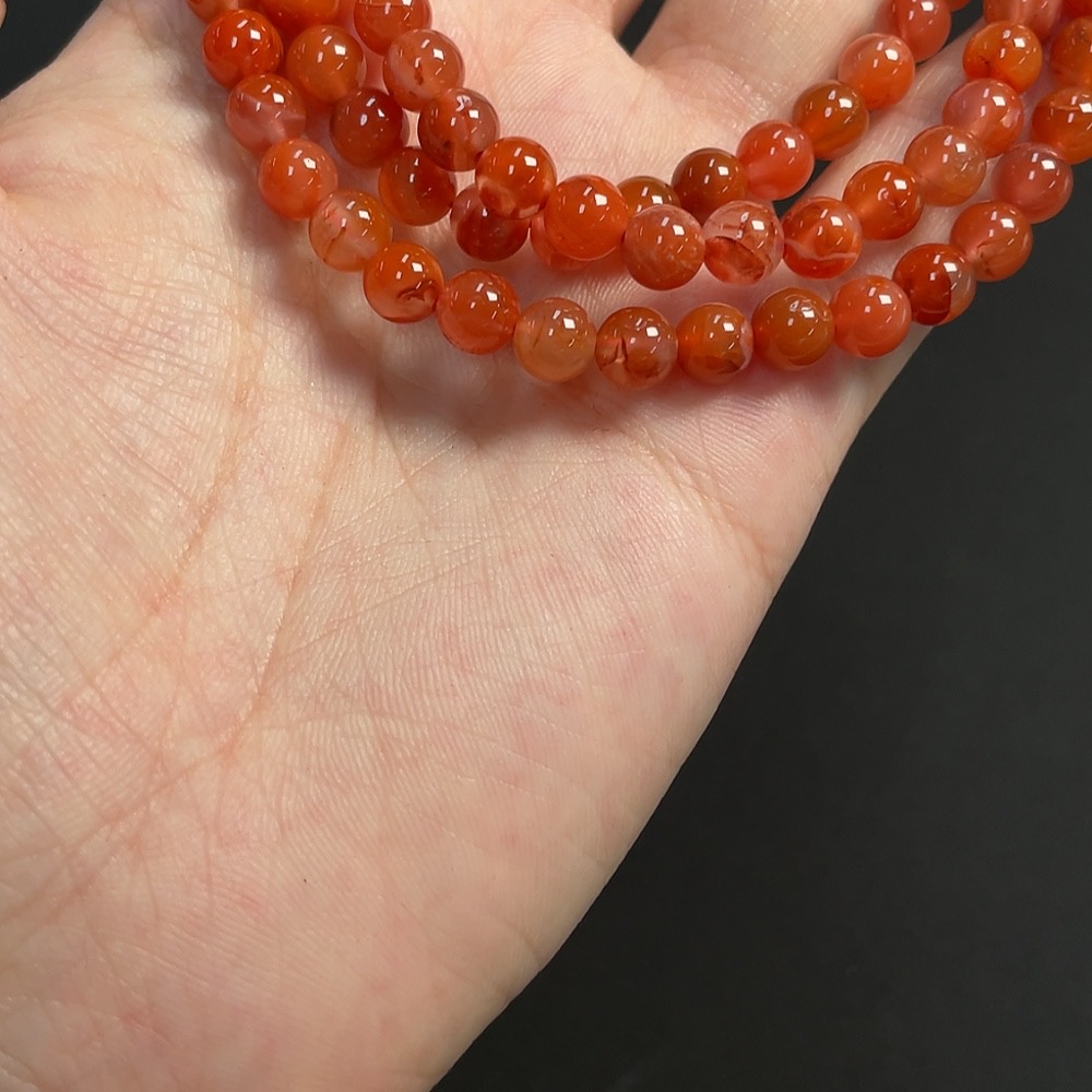 Red Agate Bead Strand, approx. 6mm, total weight about 37.35g, organic inclusions visible