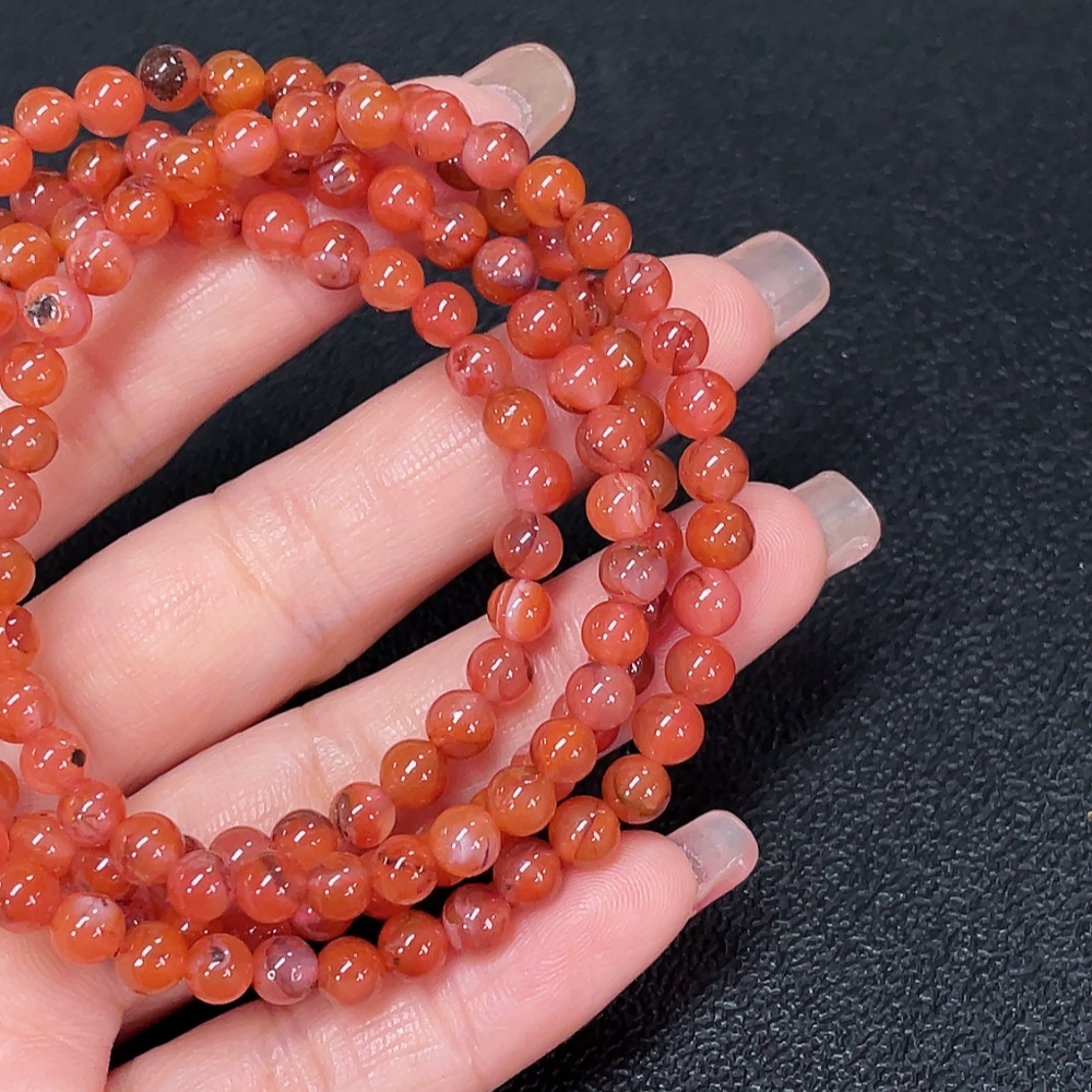 South Red Agate Bead Strand with Visible Organic Matter, Total Weight Approximately 26.22g, Size About 5.1mm
