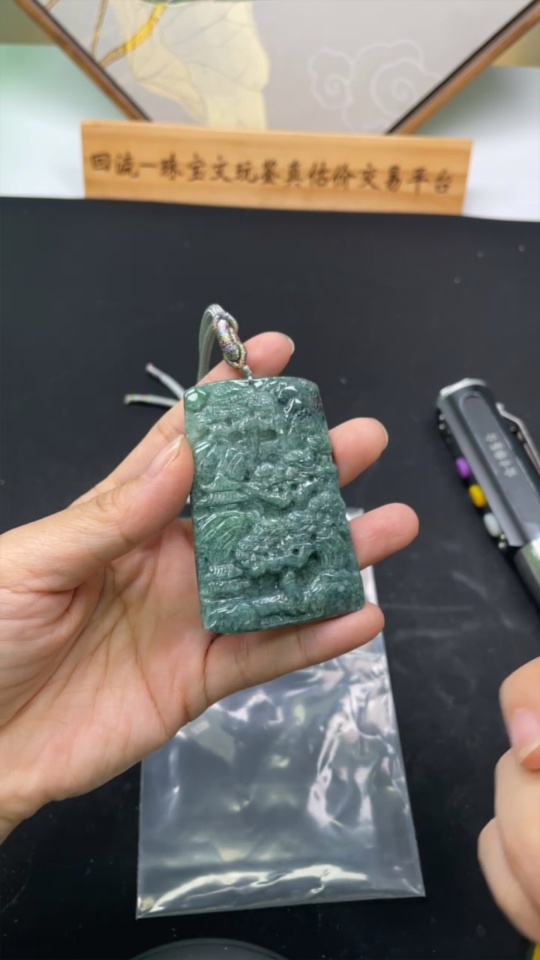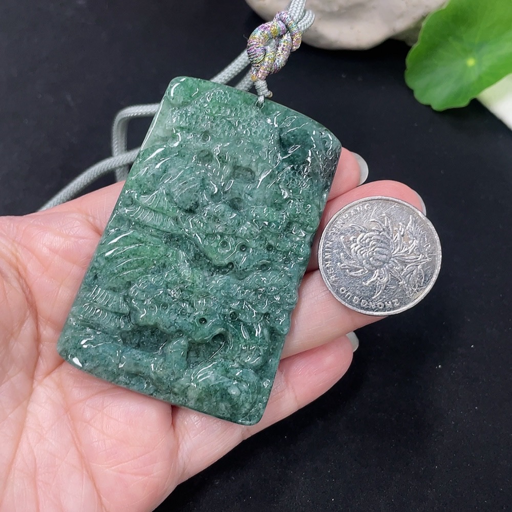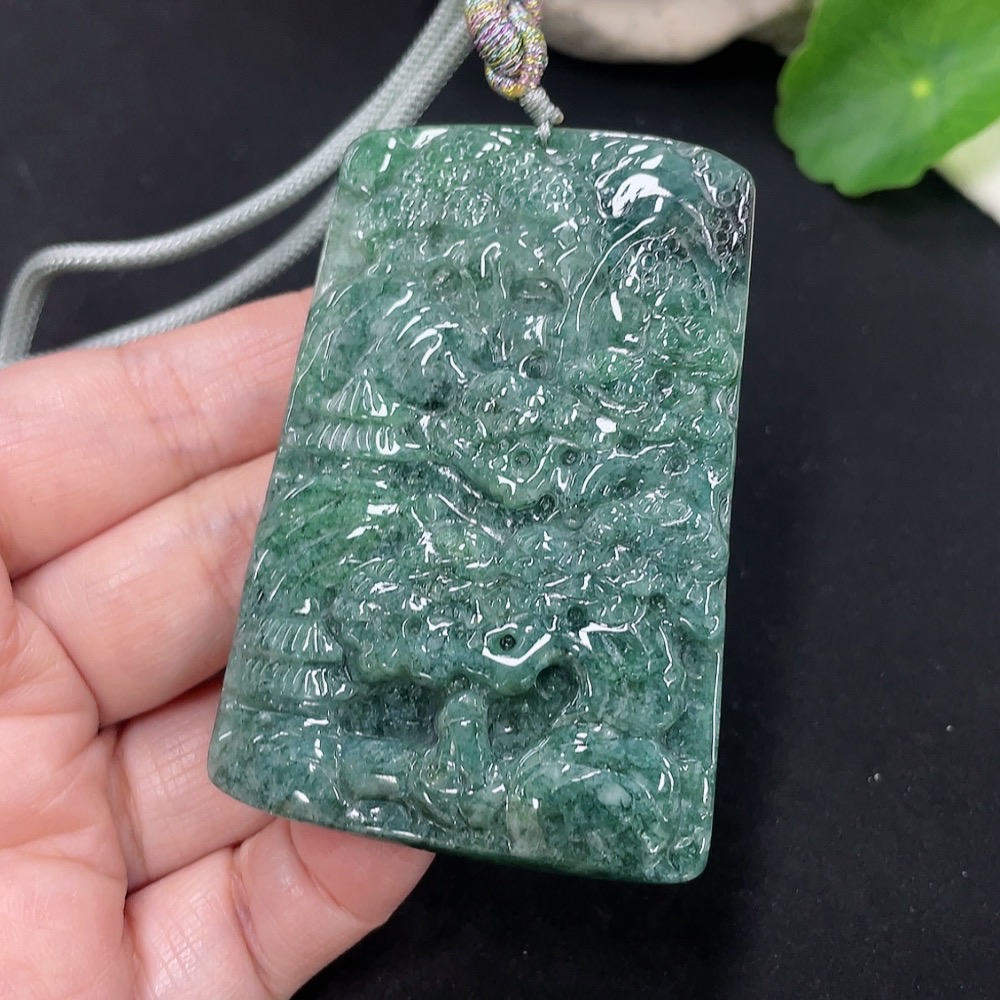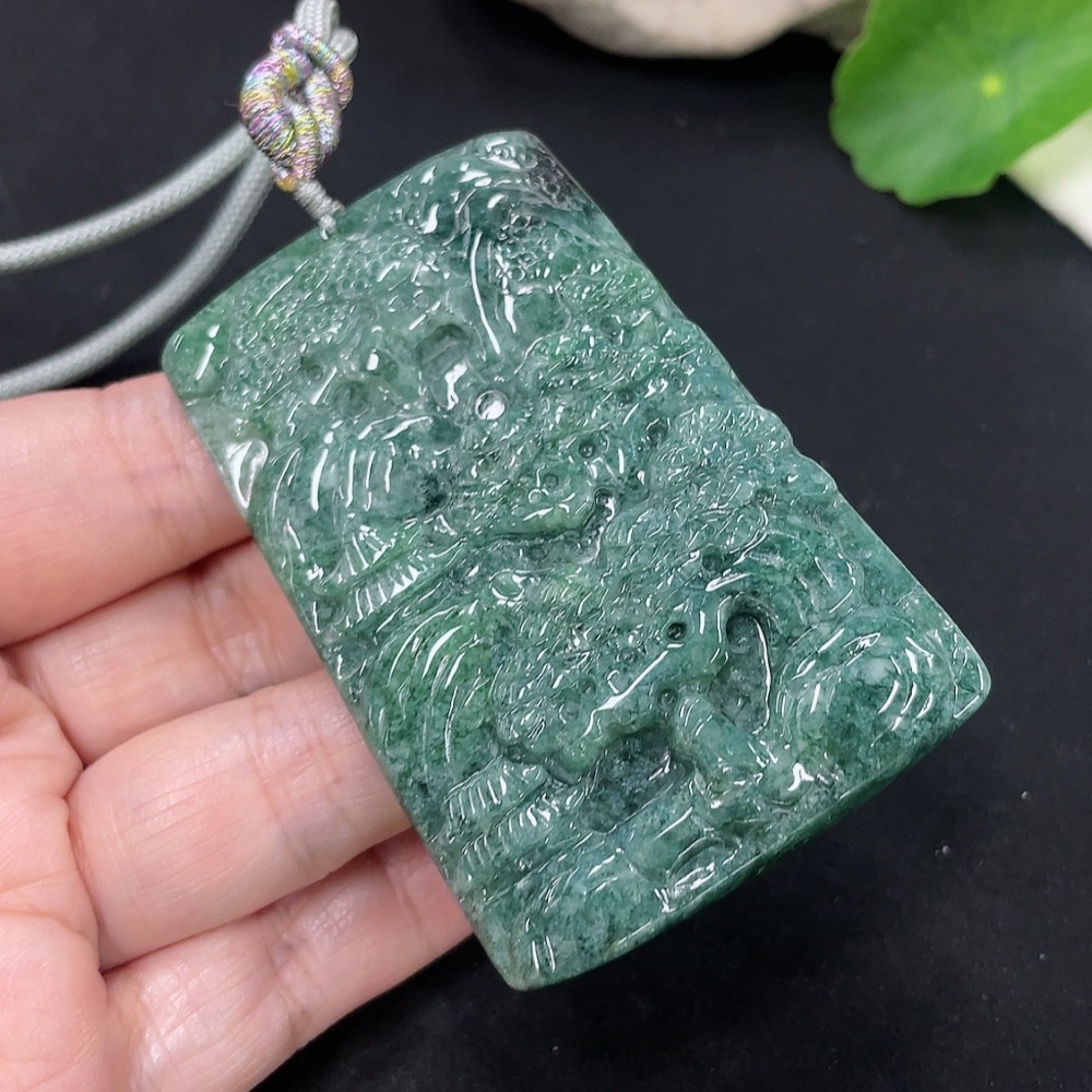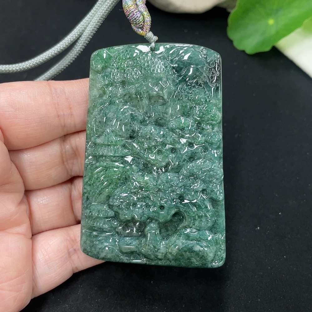 Jadeite Landscape Pendant Total Weight Approx. 48.1g (including rope weight)