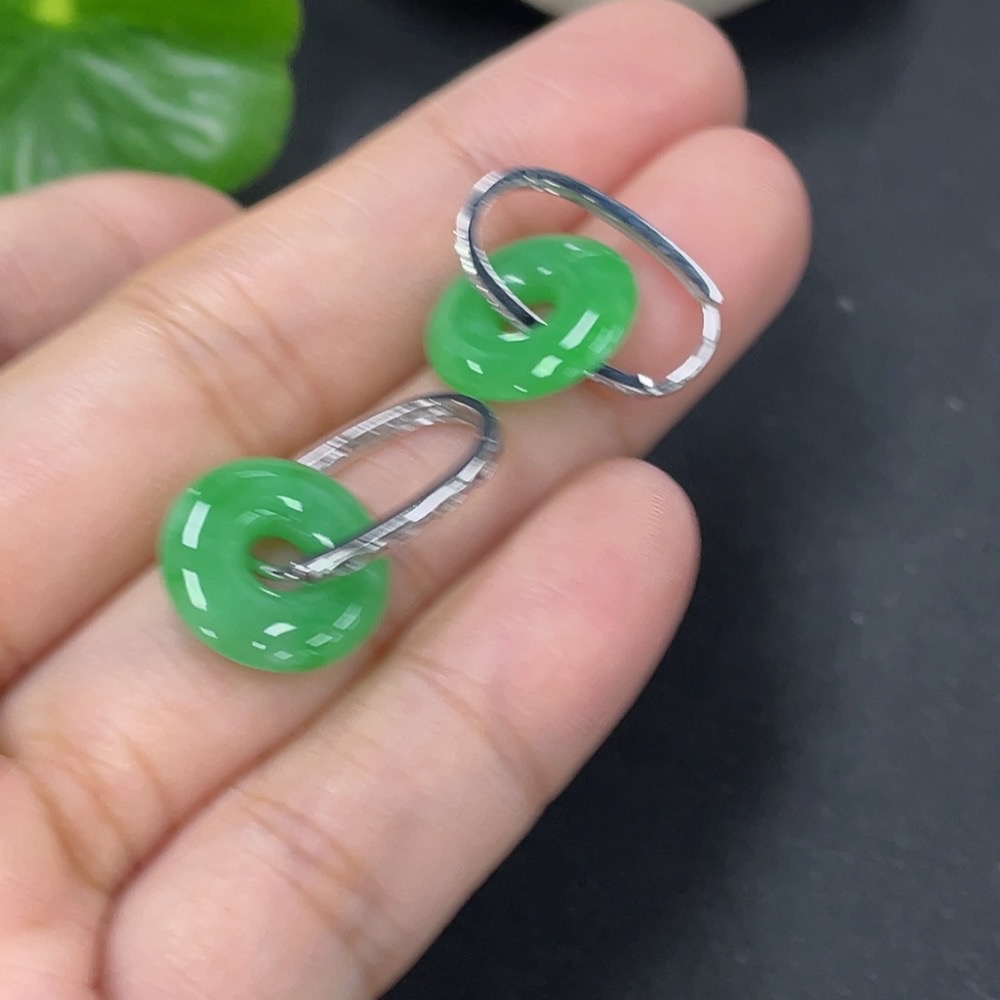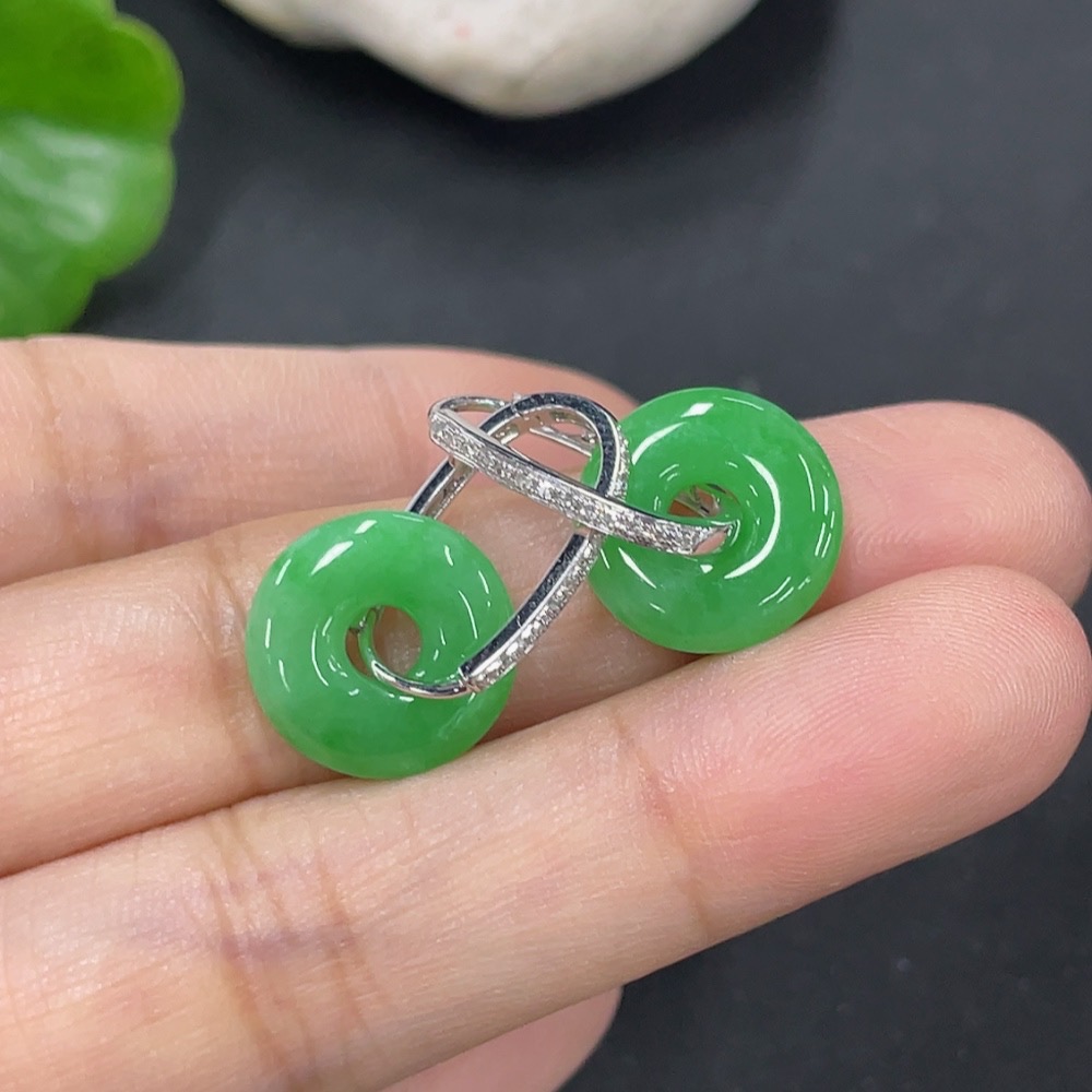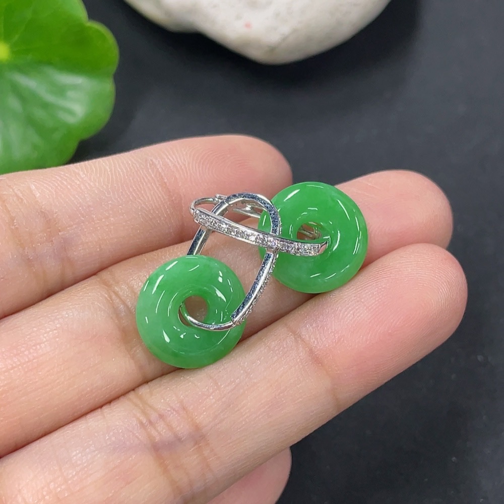 Jadeite Earrings with 18k Gold and Diamond Accents, Total Weight Approximately 2.88g