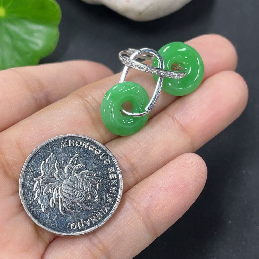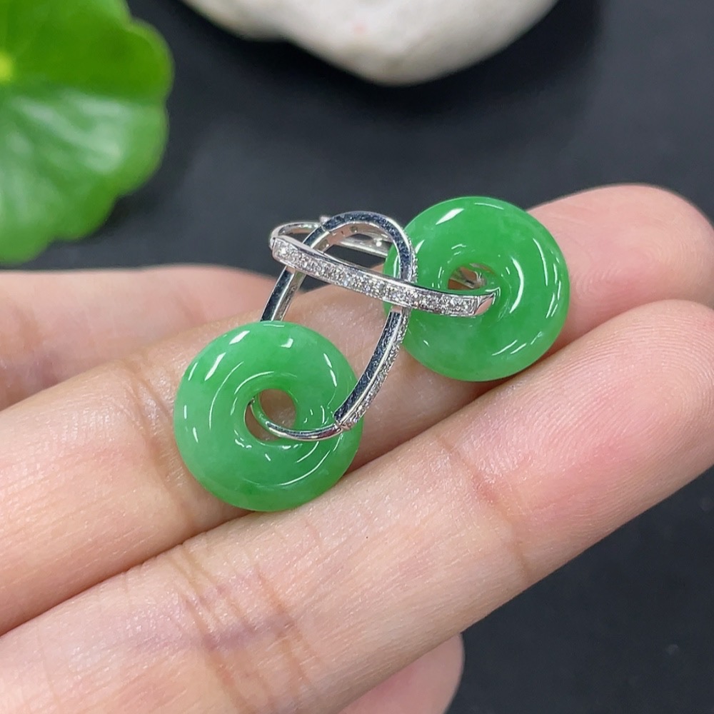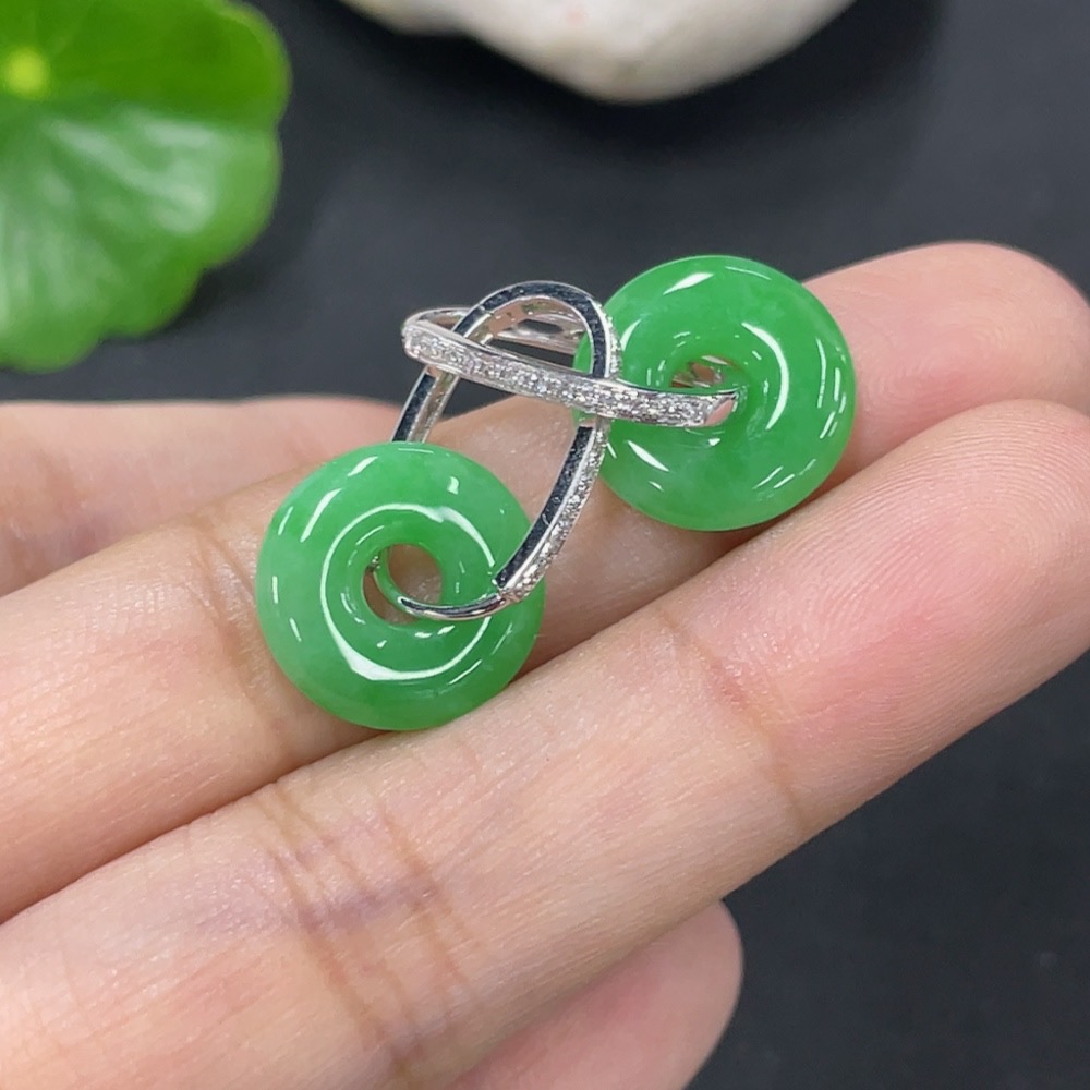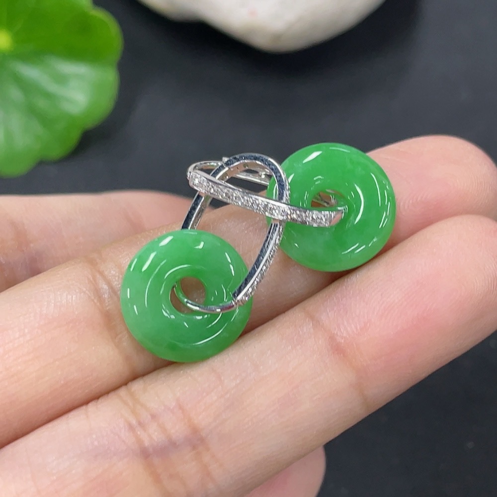 Jadeite Earrings with 18k Gold and Diamond Accents, Total Weight Approximately 2.88g