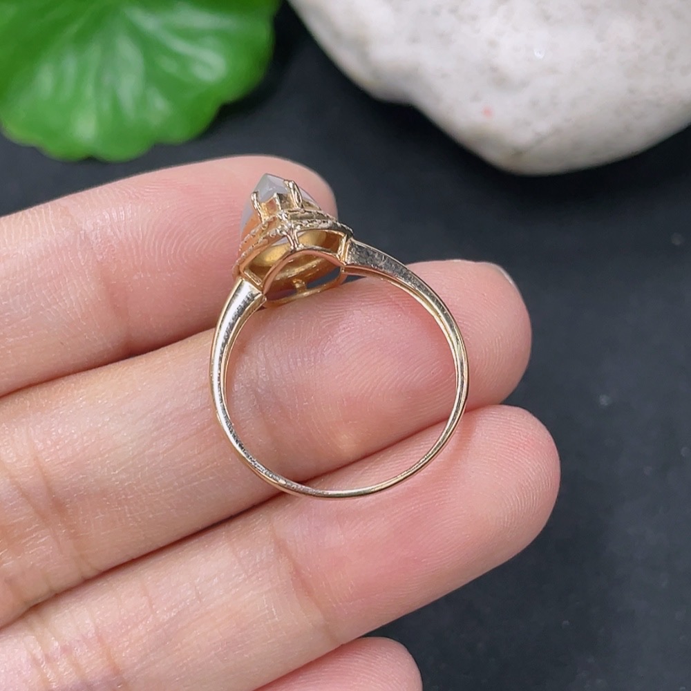 Jadeite Ring with 18k Gold and Diamond Accents, Size 13, Total Weight Approximately 2.45g