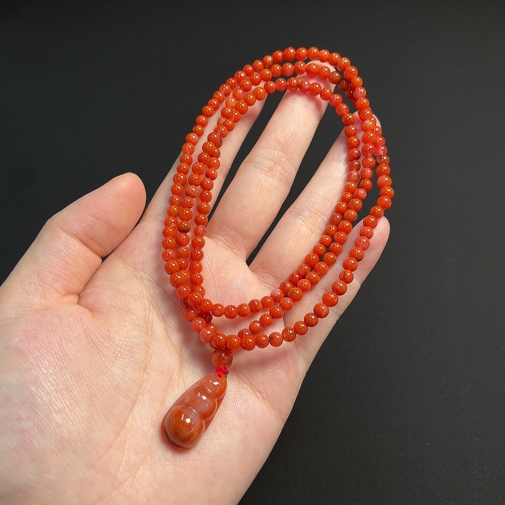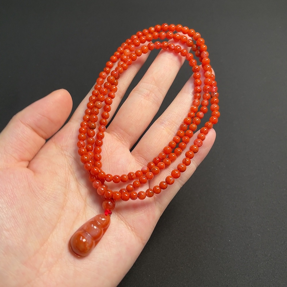 South Red Agate Bead Strand, approx. 4.3mm, total weight approx. 20.07g, visible organic matter
