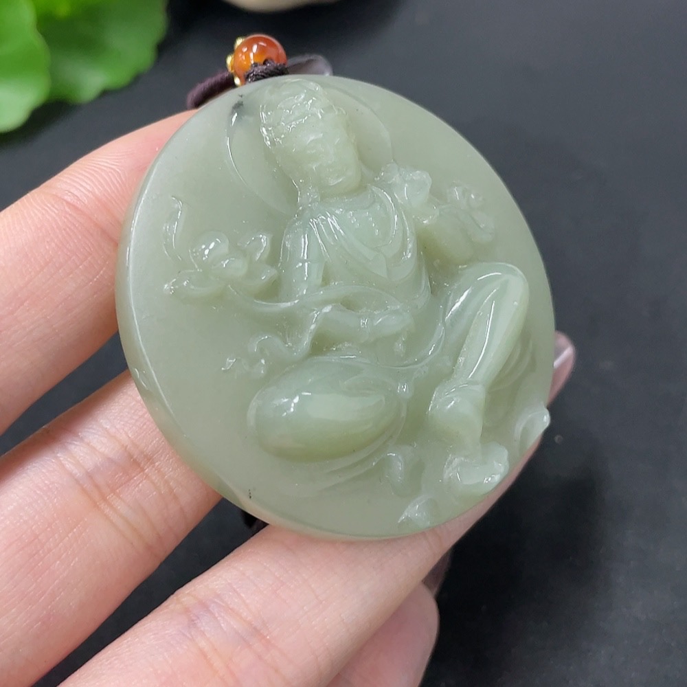 Hetian Jade Pendant Guanyin with Non-Hetian Jade Beads Total Weight Approx. (Including Rope) 50.6g