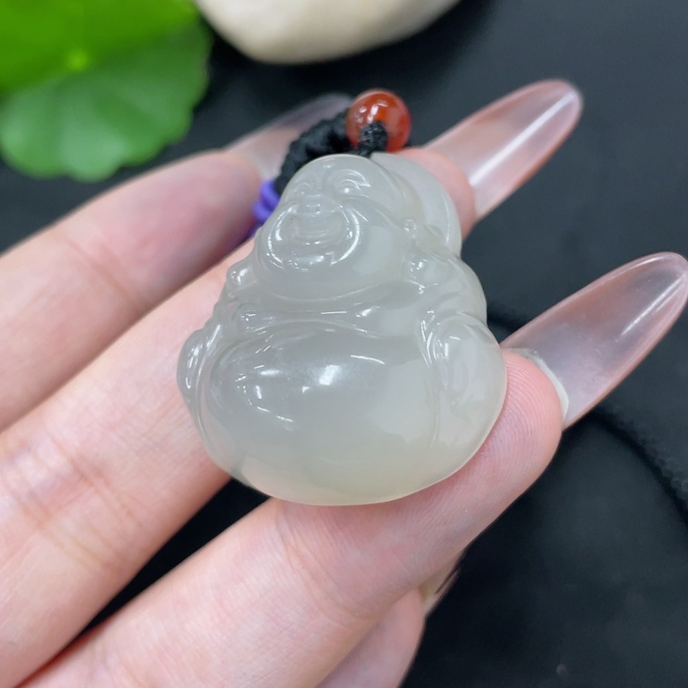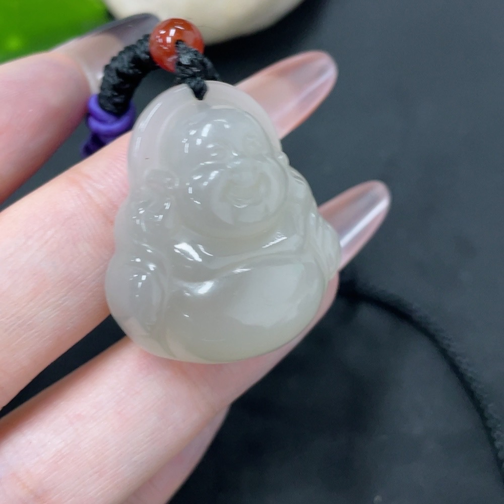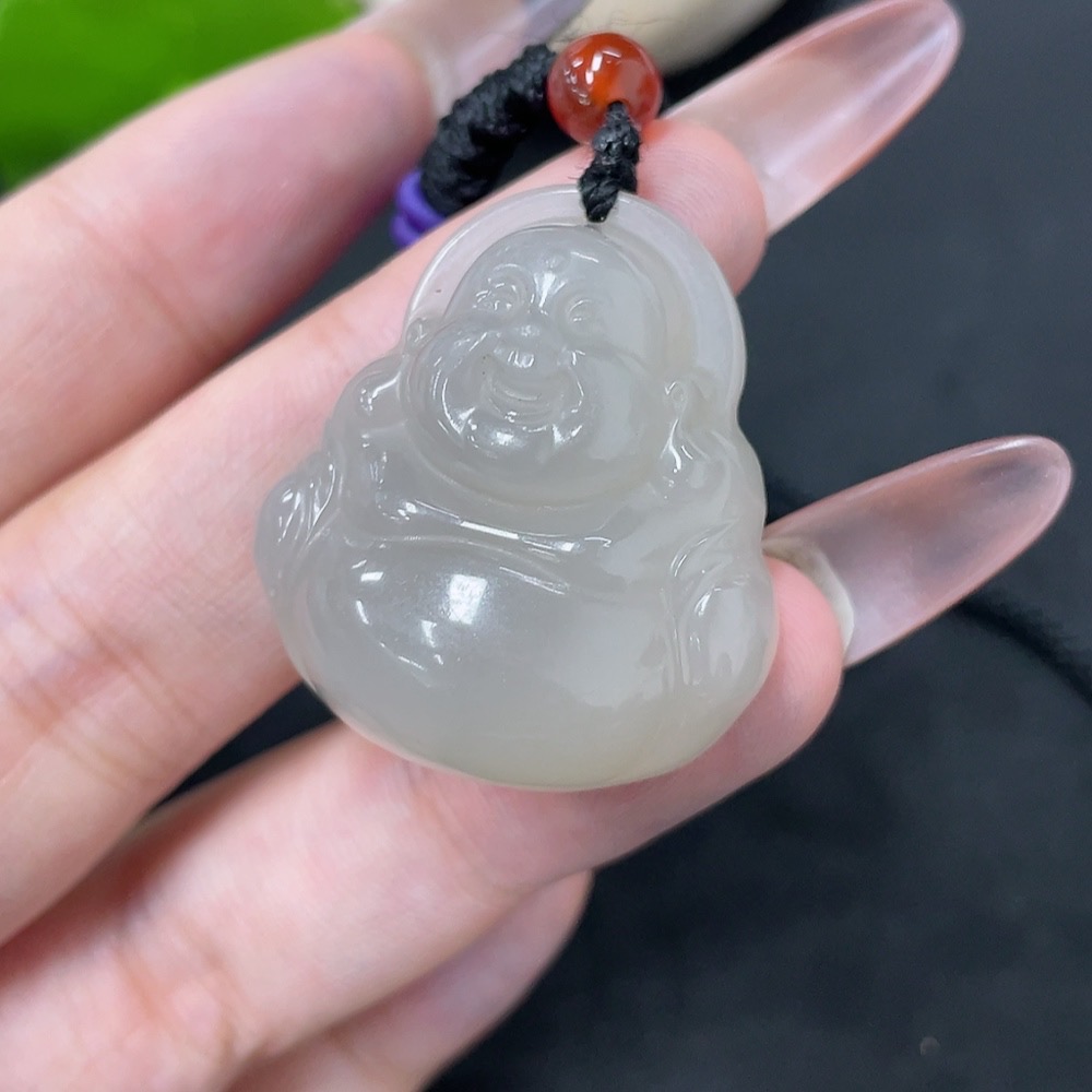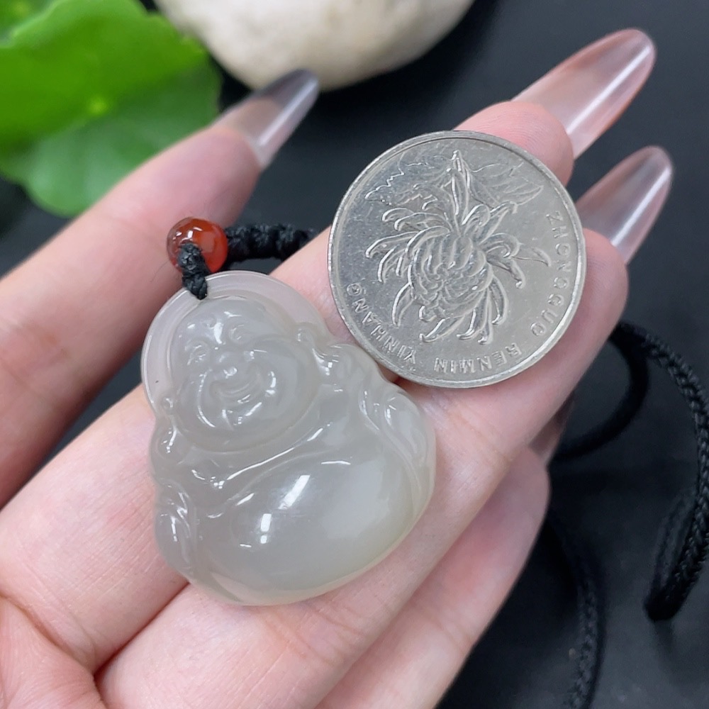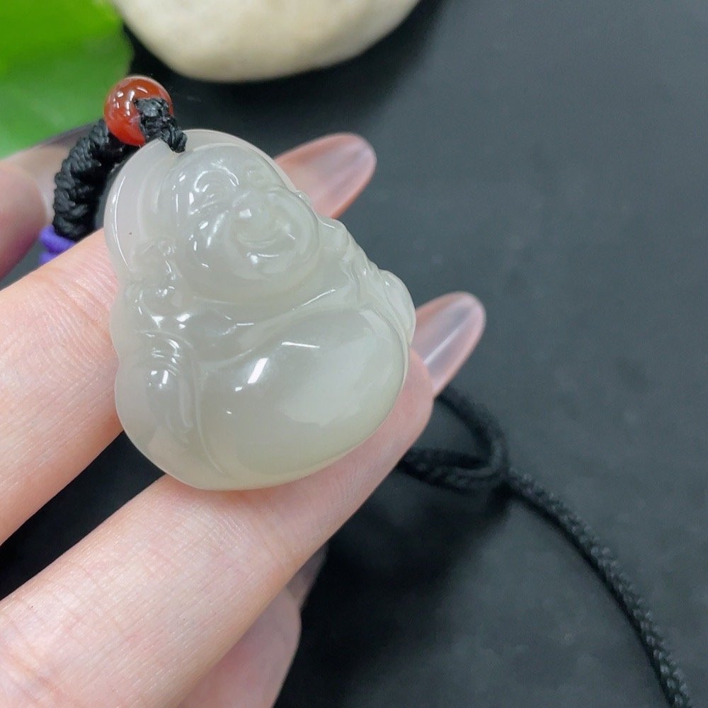 Hetian Jade Pendant Buddha with Non-Hetian Jade Beads Total Weight Approx. 17.1g (including rope)