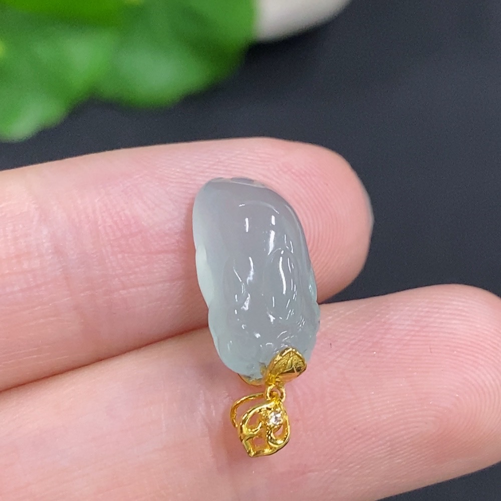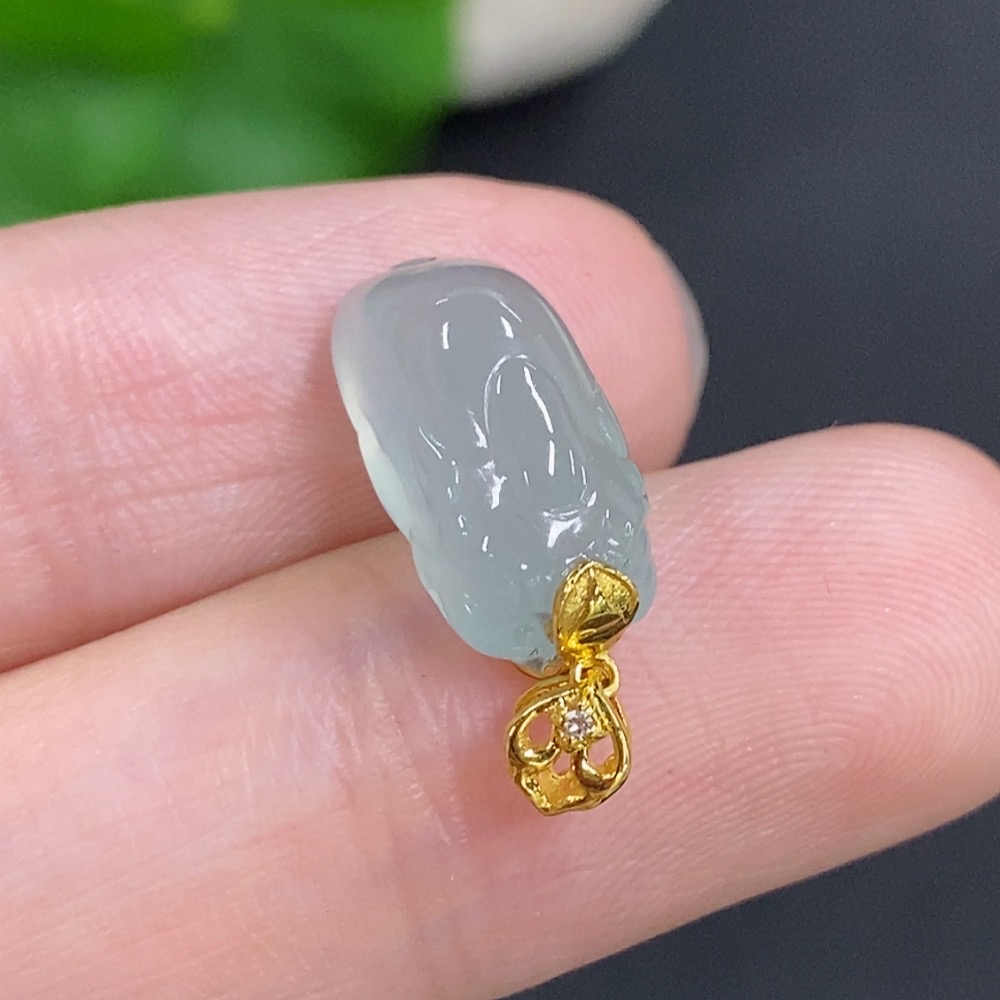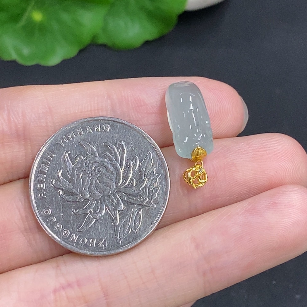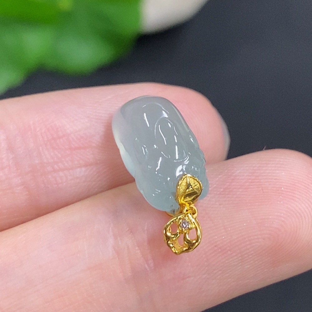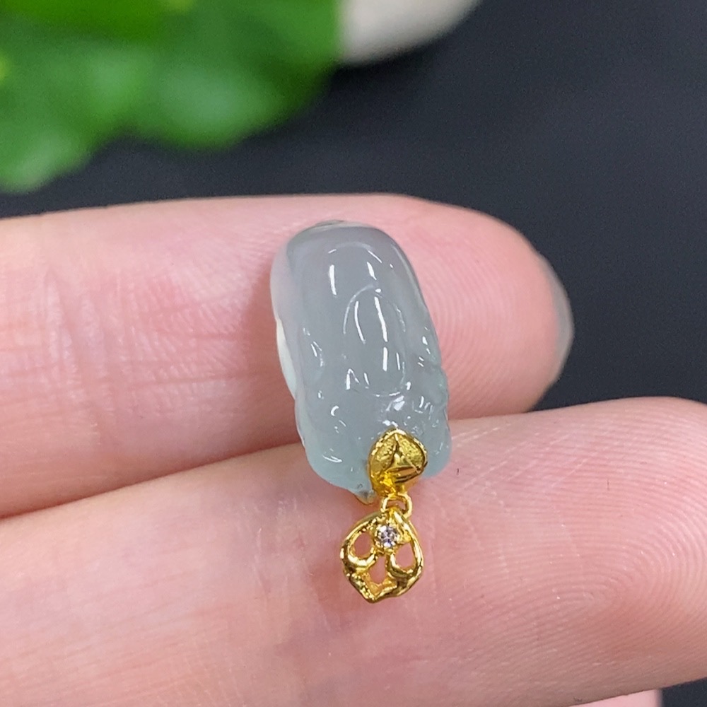Jadeite Pi Xiu Inlaid Pendant with 18K Gold Clasp, Total Weight Approximately 2g, Non-Diamond