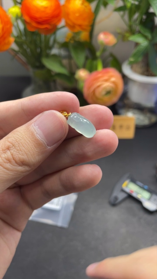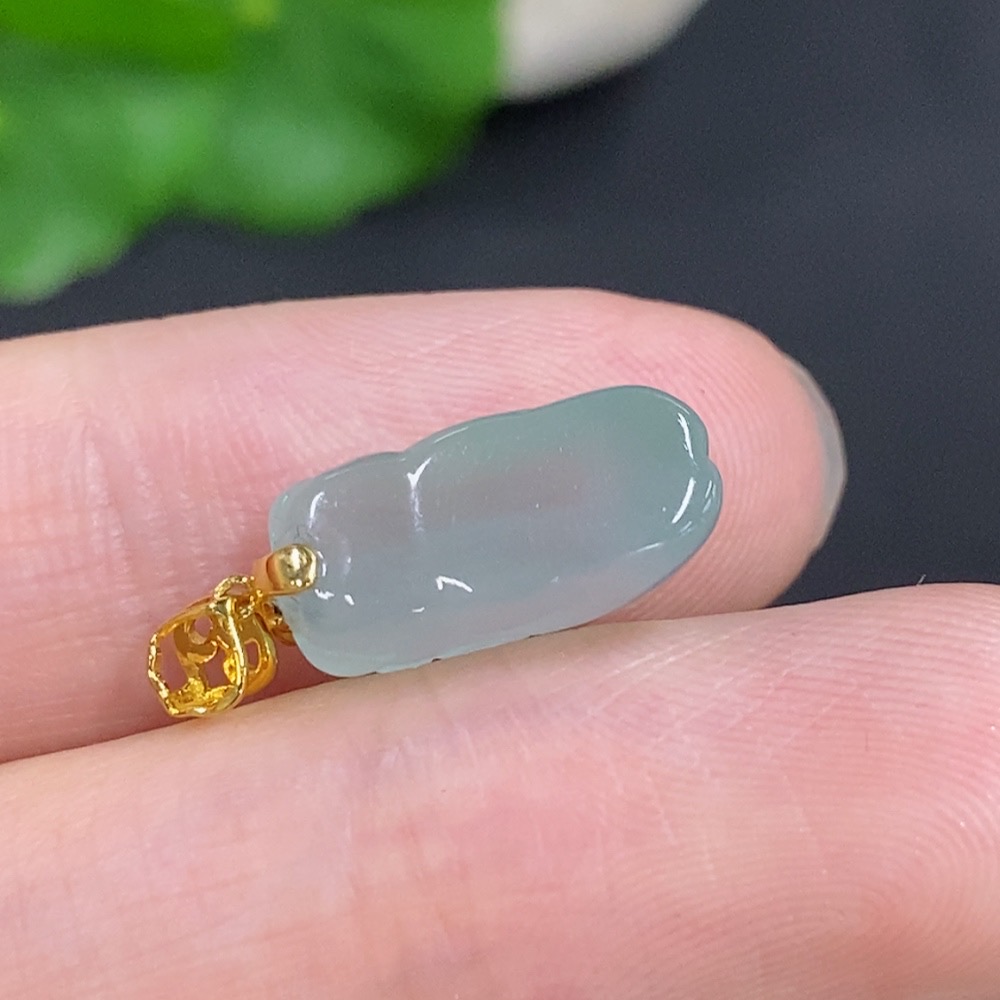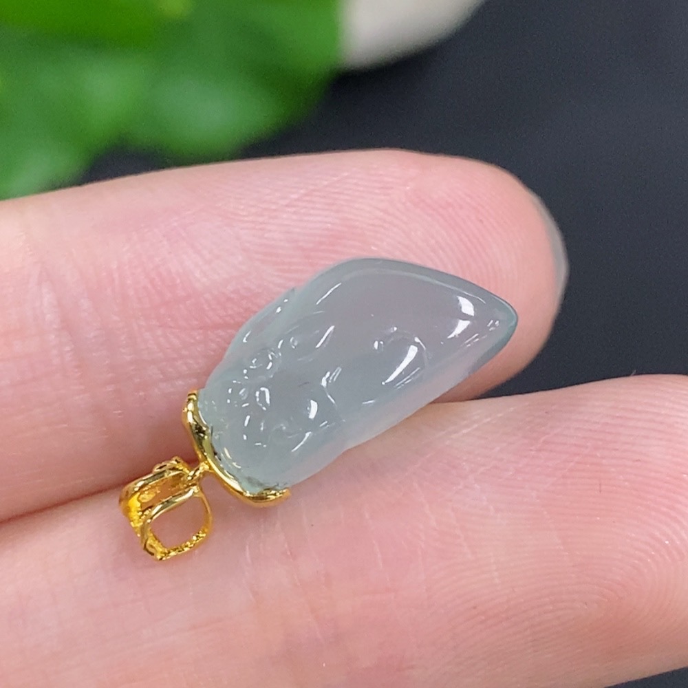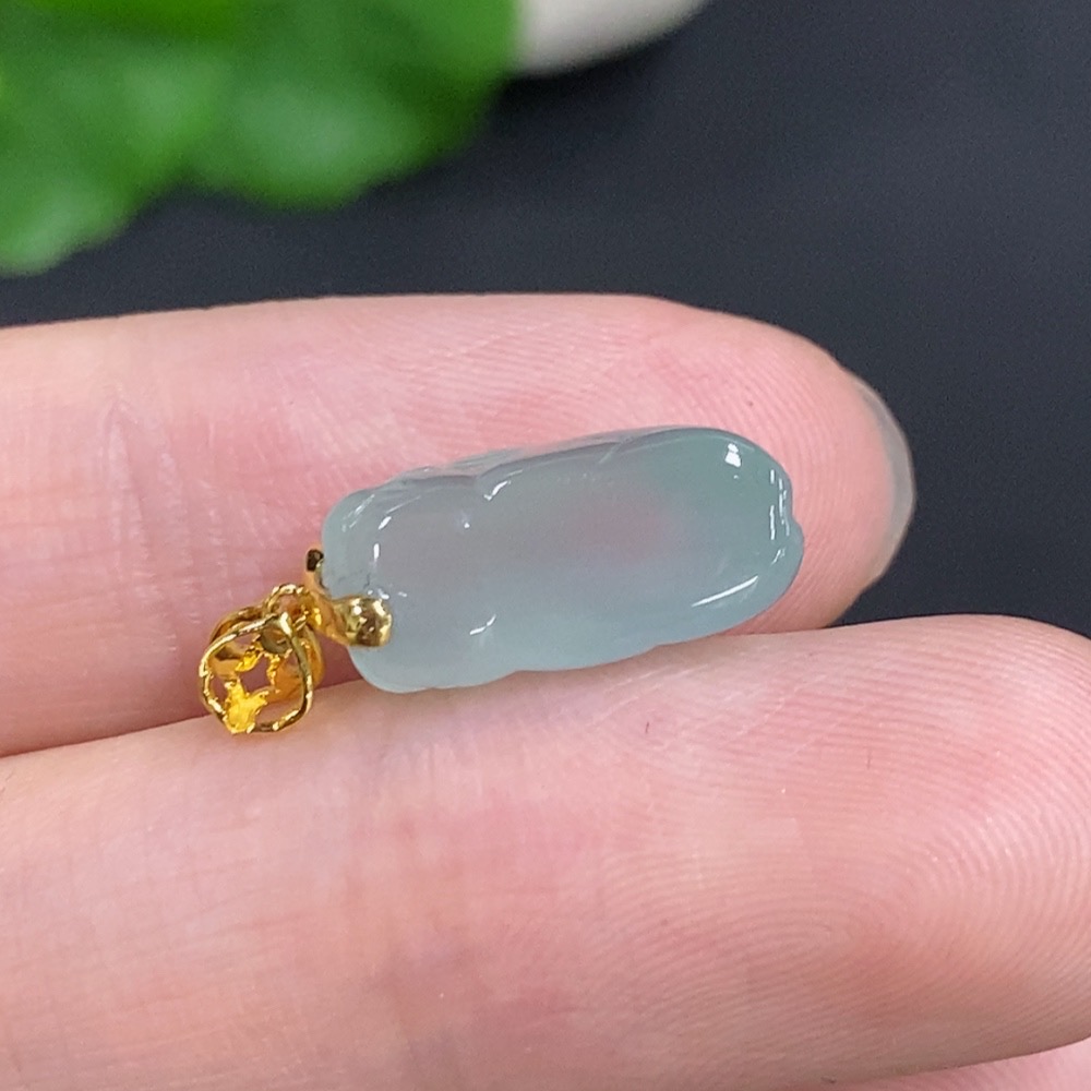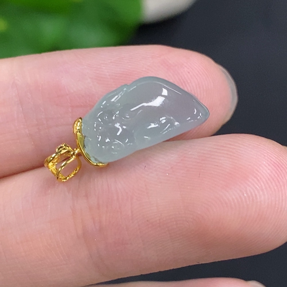 Jadeite Pi Xiu Inlaid Pendant with 18K Gold Clasp, Total Weight Approximately 2g, Non-Diamond