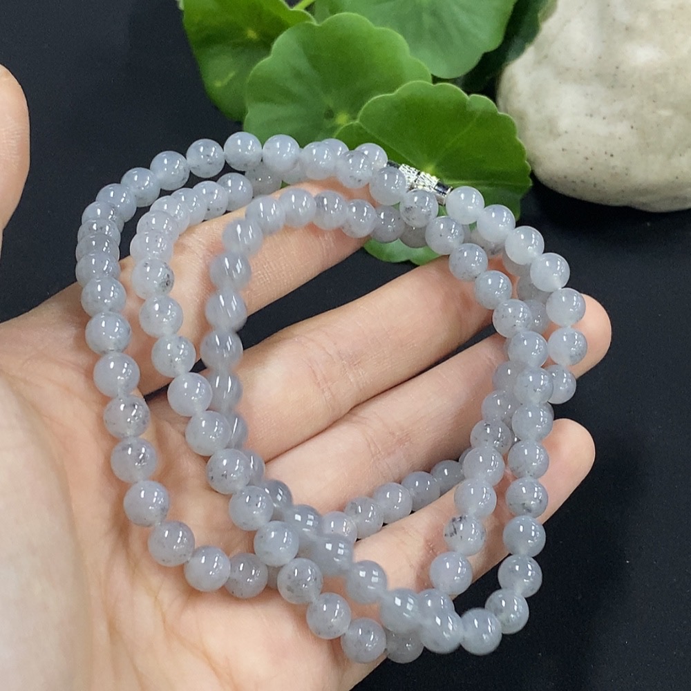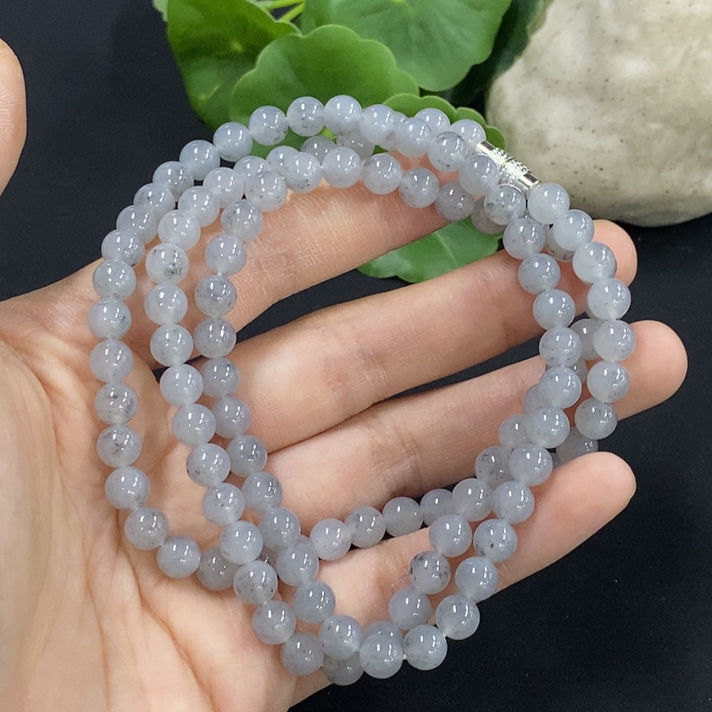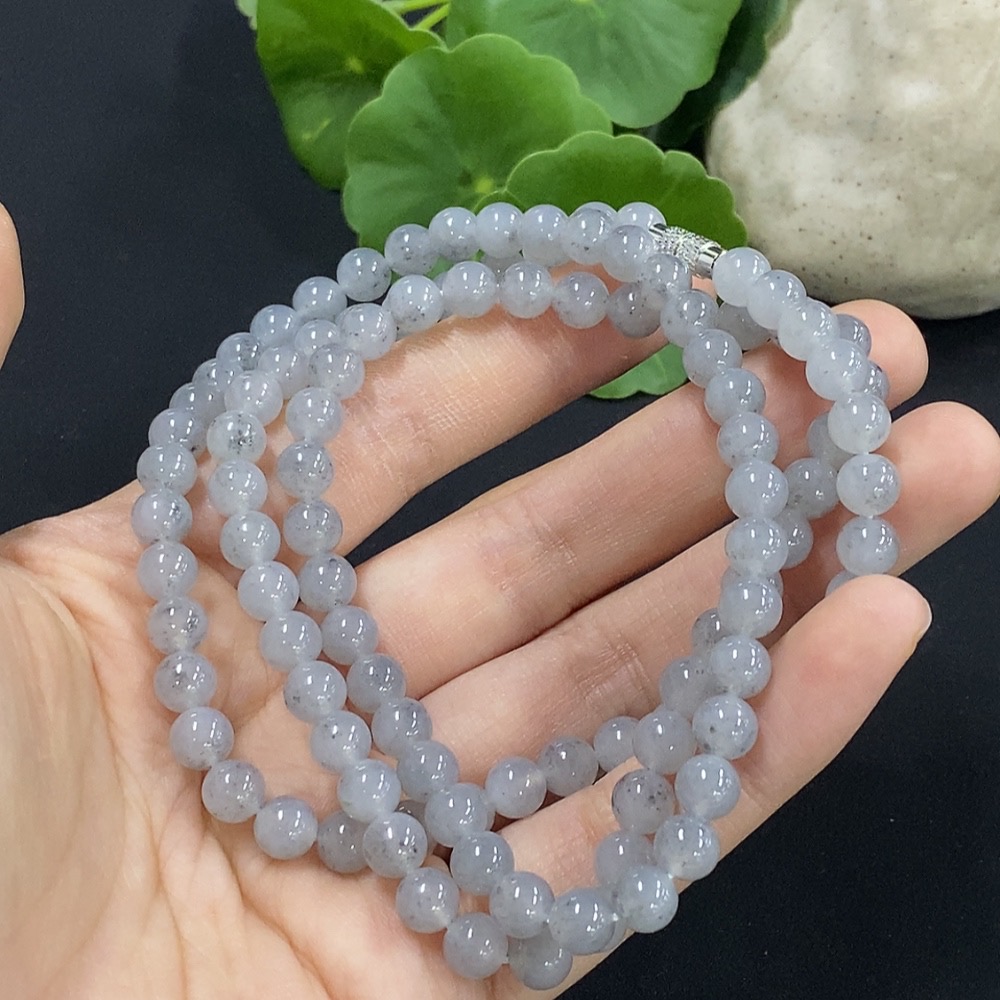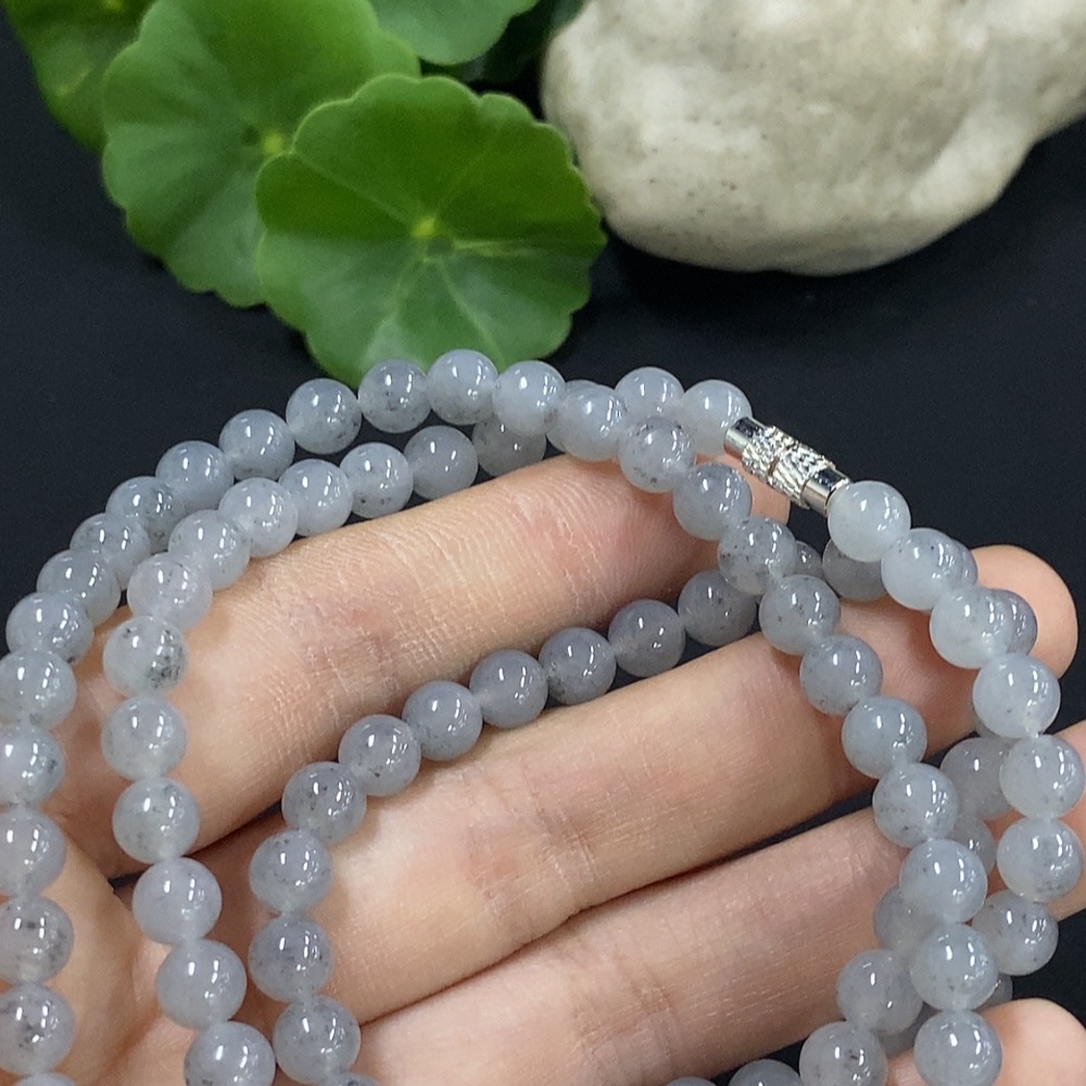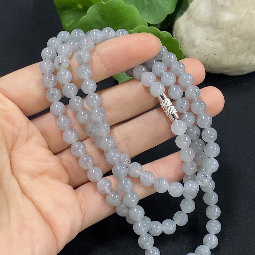 Jadeite Bead Necklace Approx. 6mm Non-Gold Setting Total Weight Approx. 44.92g