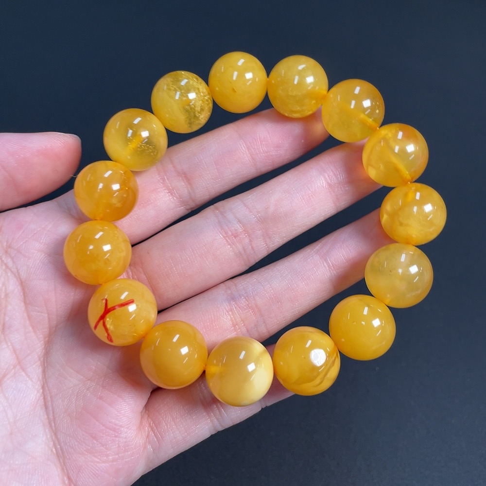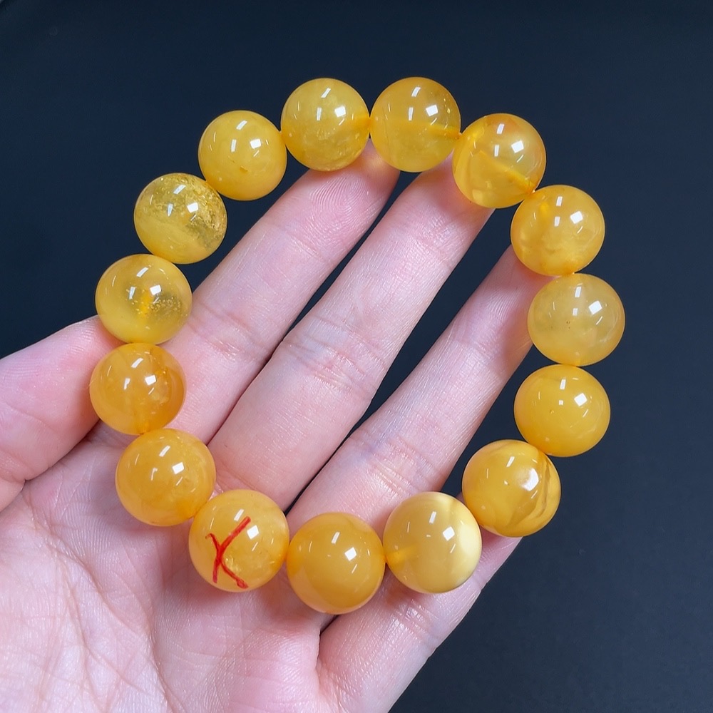 Amber Beeswax Bracelet Approx. 14.2mm Total Weight About 24.04g Partial Repair