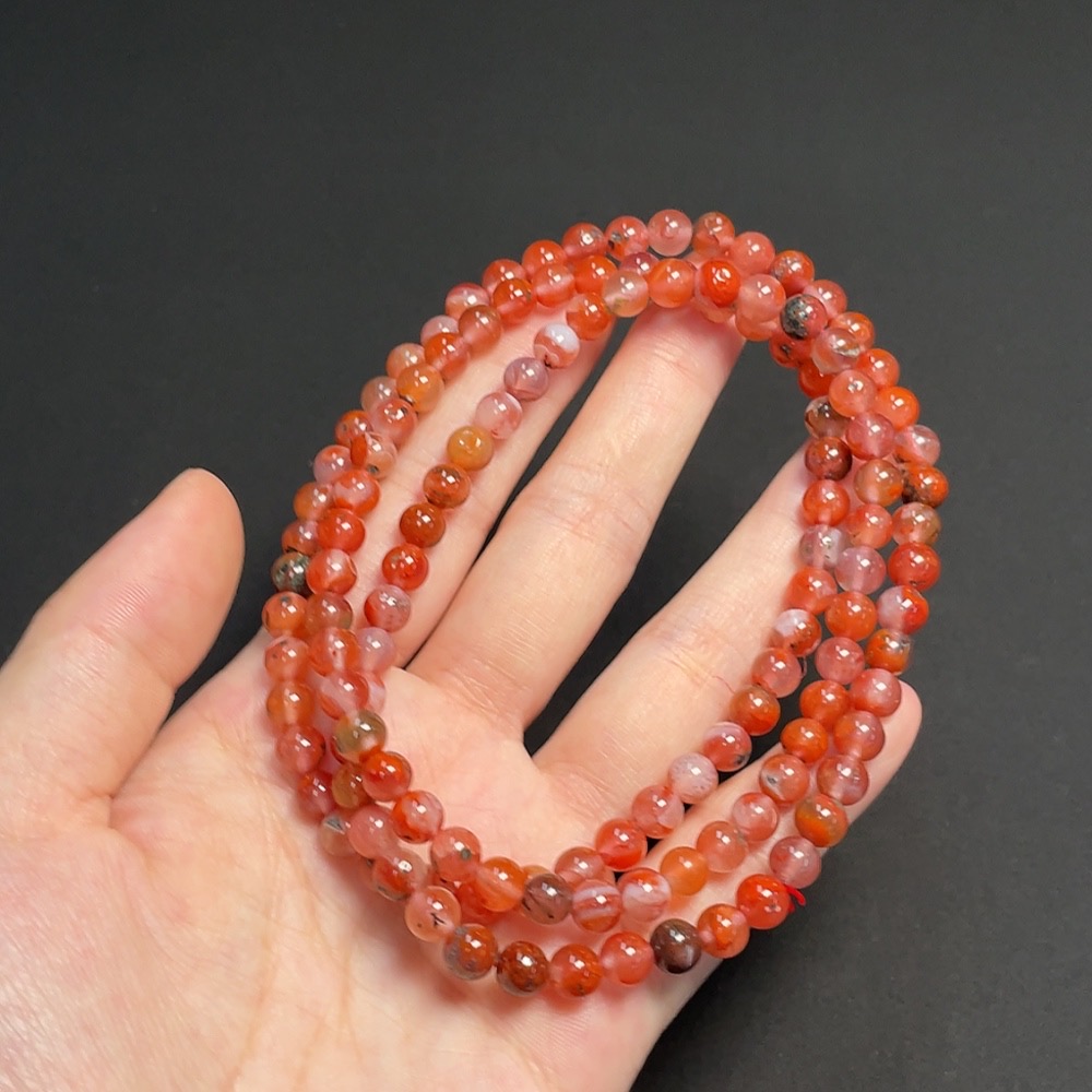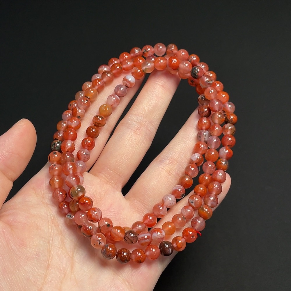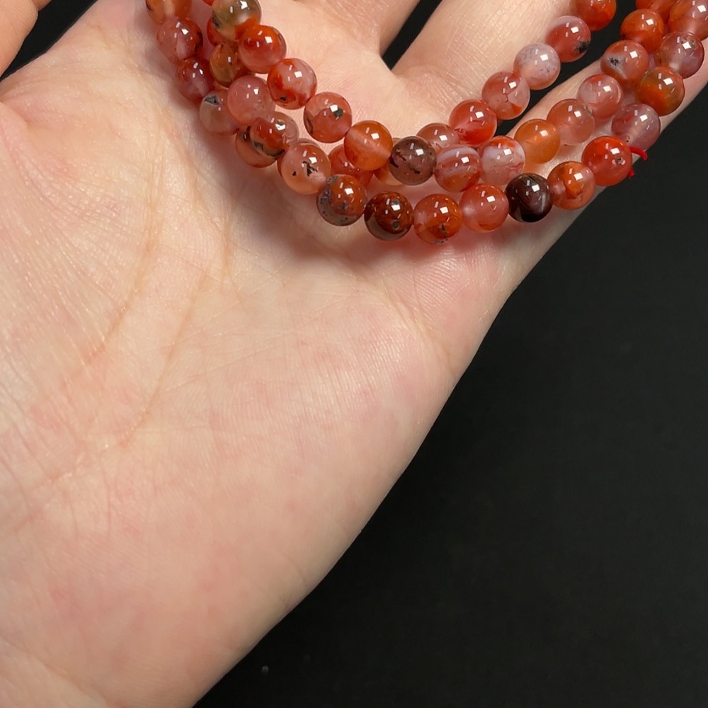 Red Agate Bead Strand approx. 6.1mm Total Weight approx. 39.50g with Visible Organic Matter