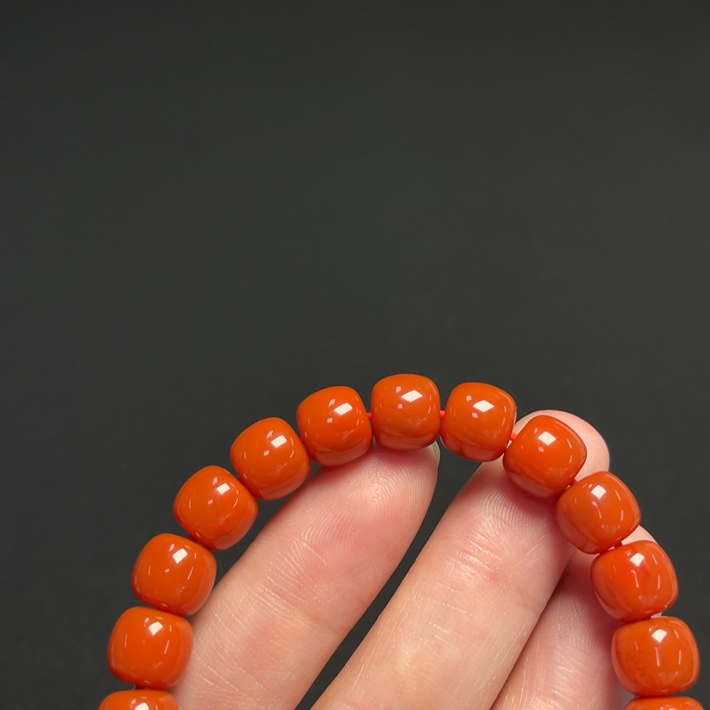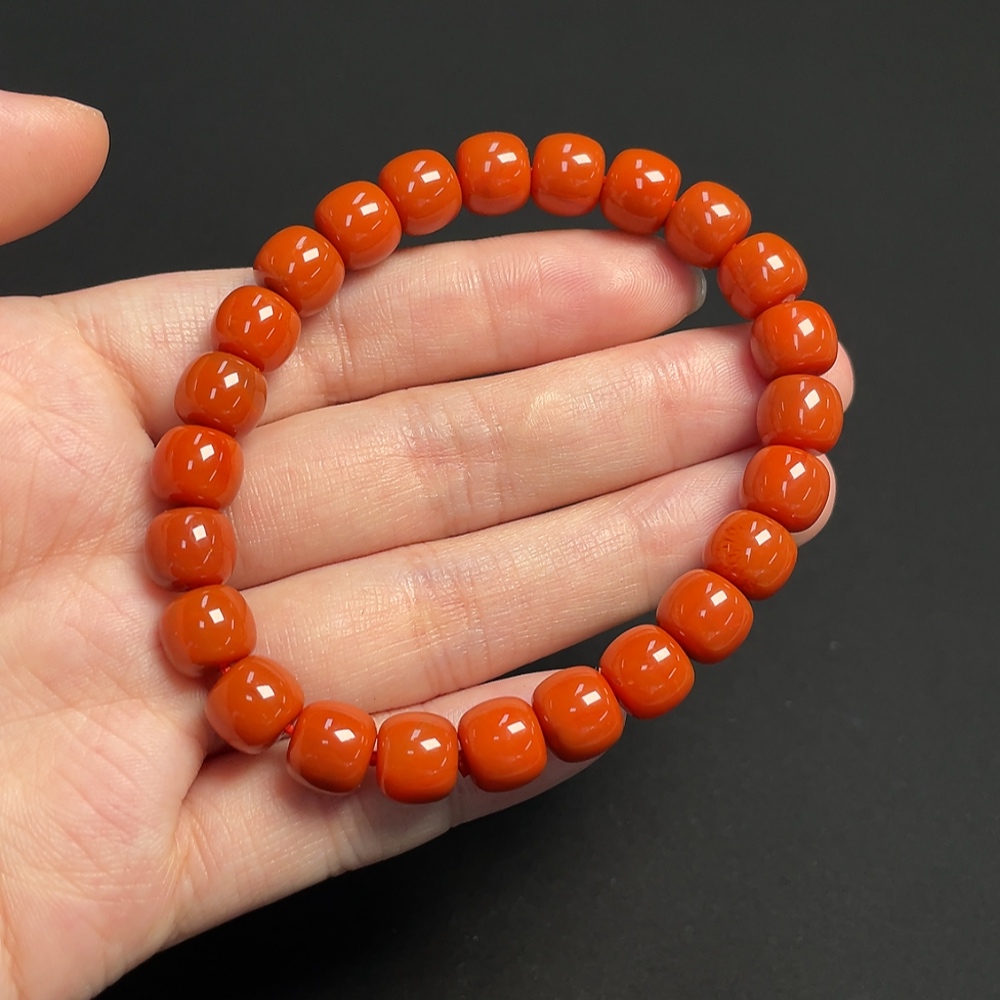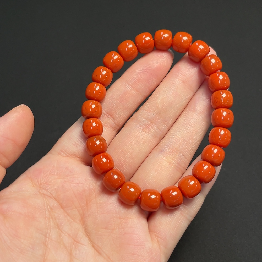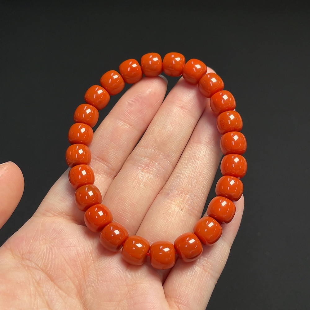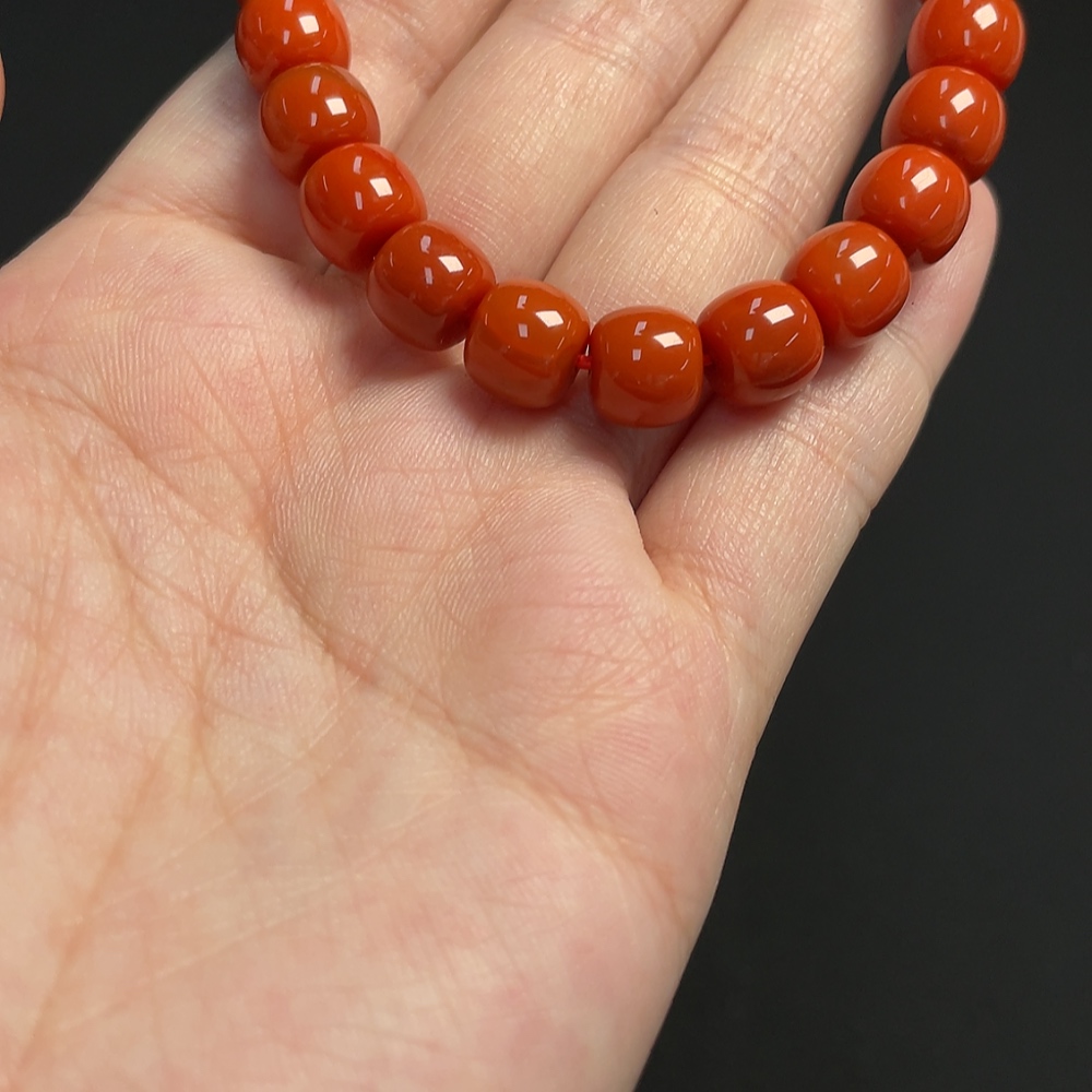Red Agate Bracelet with Visible Organic Matter, Total Weight Approximately 24.17g, Bead Size About 8.8mm