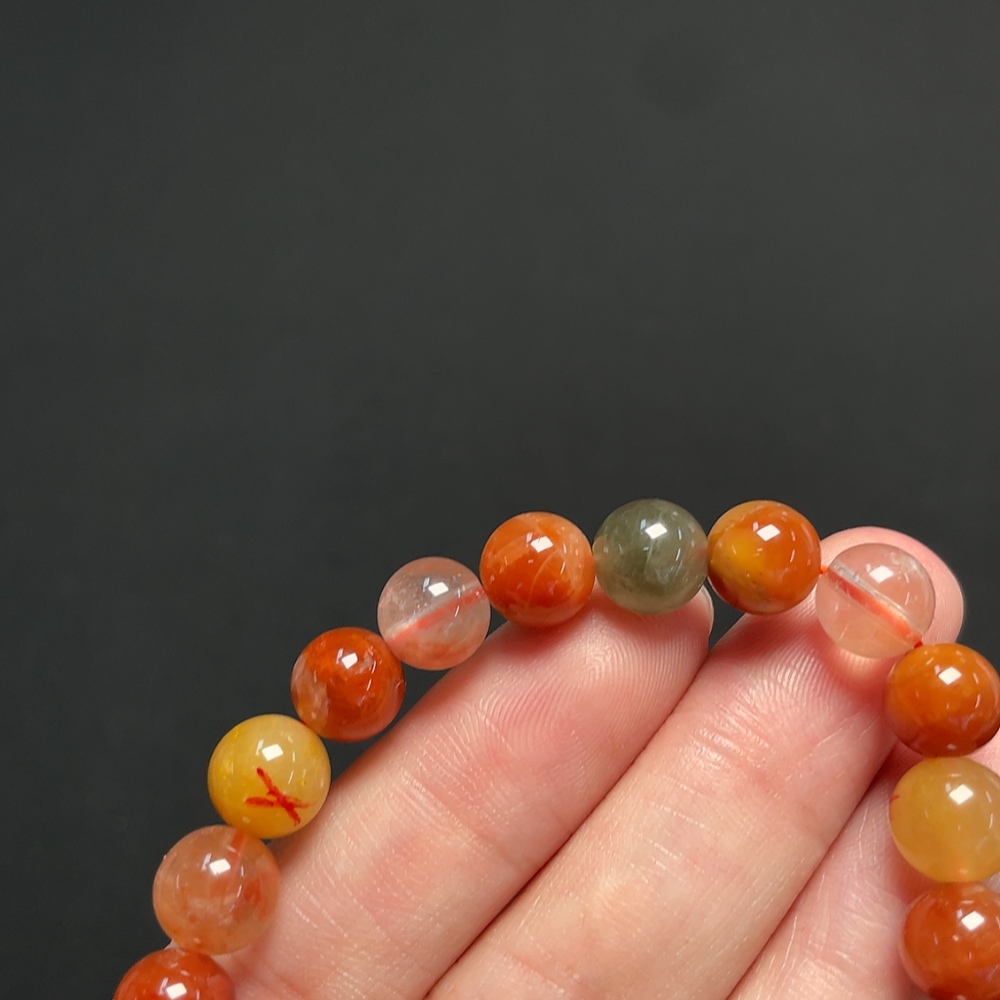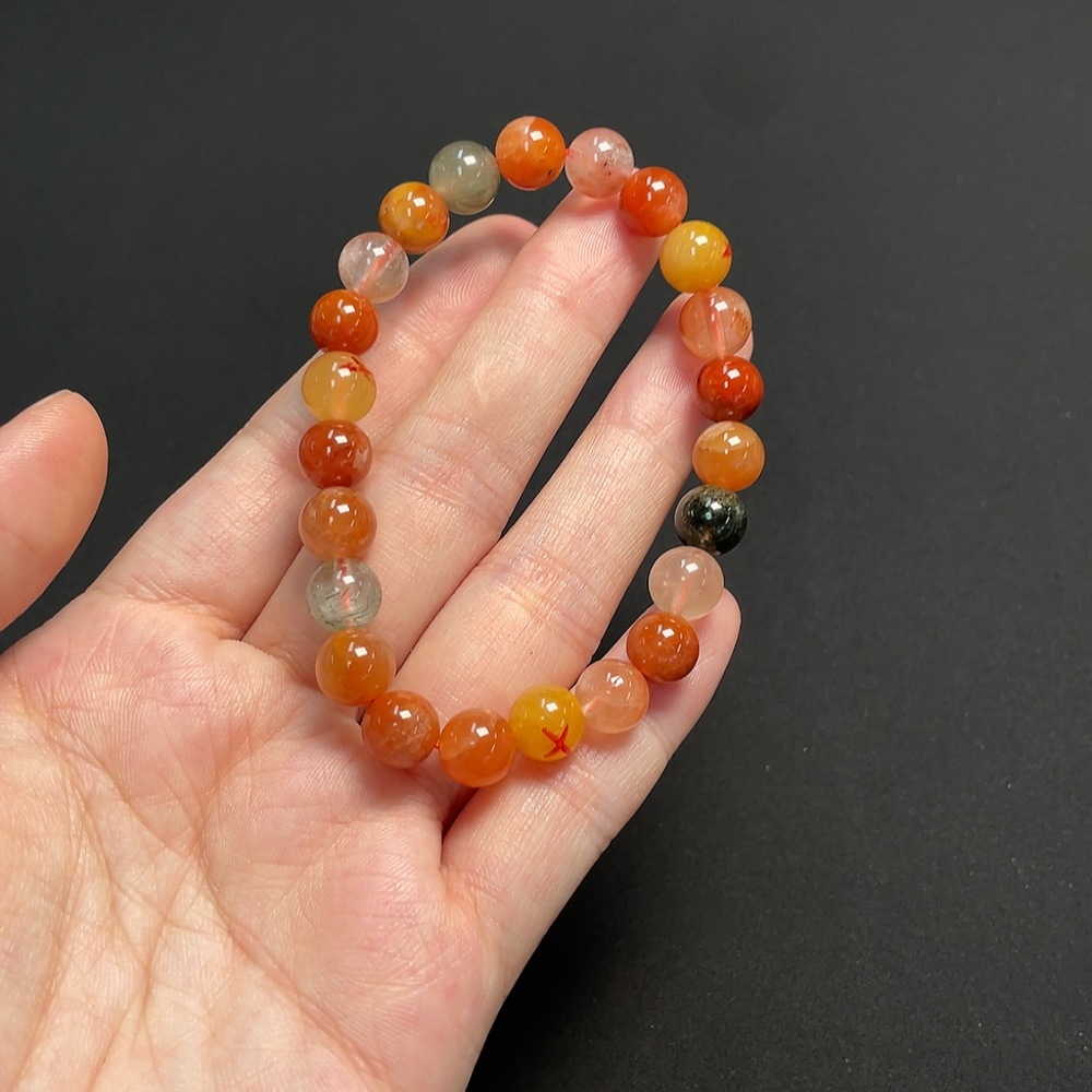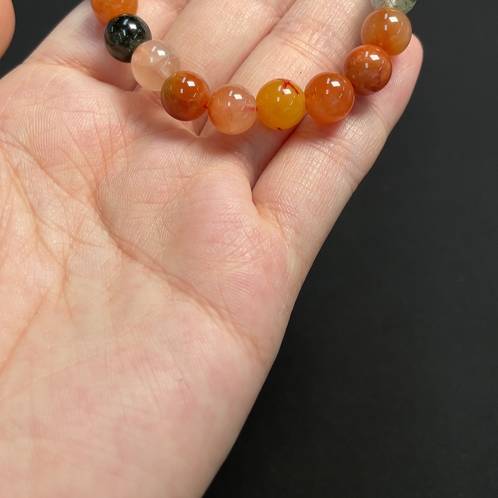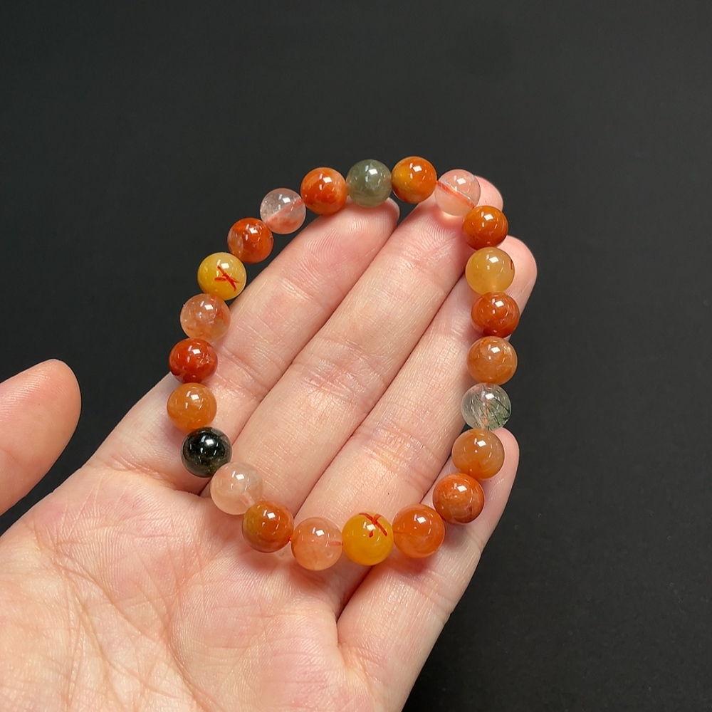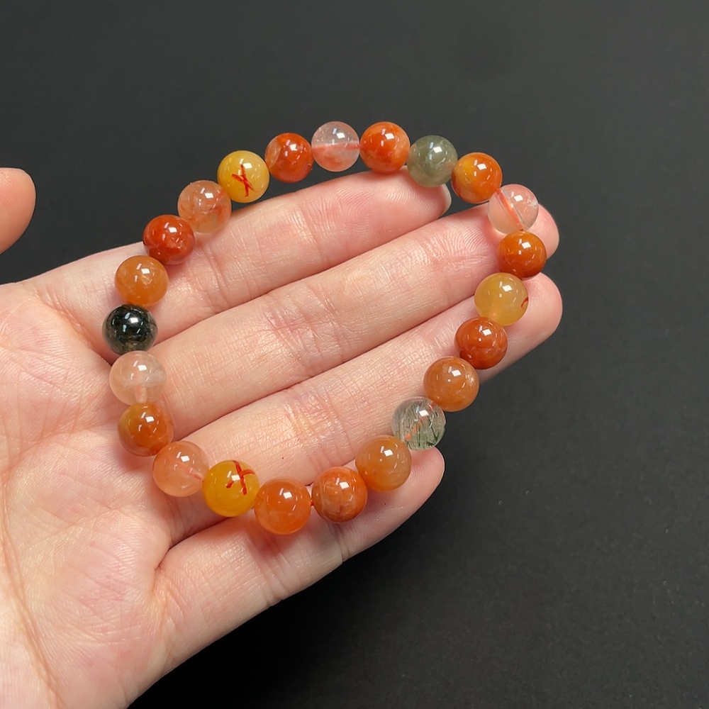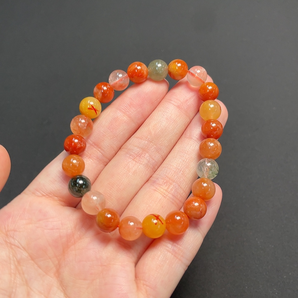 Crystal Bracelet, Color Origin Undetermined, Visible Organic Matter, Non-Natural Accent Stones Considered, Total Weight Approx. 17.02g, Size ~7.8mm (Mixed Stones, Color)