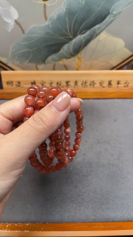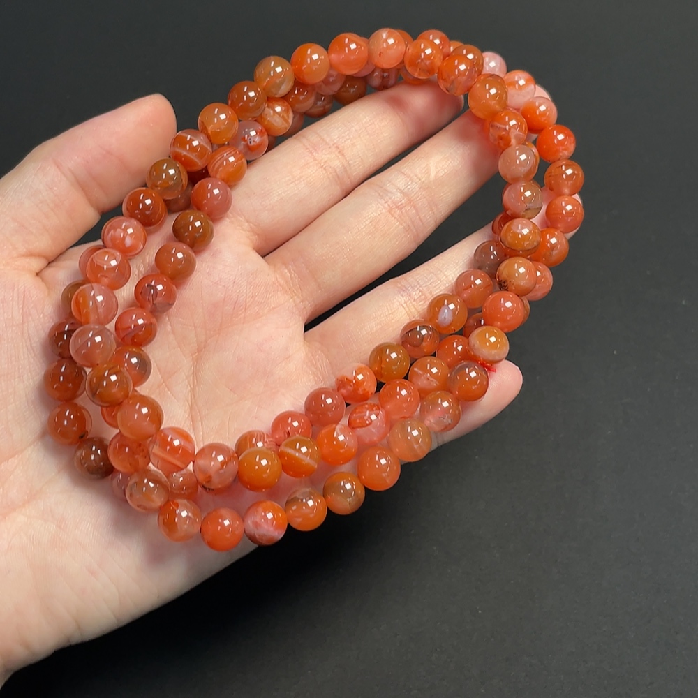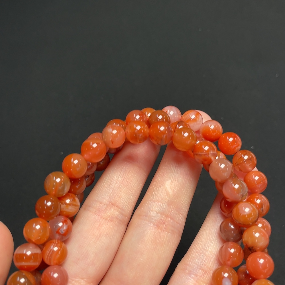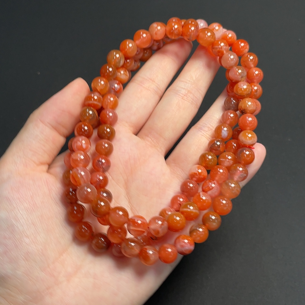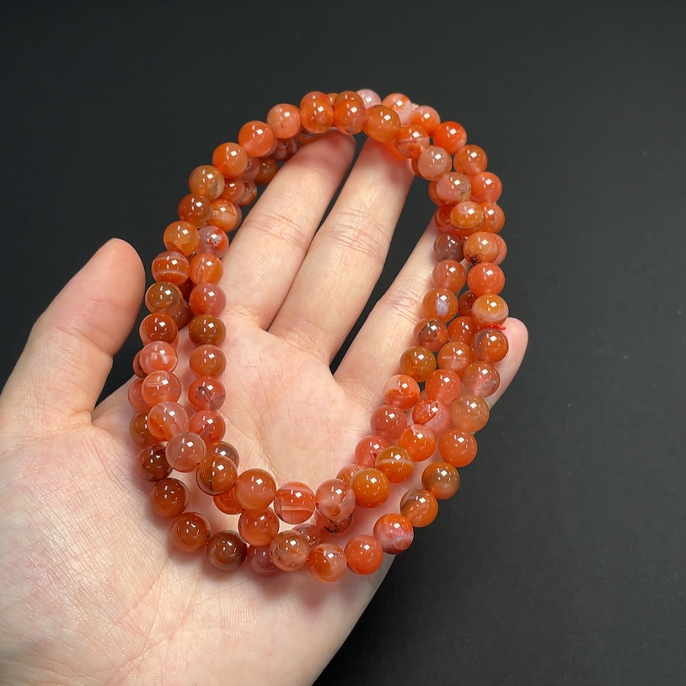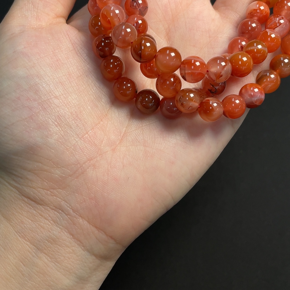 South Red Agate Bead Strand with Visible Organic Matter, Total Weight Approximately 80.21g, Size About 8.1mm