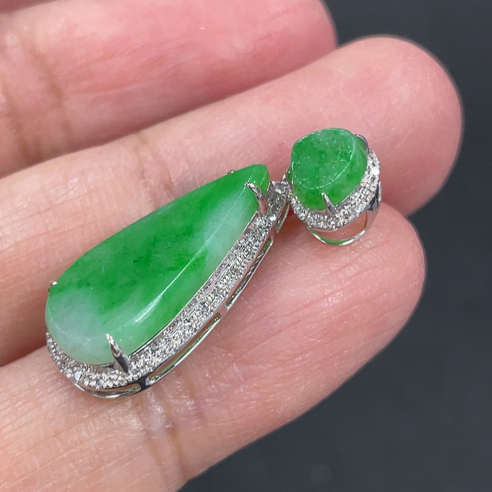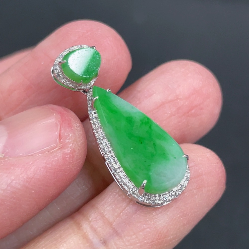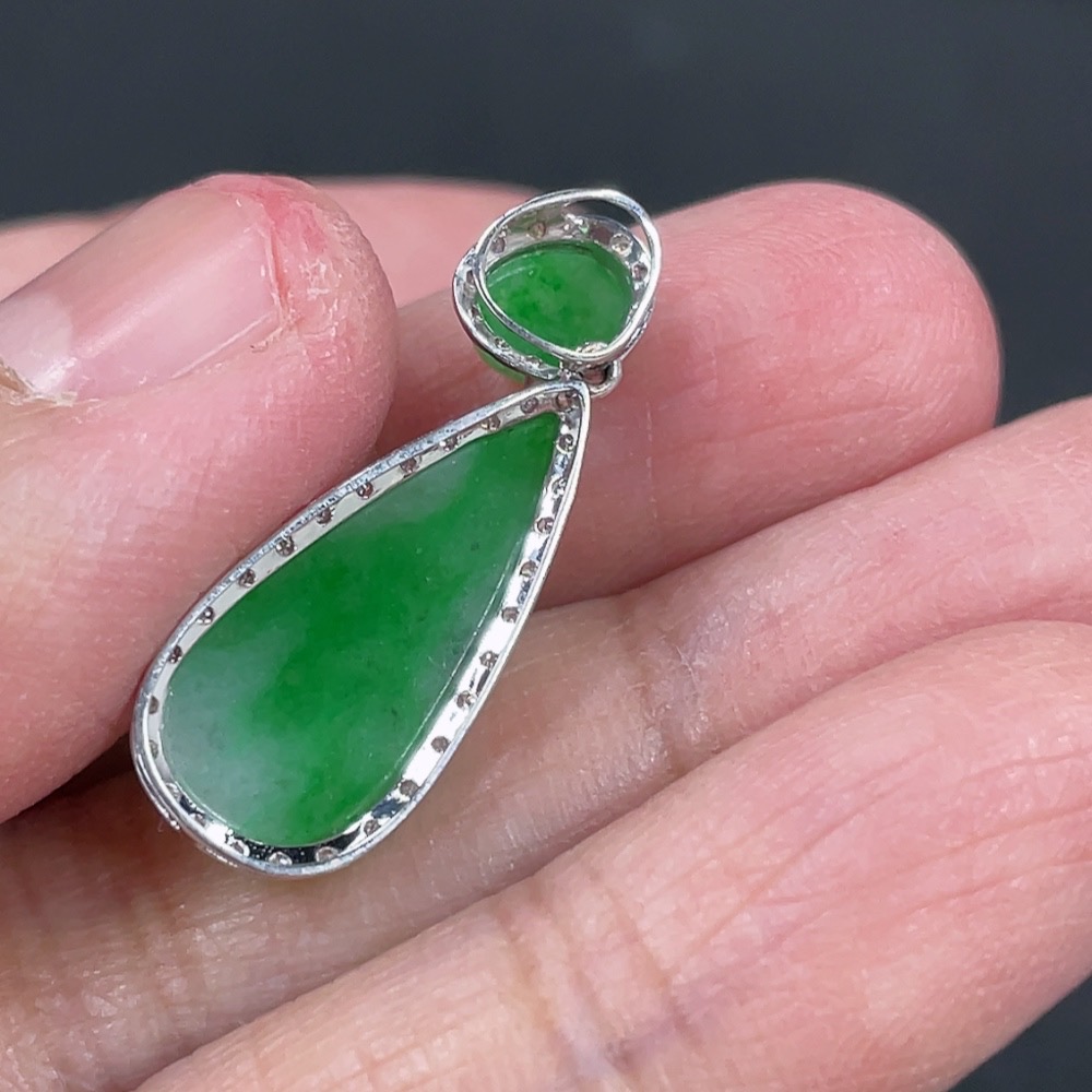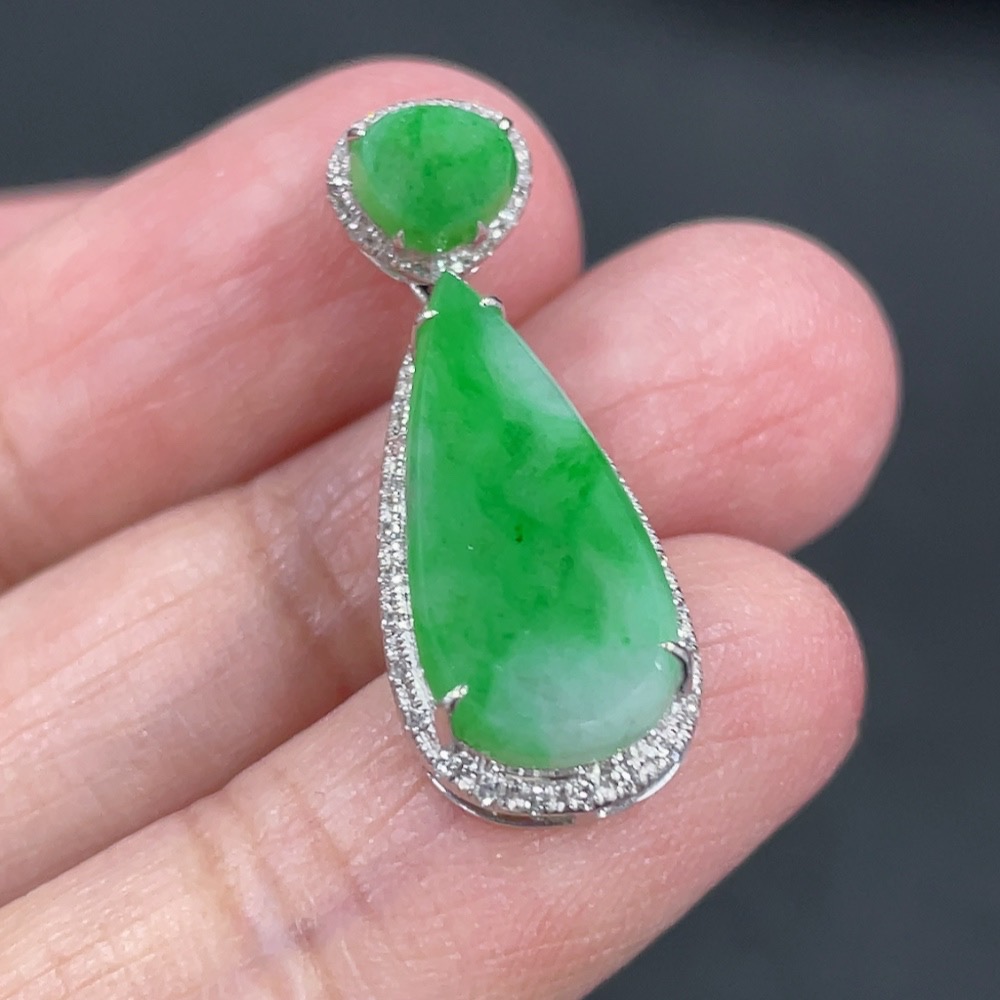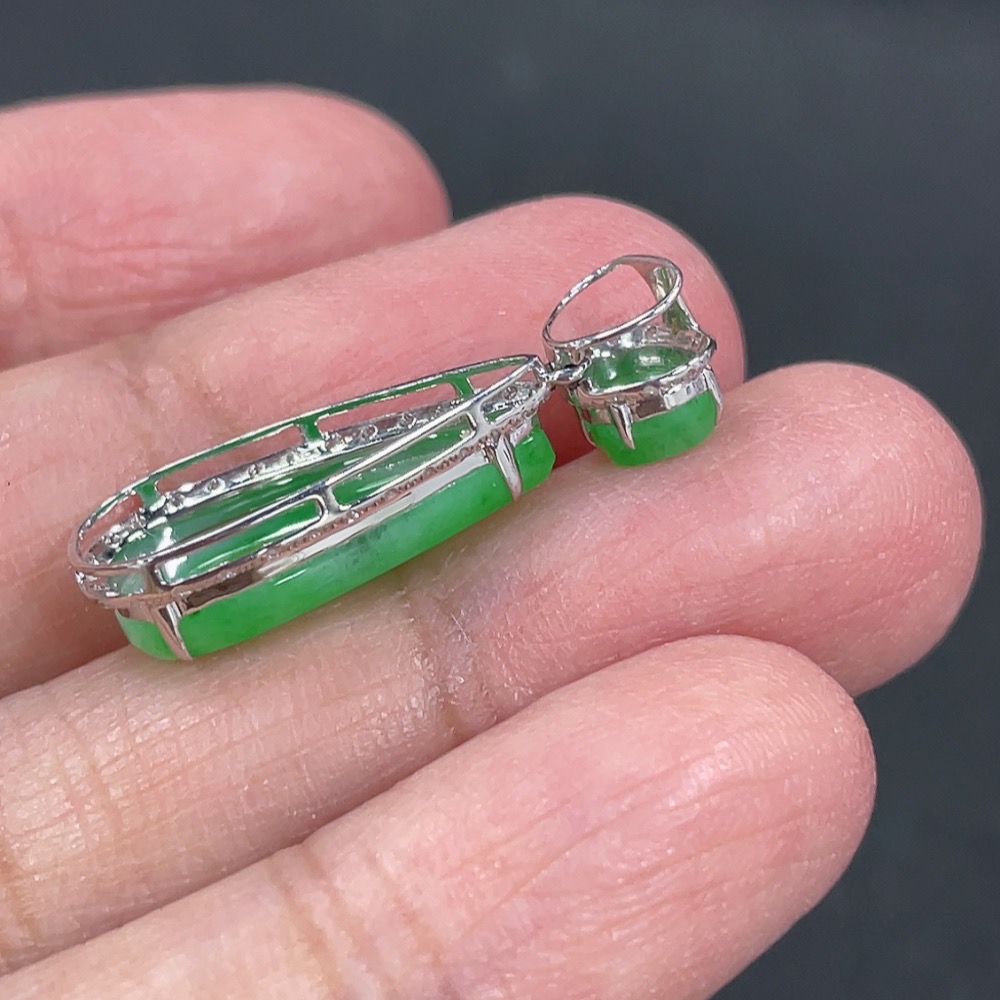 Jadeite Pendant with 18k Gold and Diamond Accents, Total Weight Approximately 1.57g