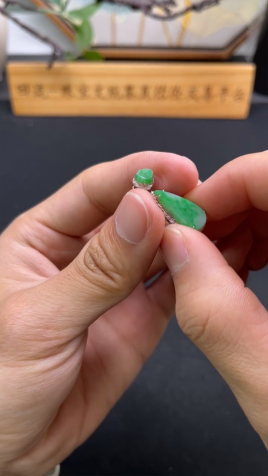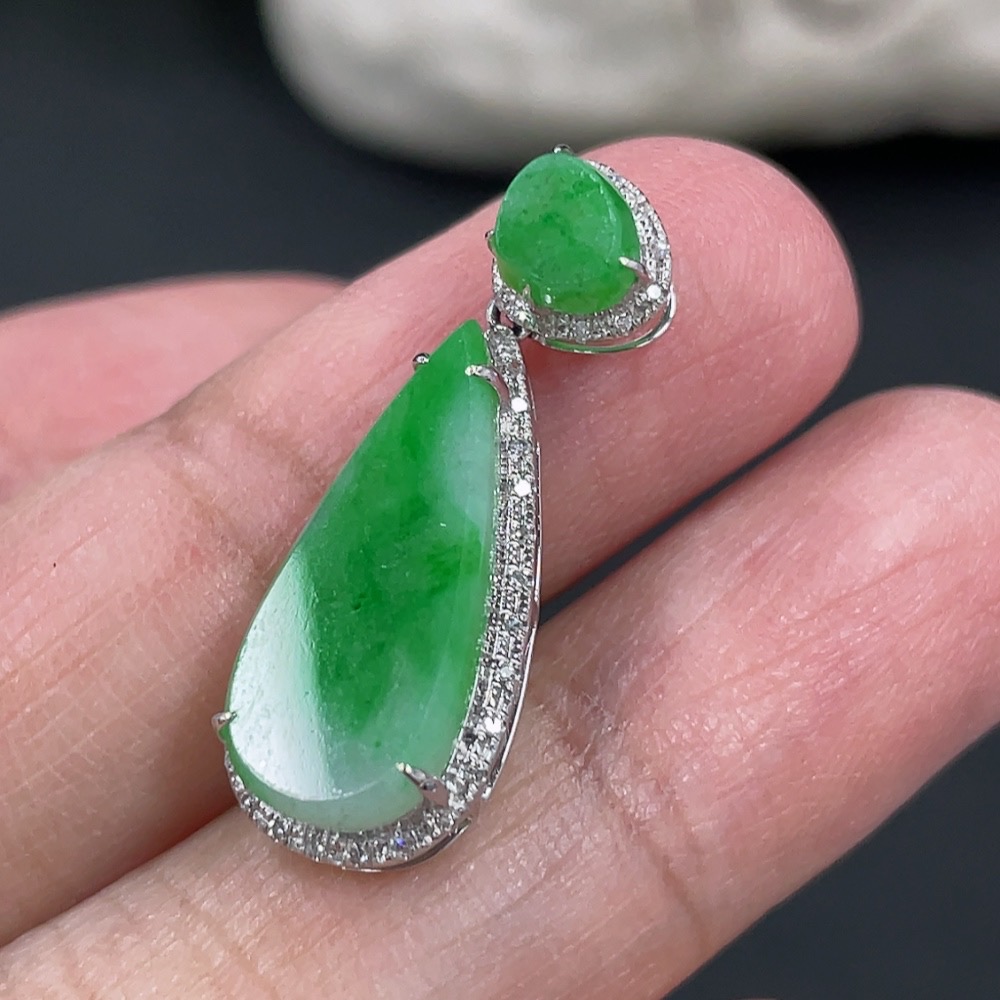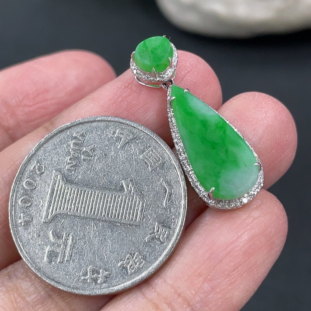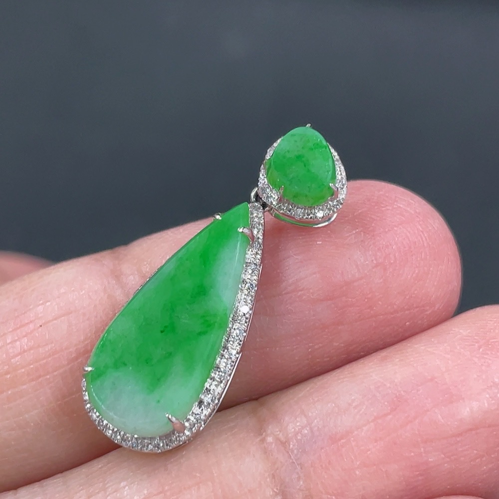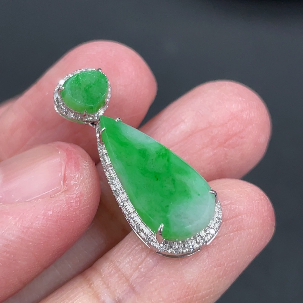 Jadeite Pendant with 18k Gold and Diamond Accents, Total Weight Approximately 1.57g