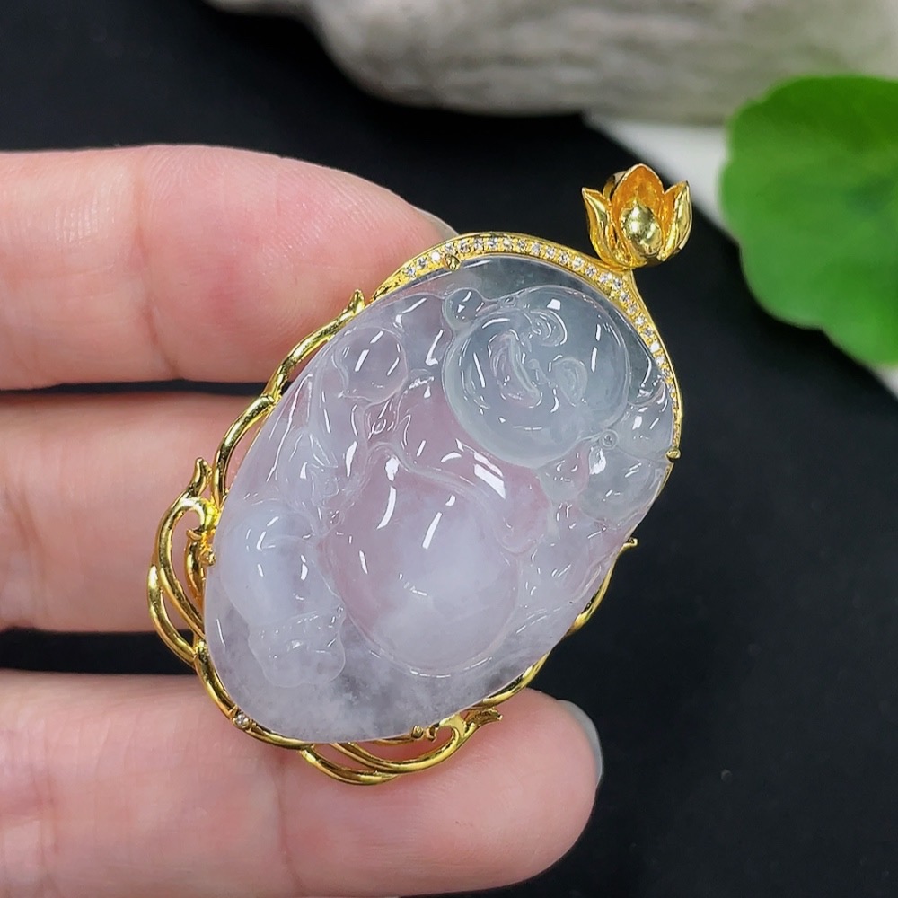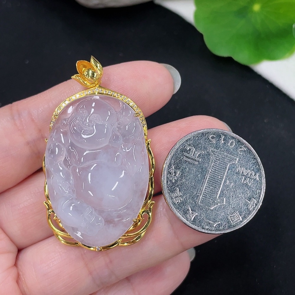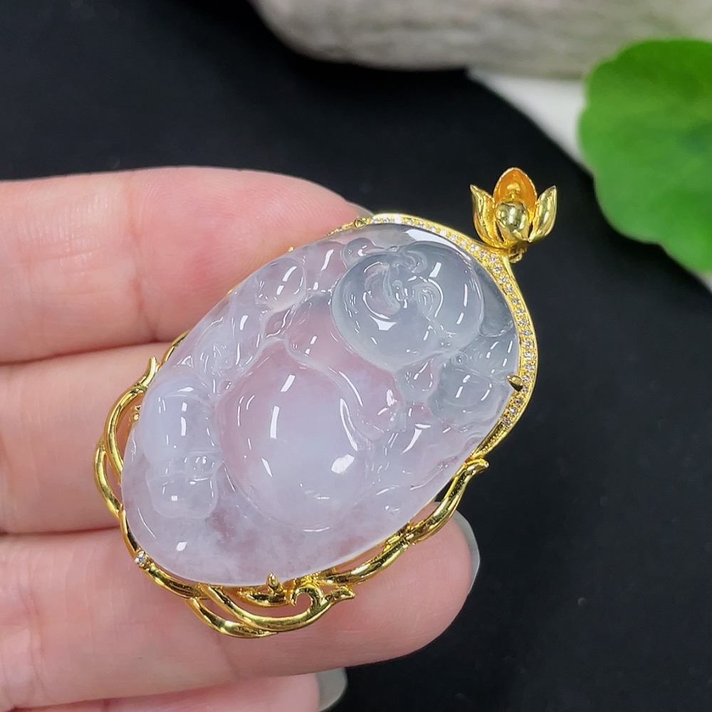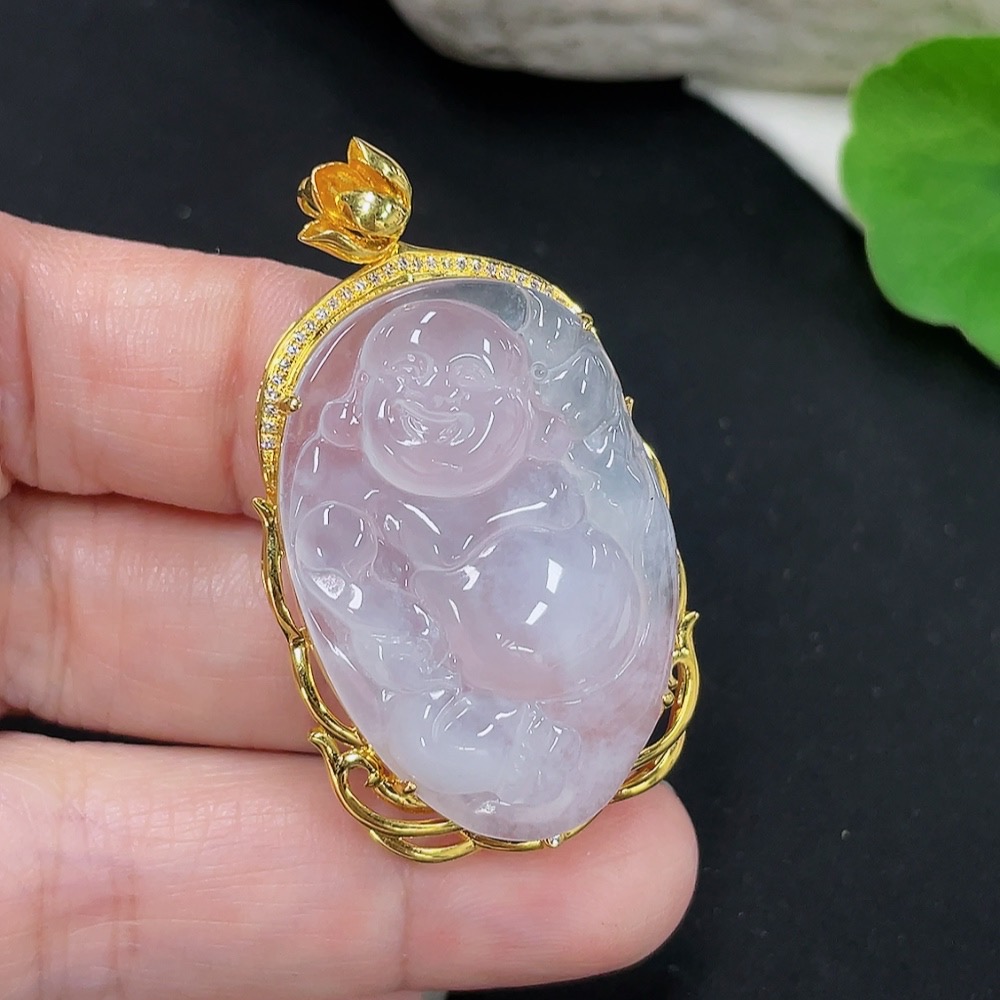Jadeite Buddha Pendant with 18K Gold Mount Total Weight Approx. 9.8g (Diamond Accented)