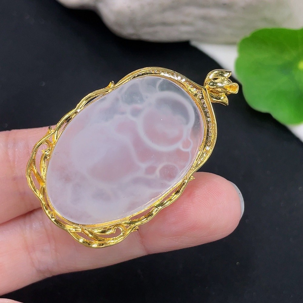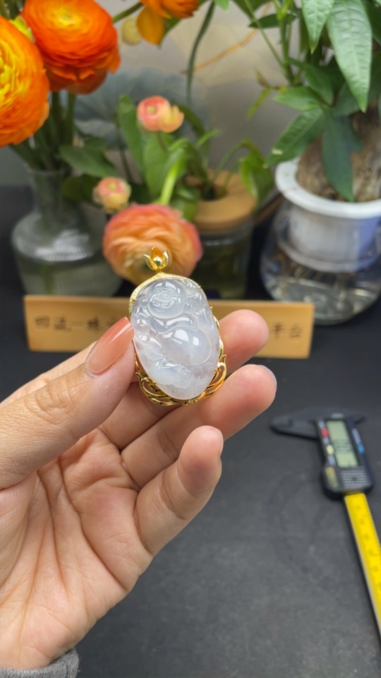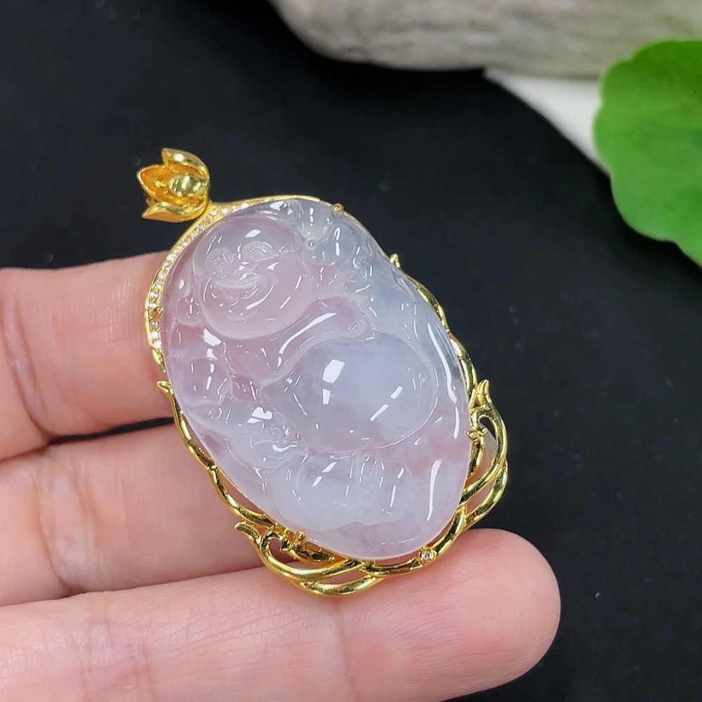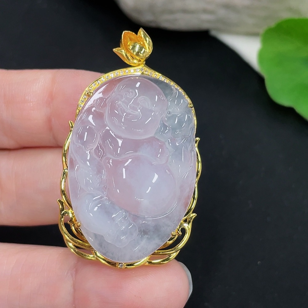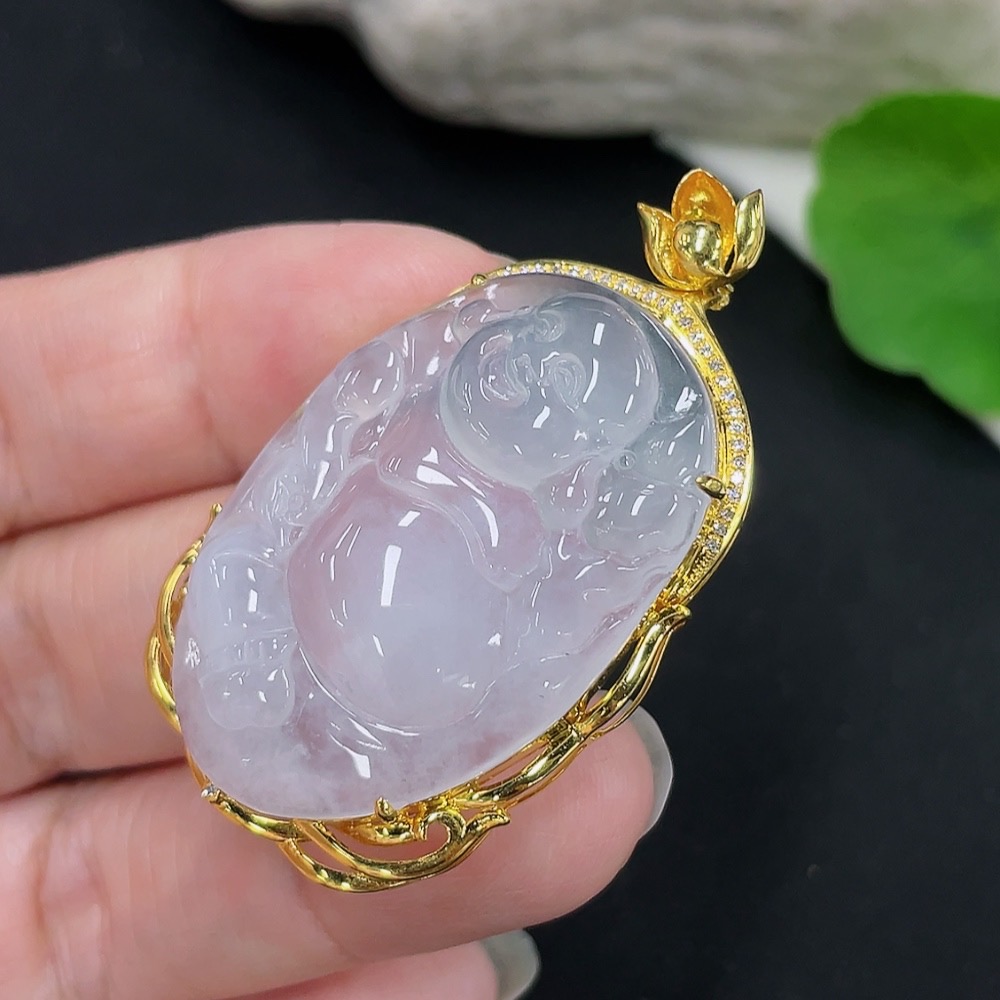 Jadeite Buddha Pendant with 18K Gold Mount Total Weight Approx. 9.8g (Diamond Accented)