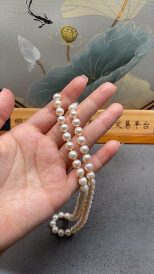 Pearl Bead Necklace Non-Gold Total Weight Approx. 31.77g Size 6.8-7.6mm