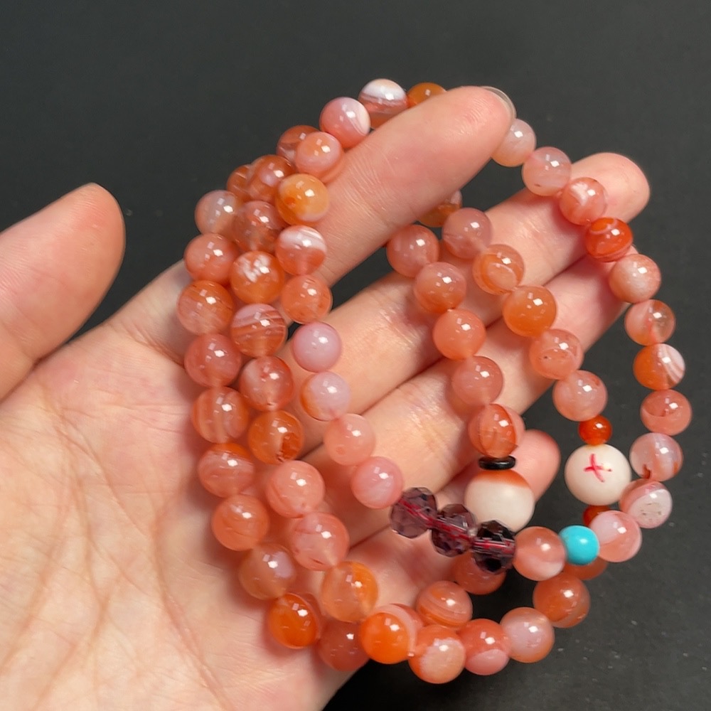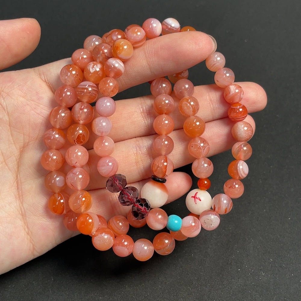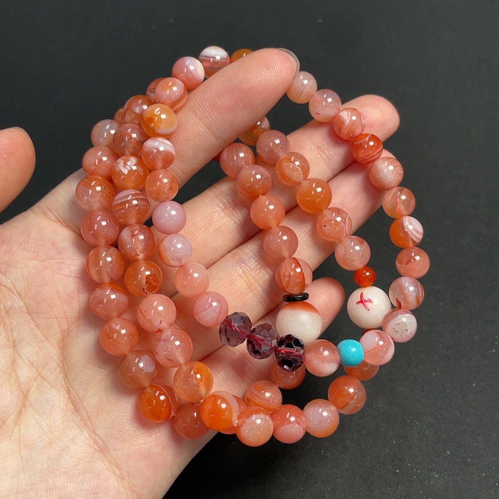 Red Agate Bracelet, Total weight approximately 54.19g, organic inclusions visible, non-natural stones considered for matching