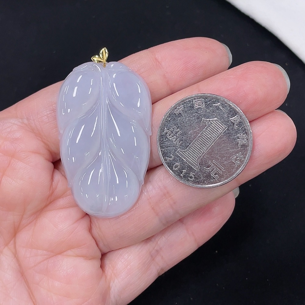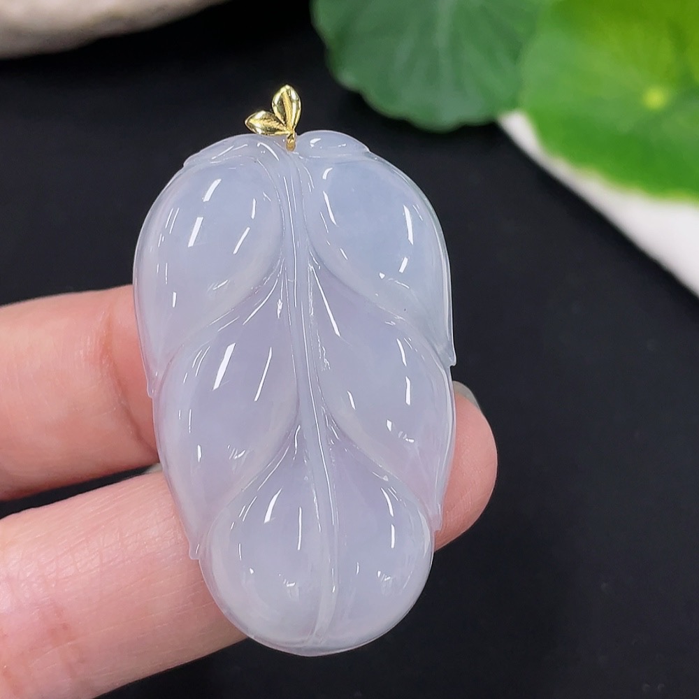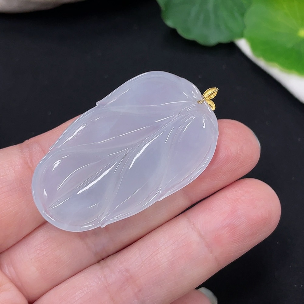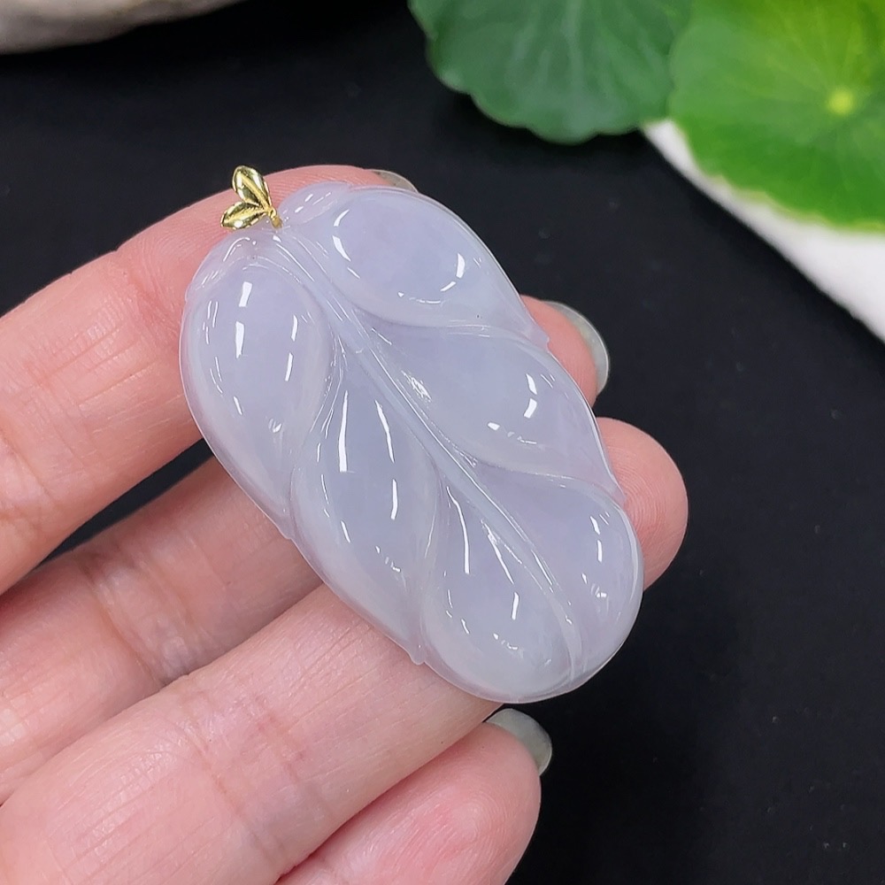 Jadeite Leaf Pendant 18K Gold Total Weight Approx. 10.1g