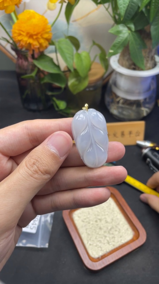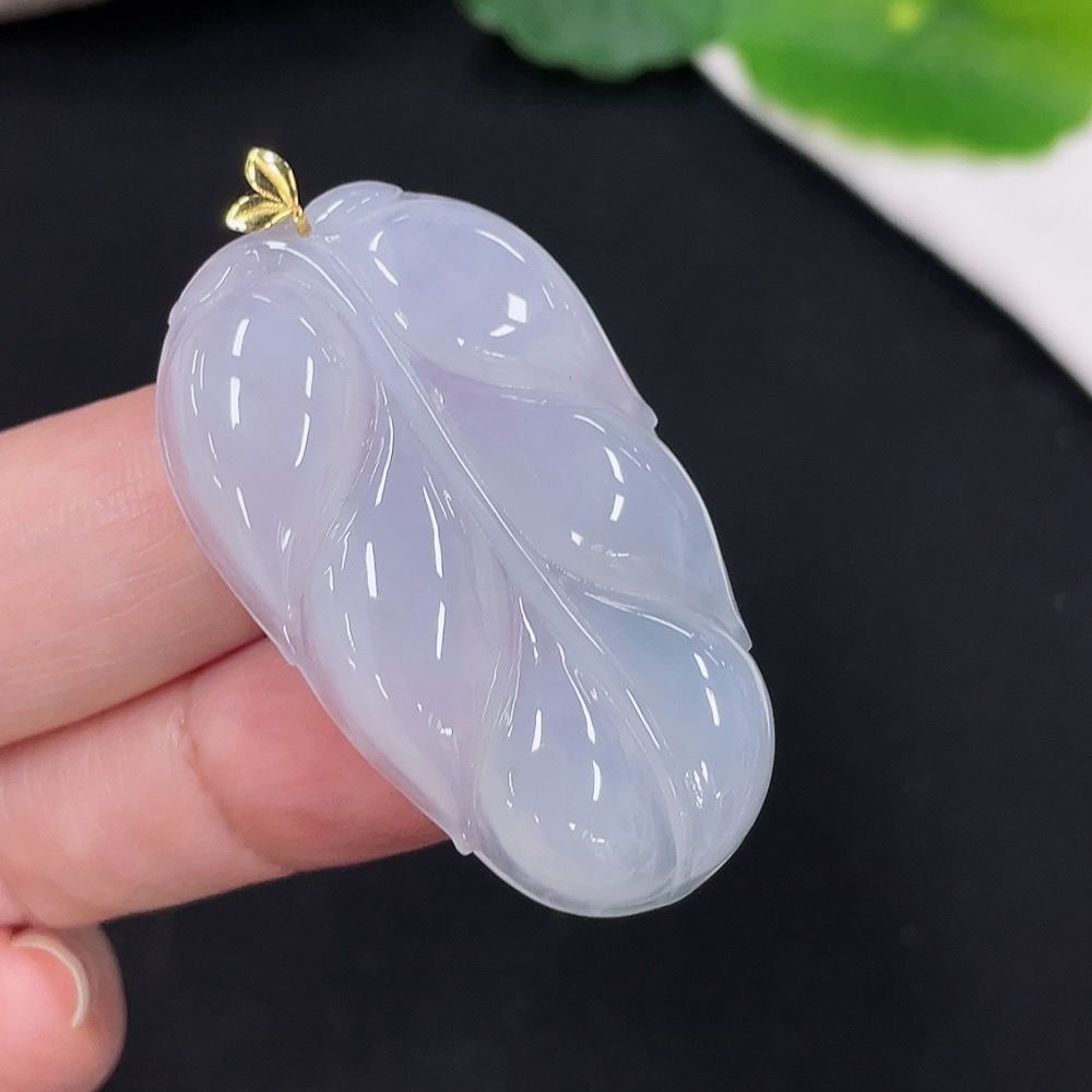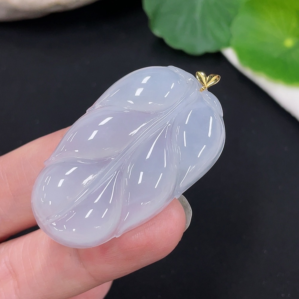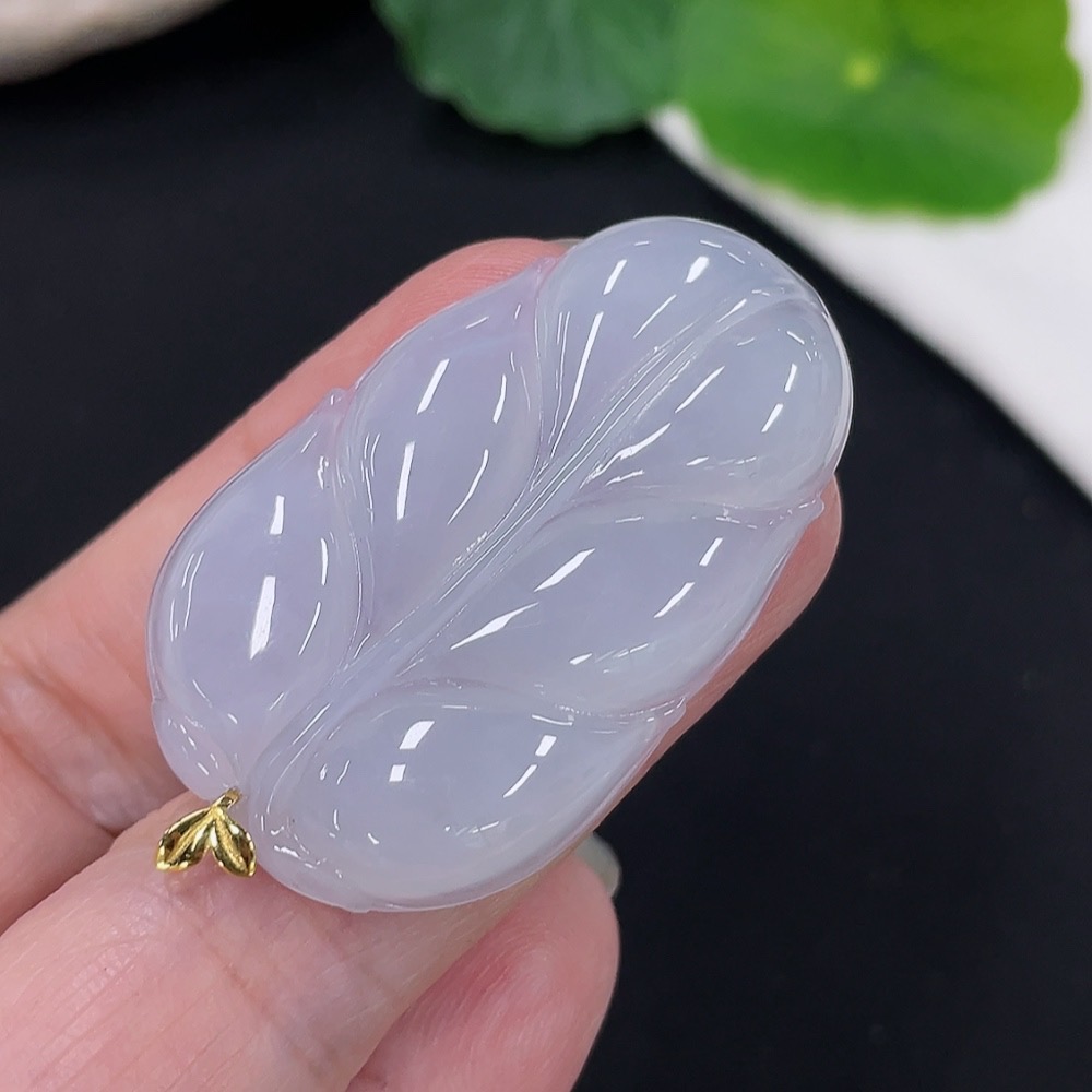 Jadeite Leaf Pendant 18K Gold Total Weight Approx. 10.1g
