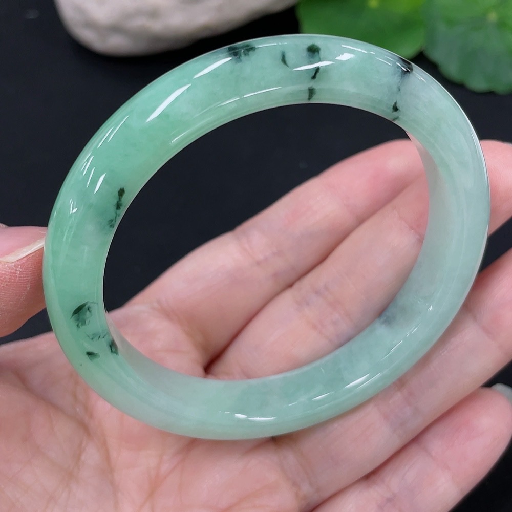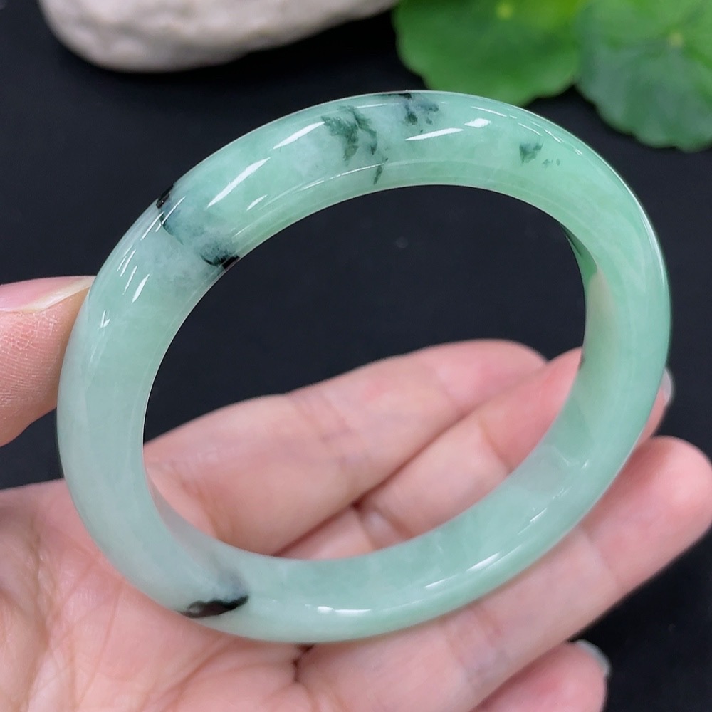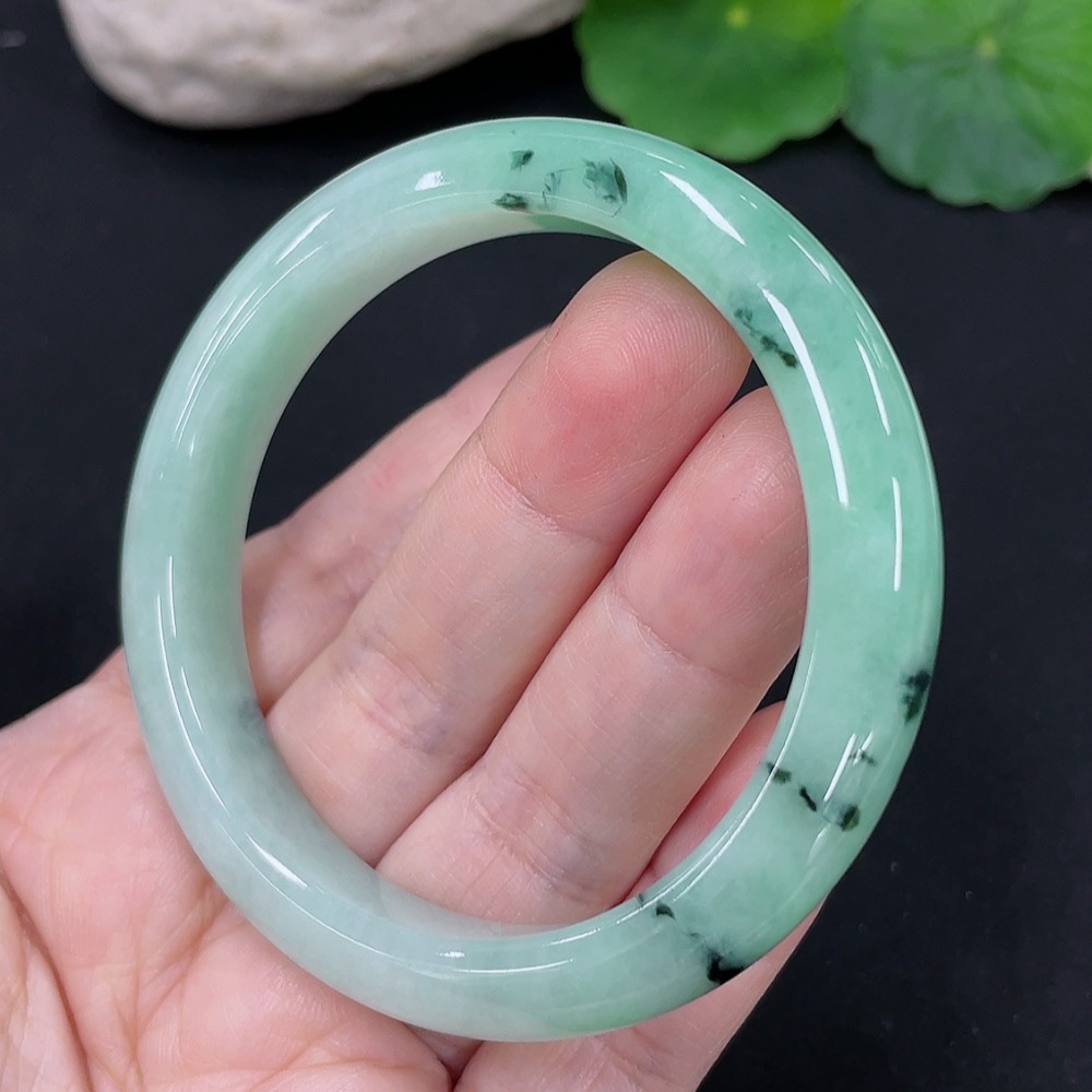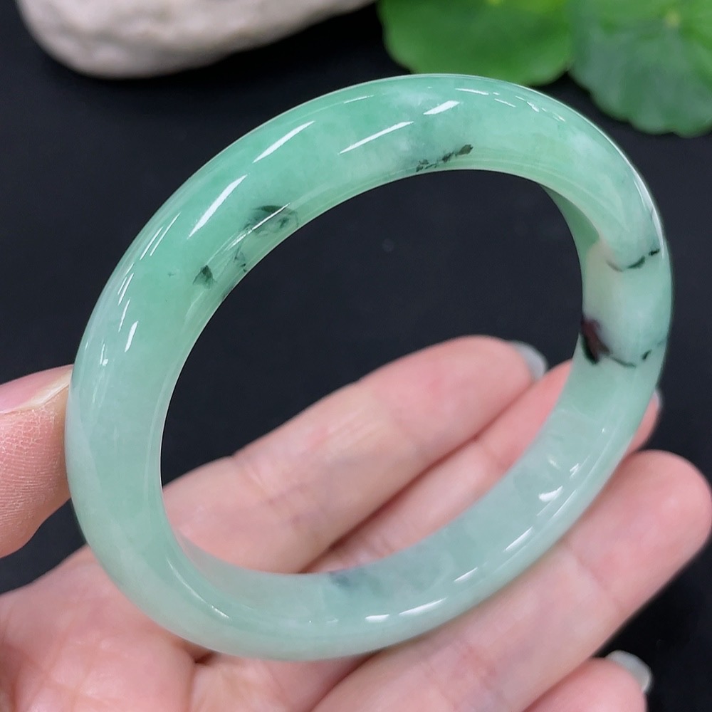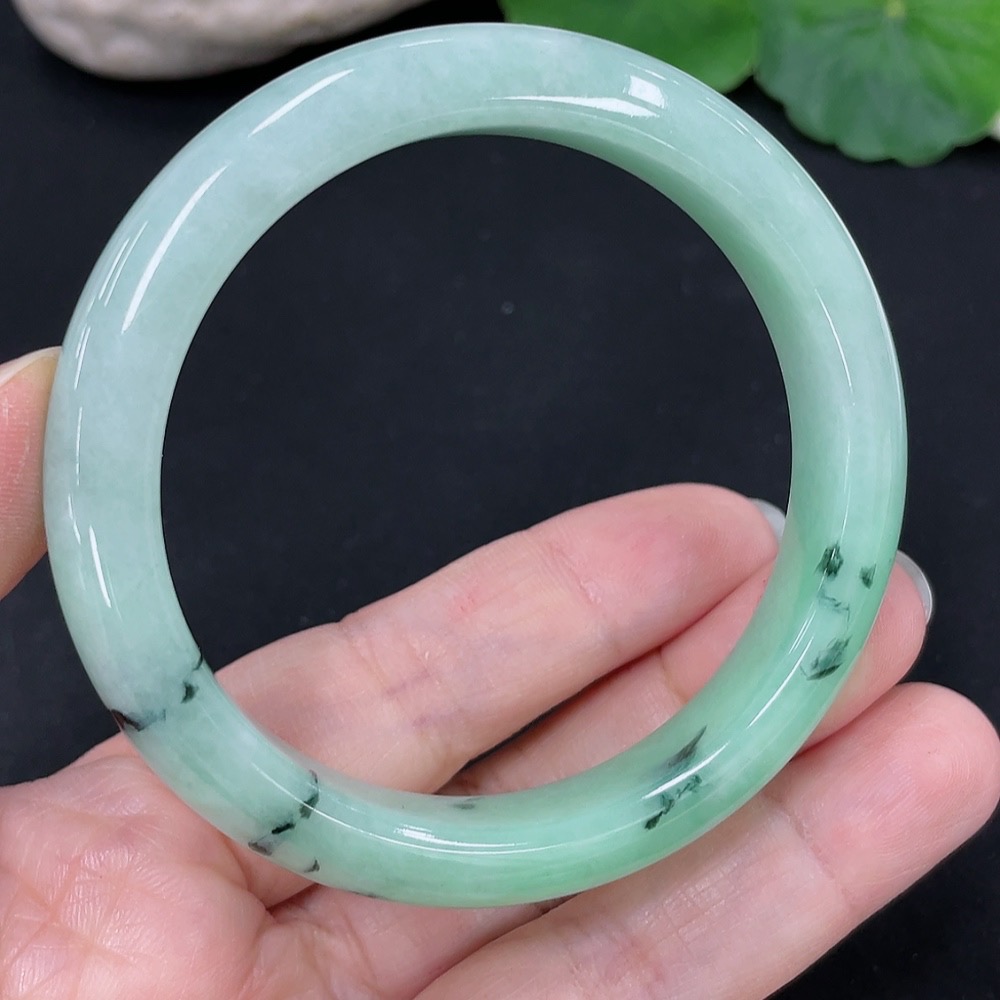 Jadeite Round Bangle, Total Weight Approx. 41.1g, Contains Other Mineral Components, Size 53
