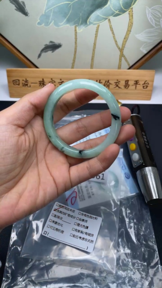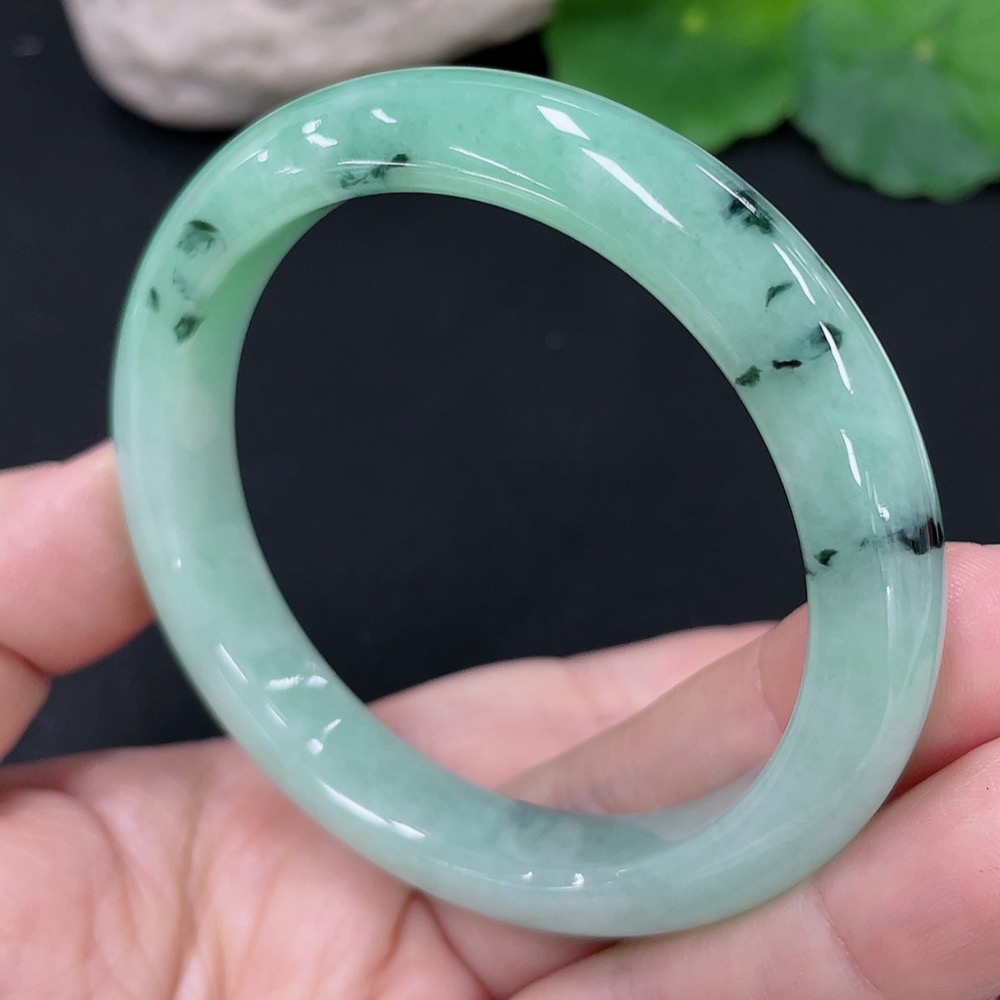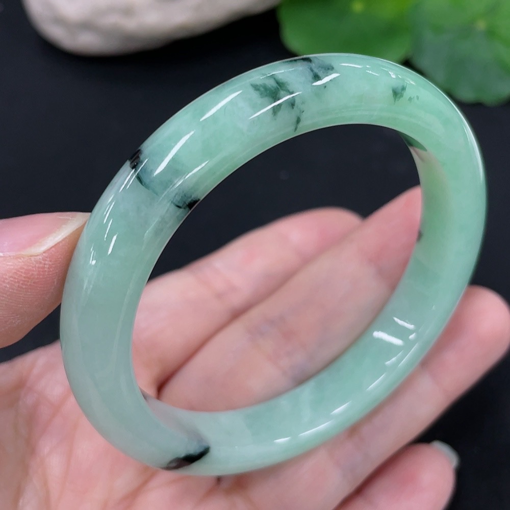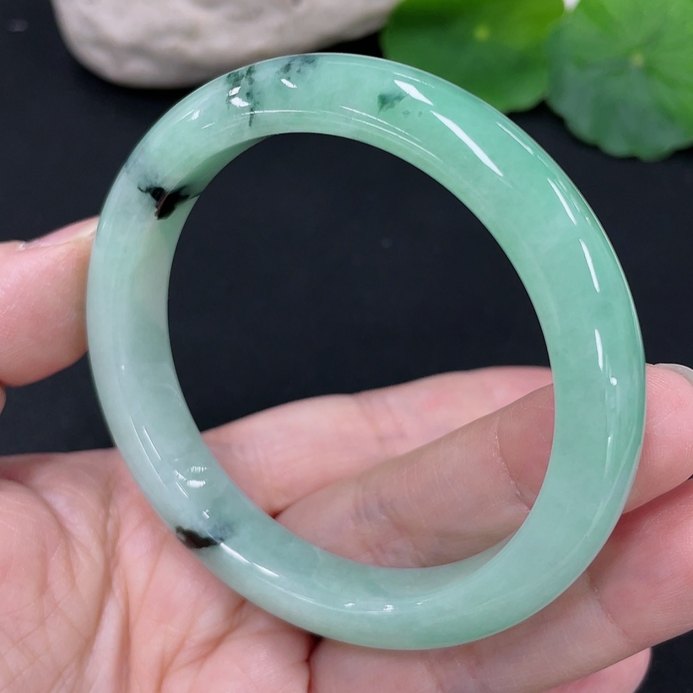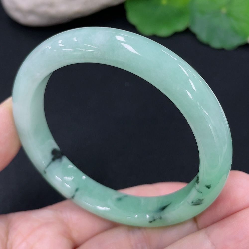 Jadeite Round Bangle, Total Weight Approx. 41.1g, Contains Other Mineral Components, Size 53