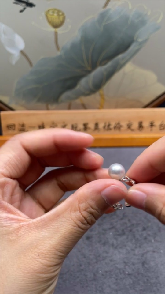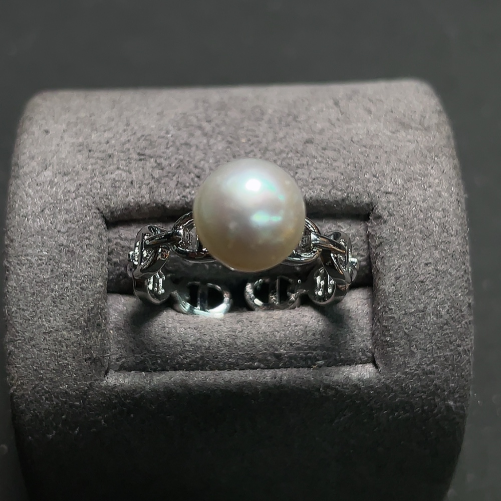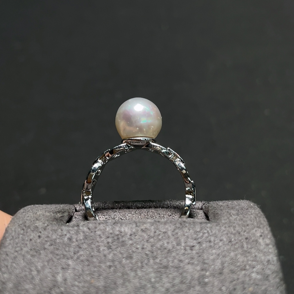 Seawater Pearl Ring, Color Origin Undetermined, Total Weight Approximately 2.48g, Adjustable Opening, Non-Gold, Size Around 8.4mm