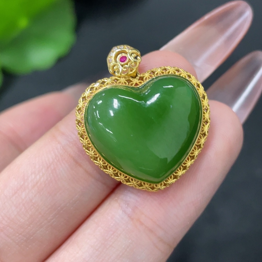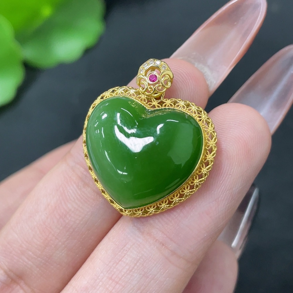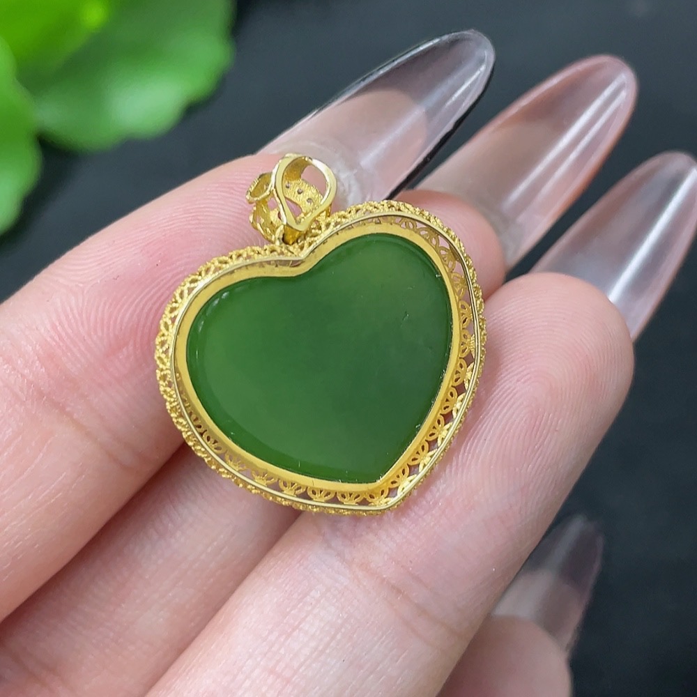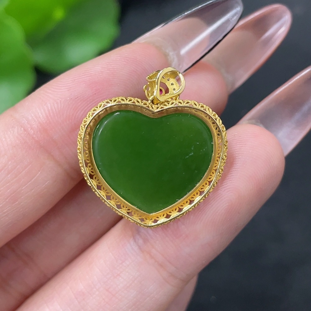 Hetian Jade Inlaid Pendant Heart Non-Diamond 18K Gold Total Weight Approx. 3.8g