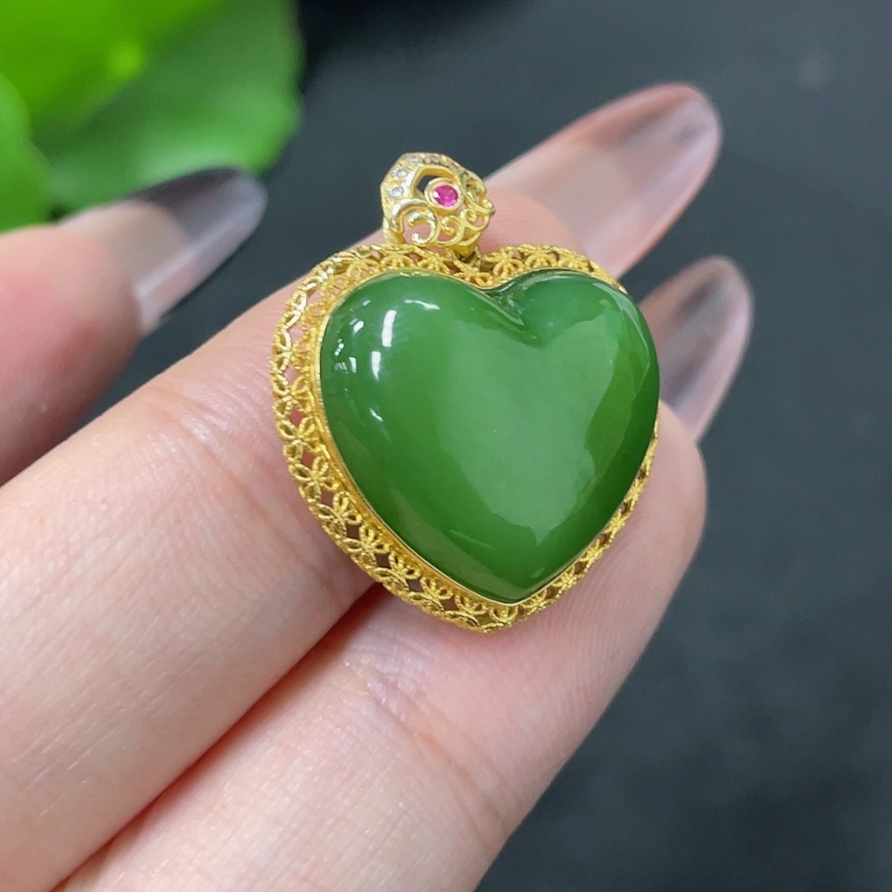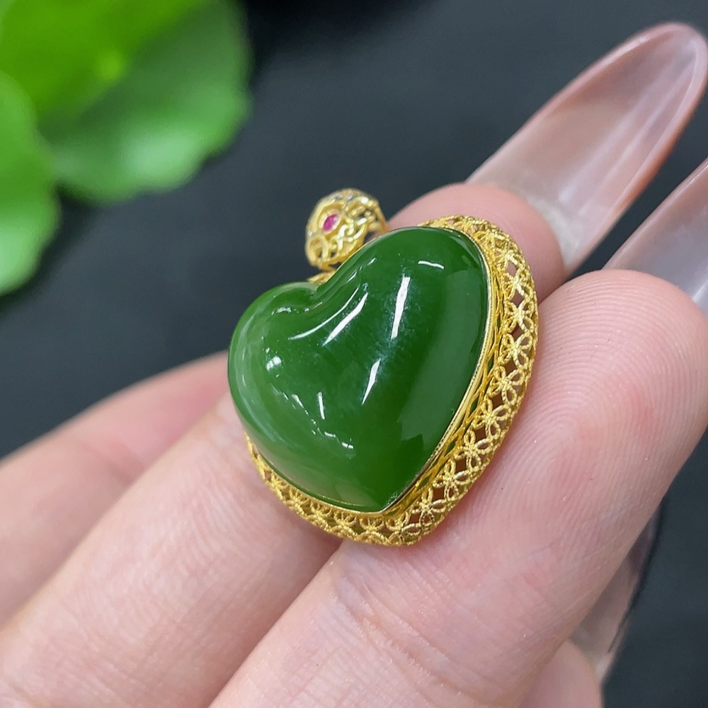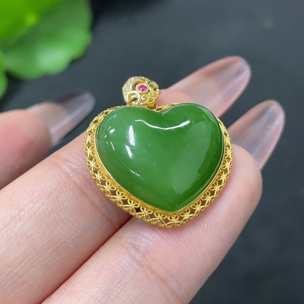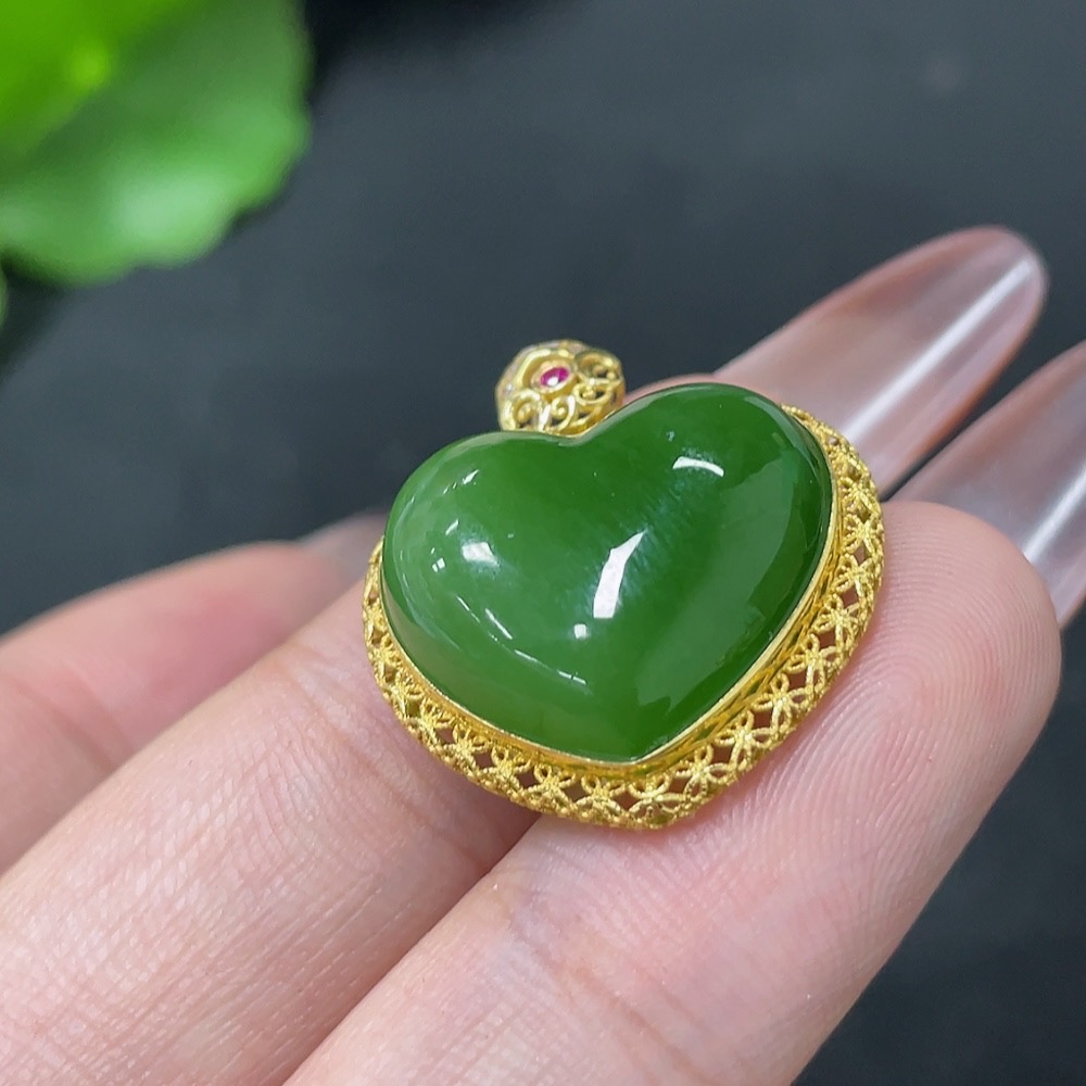 Hetian Jade Inlaid Pendant Heart Non-Diamond 18K Gold Total Weight Approx. 3.8g