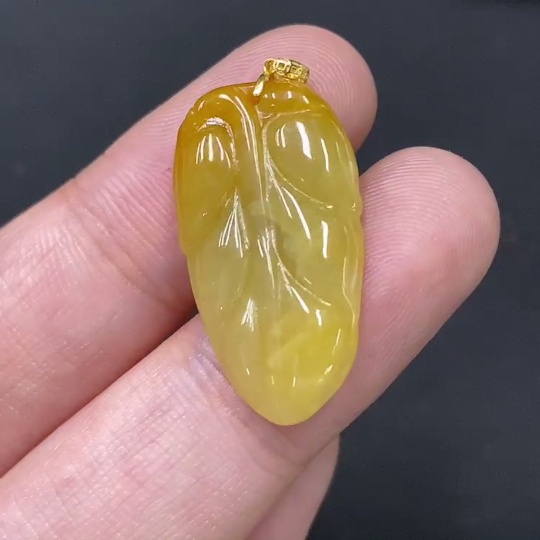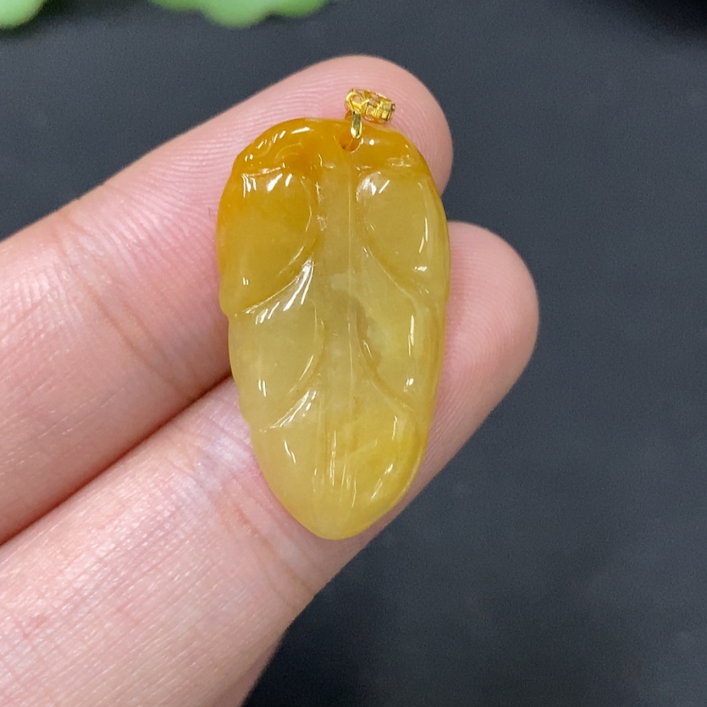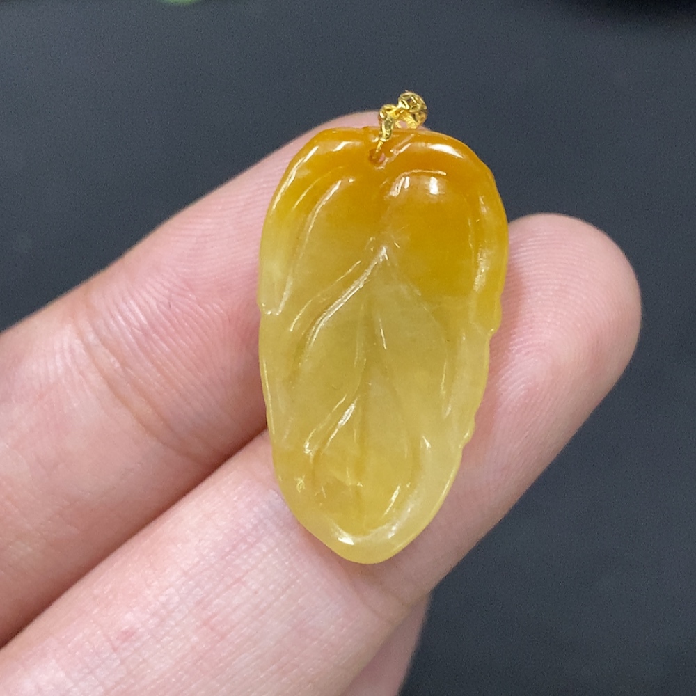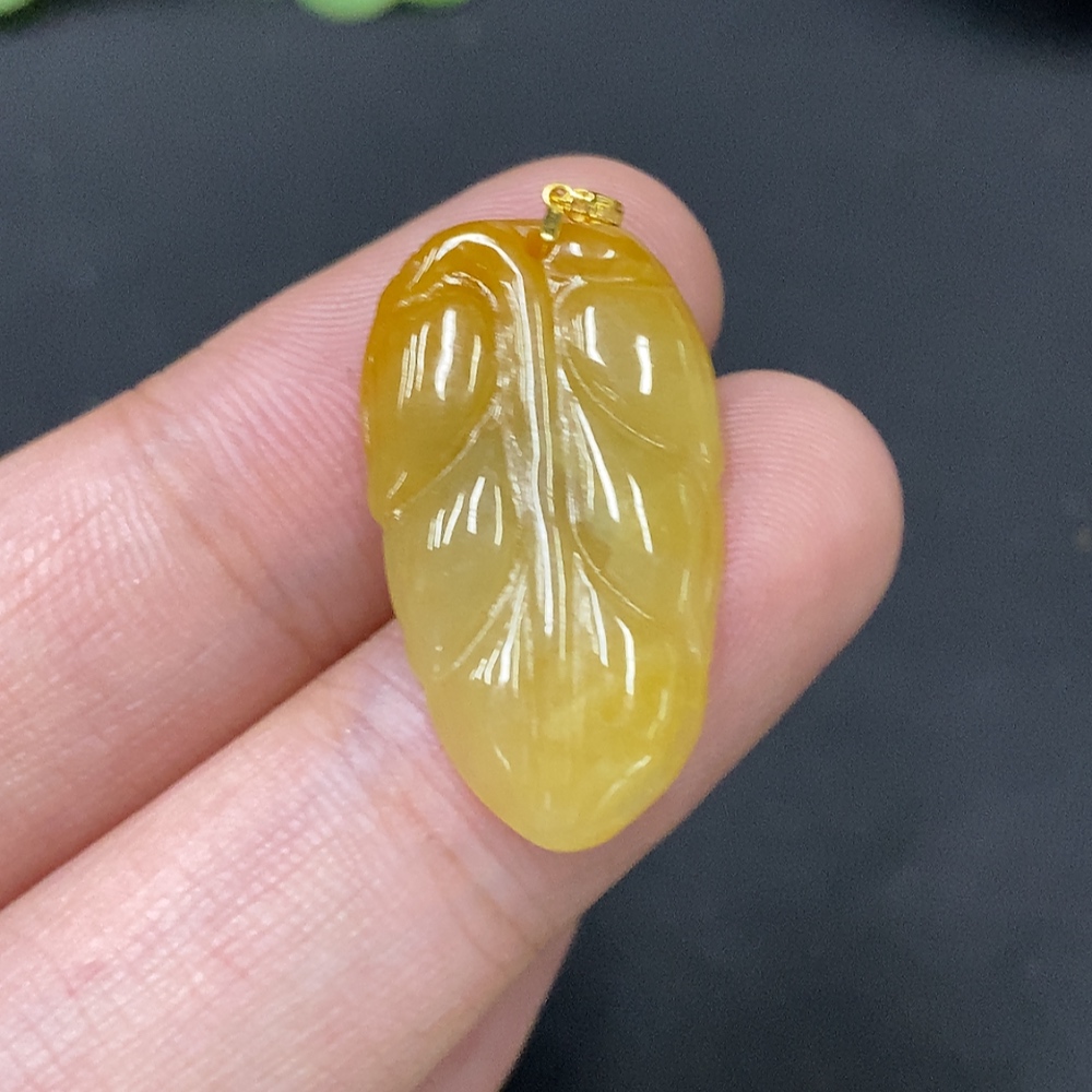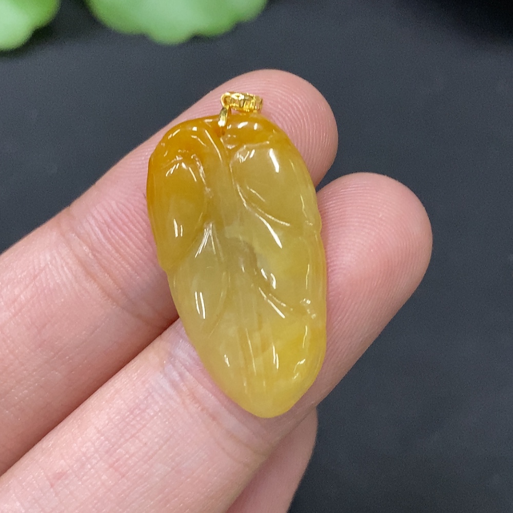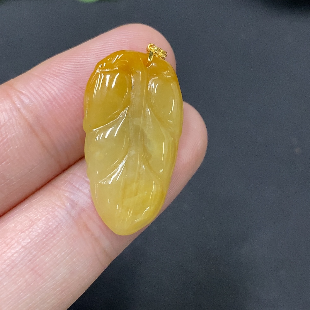 Jadeite Pendant, Total Weight Approx. 2.2g, Leaf, 18k Bail, Color Origin Undetermined