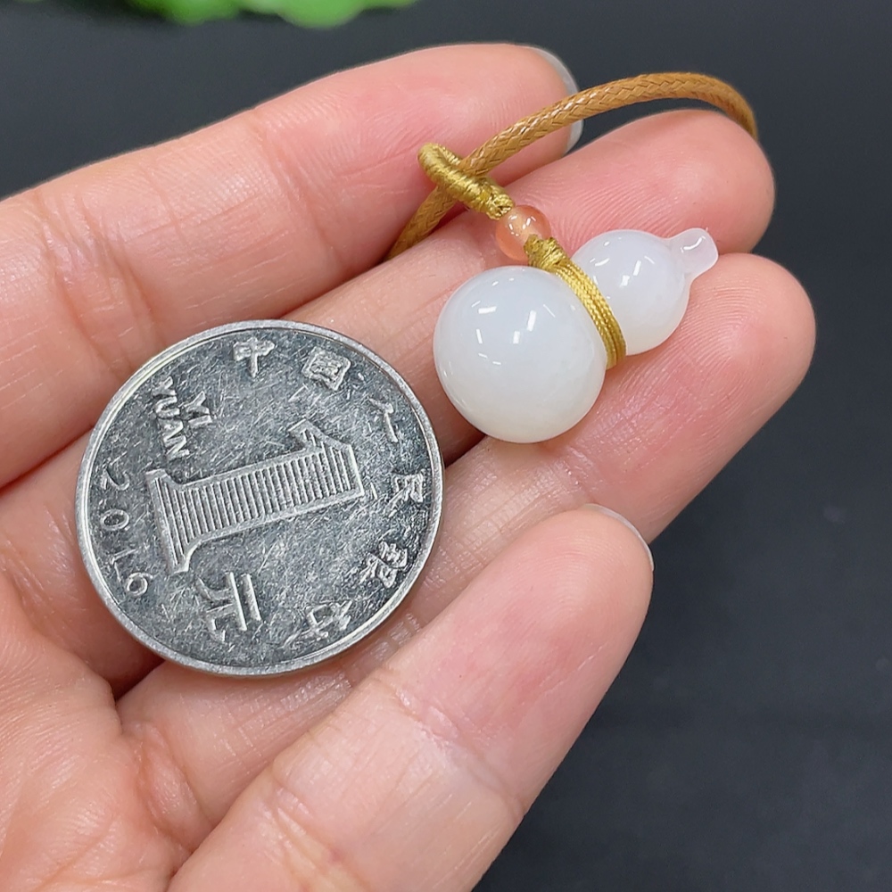 Hetian Jade Pendant Gourd Total Weight (with rope) approx. 4.9g Matching beads not Hetian Jade