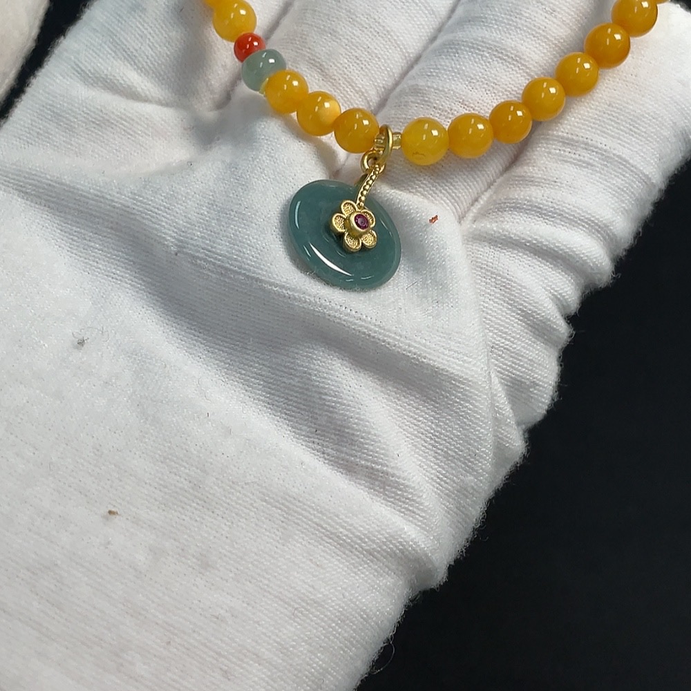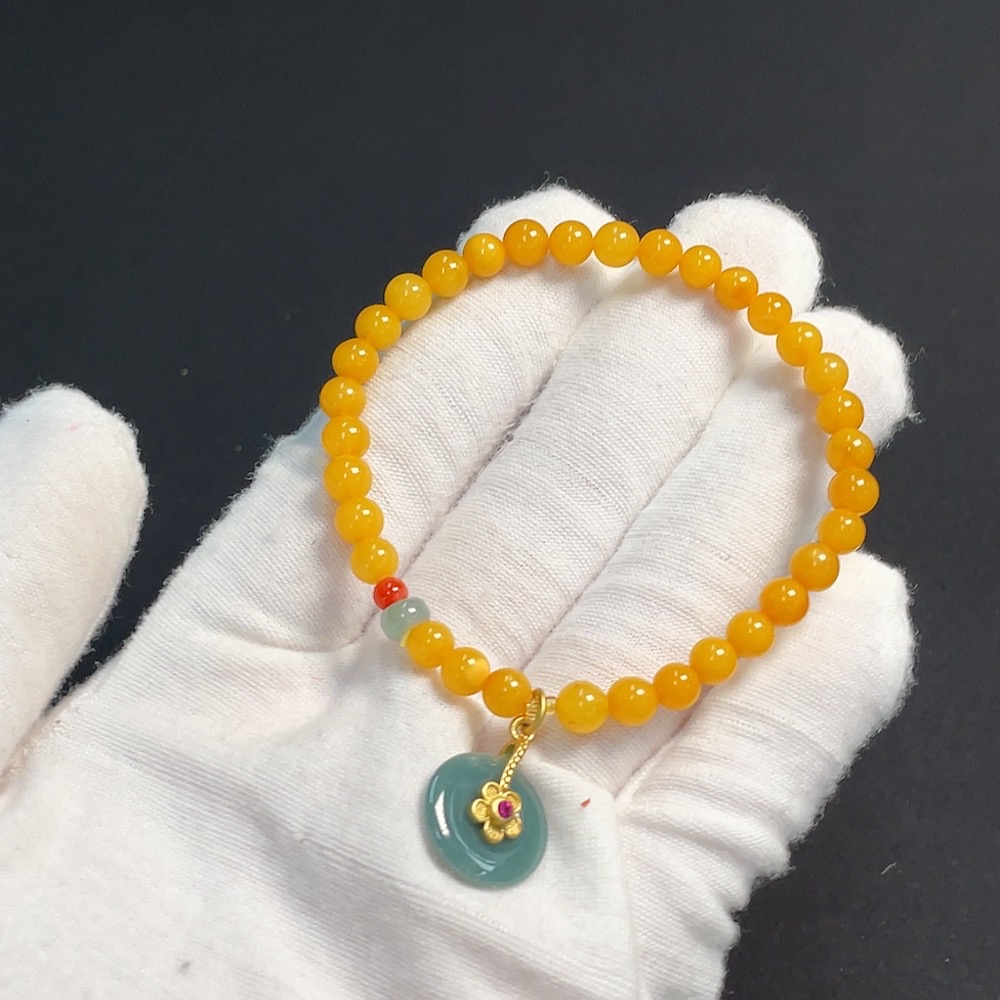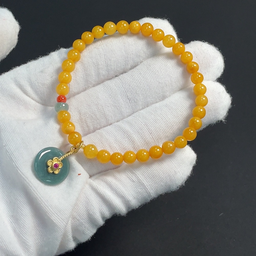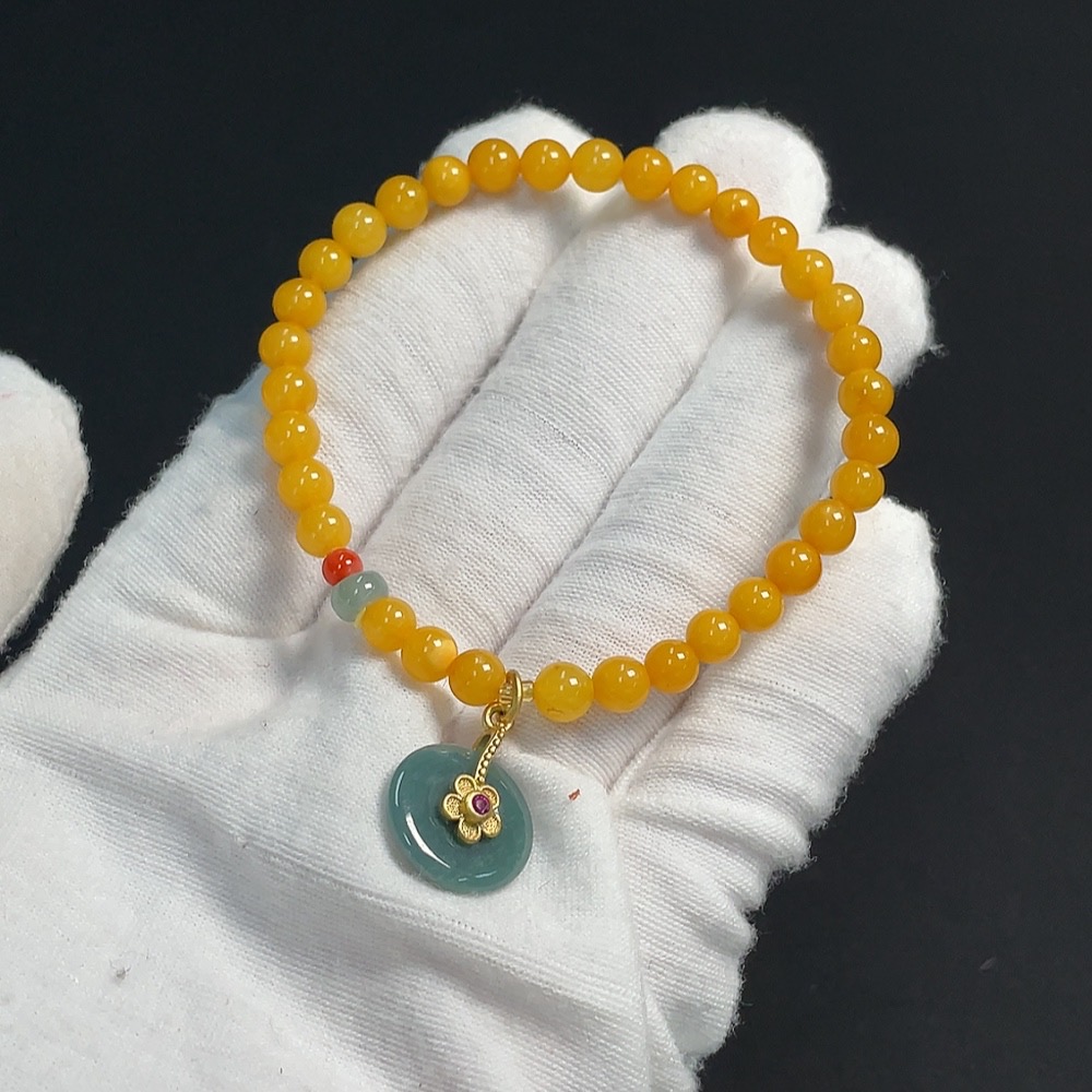 Amber Beeswax Bracelet with Jadeite and Southern Red Agate, Non-Gold, Total Weight Approximately 4.49g, Size About 5.1mm