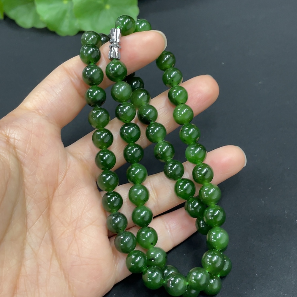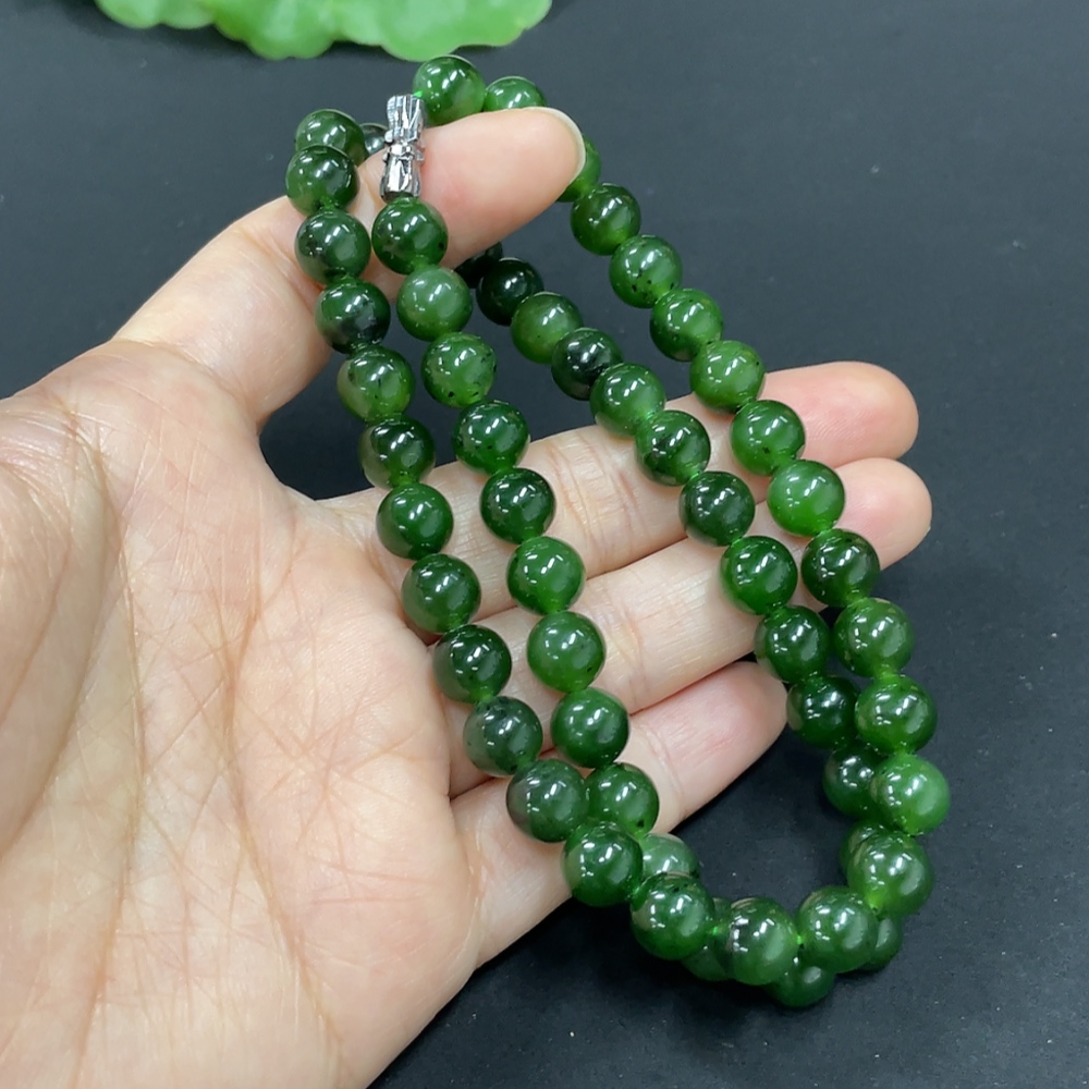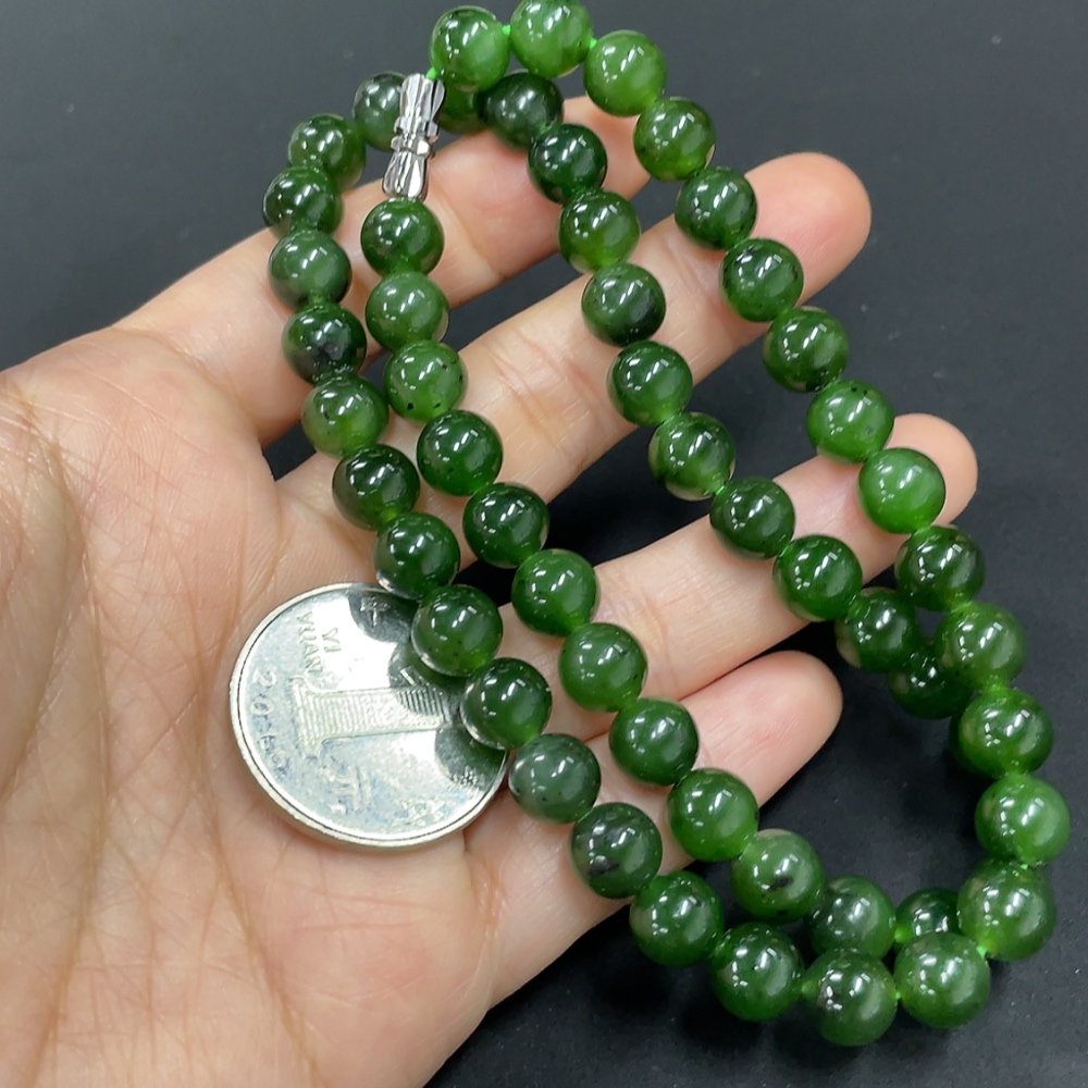 Hetian Jade Jasper Bead Necklace, approx. 7.8mm, total weight approx. 44.2g