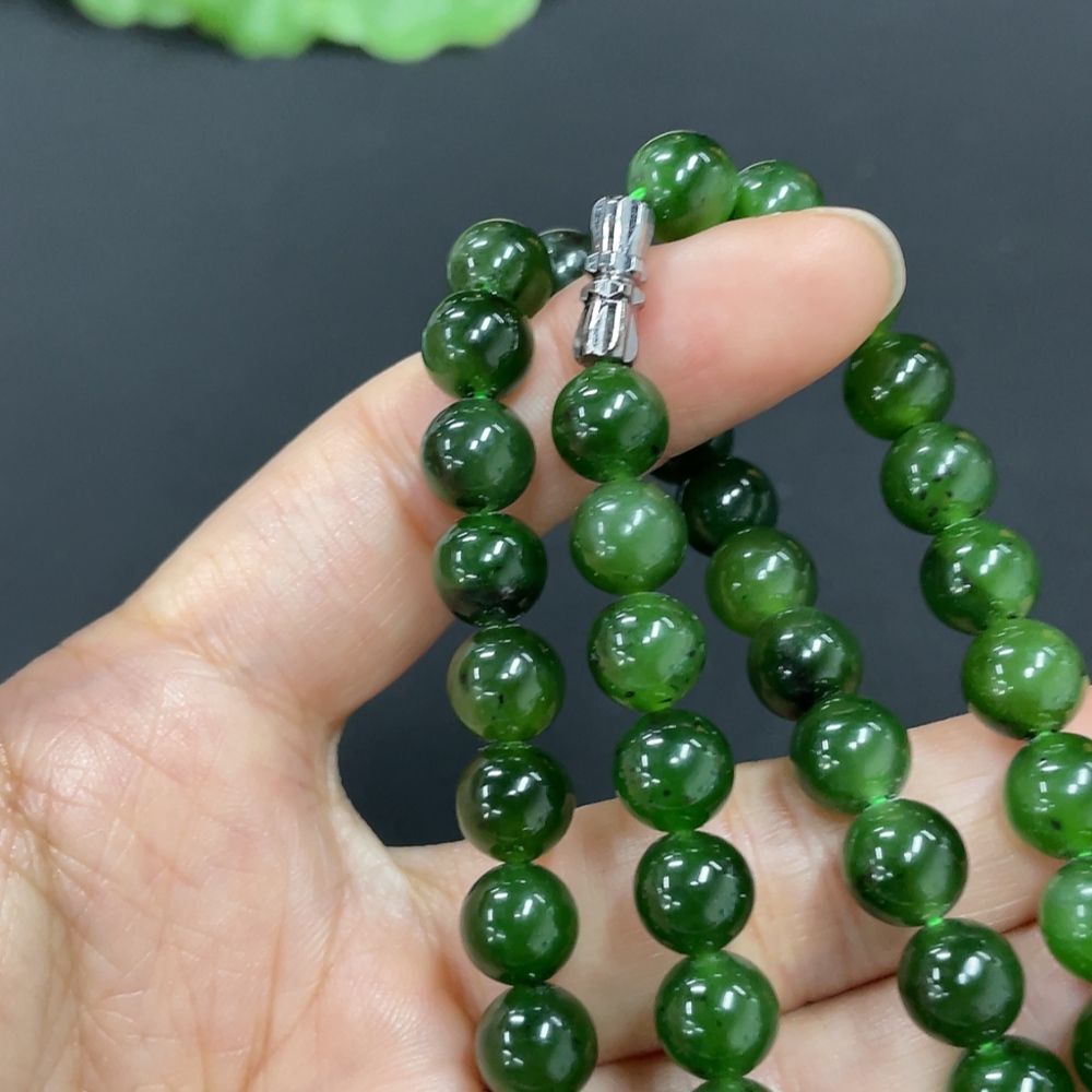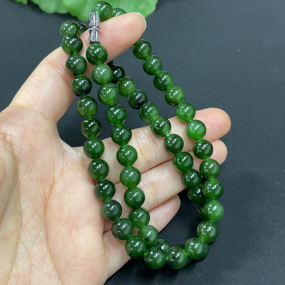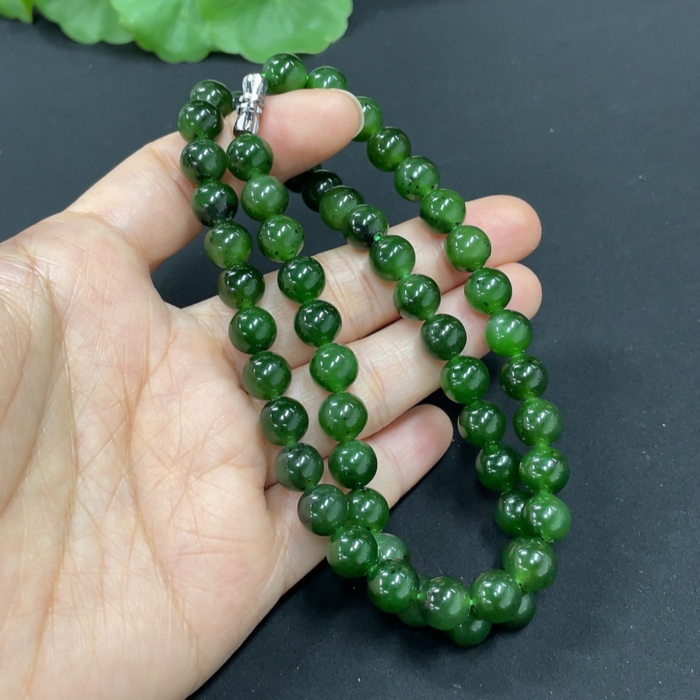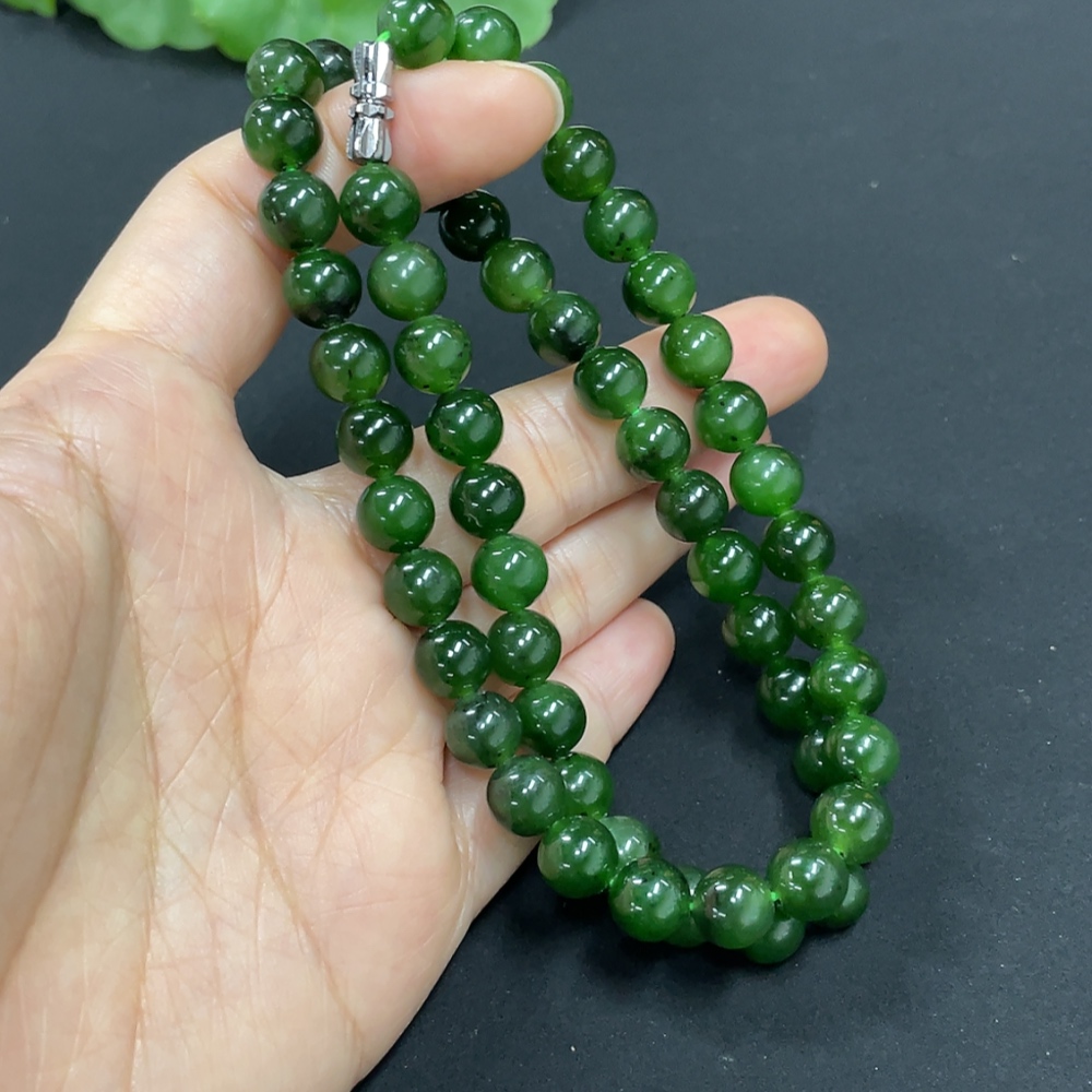 Hetian Jade Jasper Bead Necklace, approx. 7.8mm, total weight approx. 44.2g