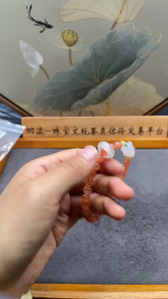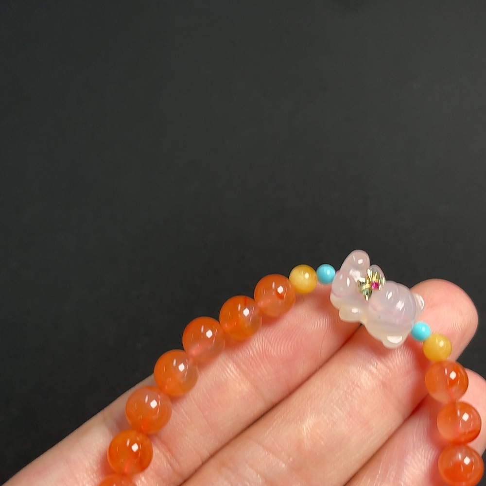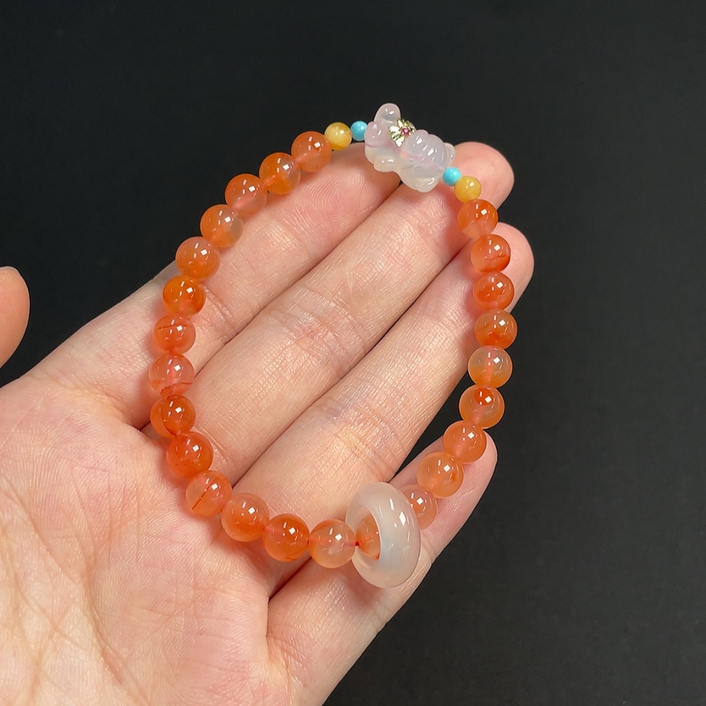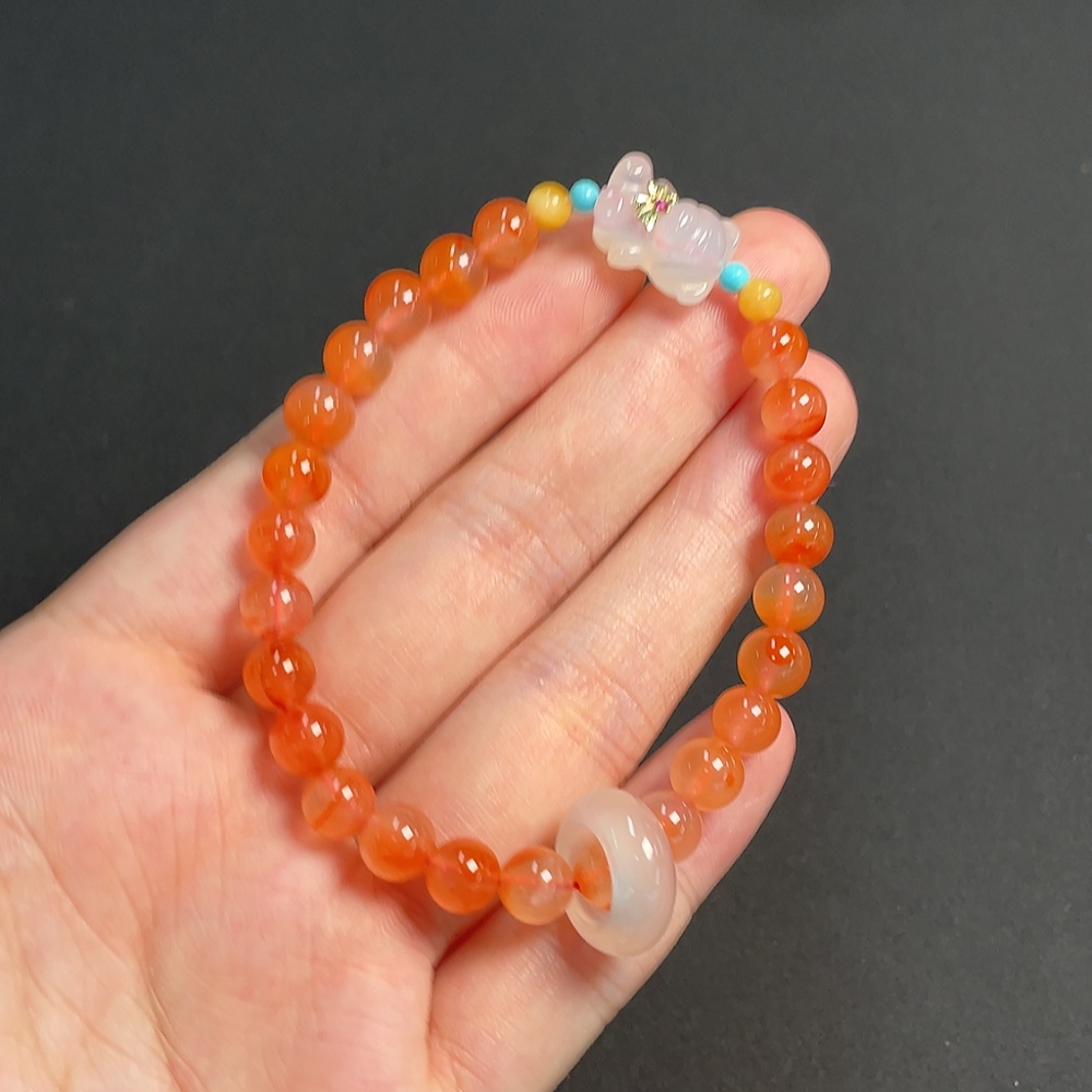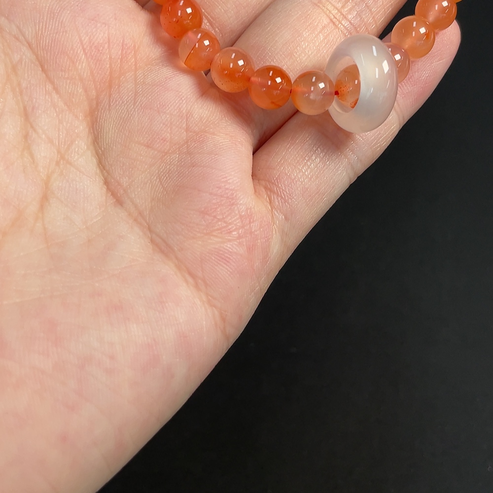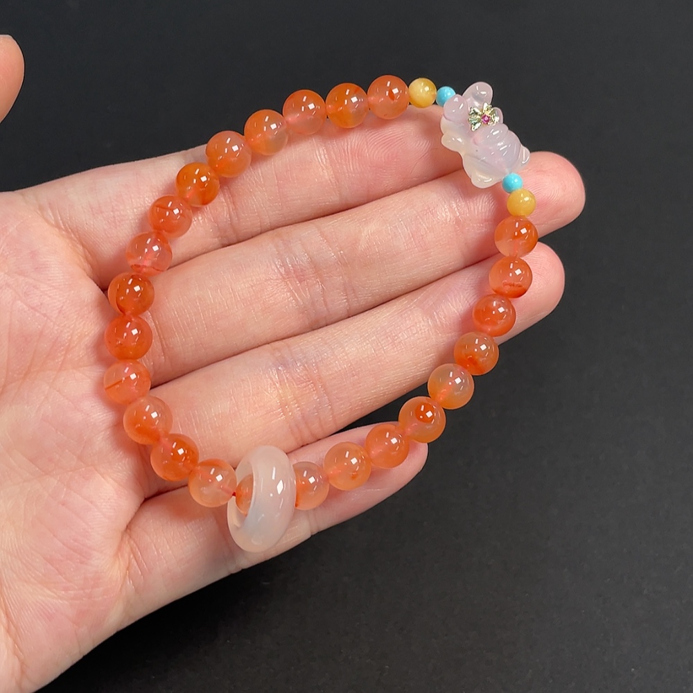 Red Agate Bracelet with Amber, Visible Organic Matter, Non-Natural Accent Stones Considered, Non-Metal, Total Weight Approx. 13.2g, Size About 6.4mm
