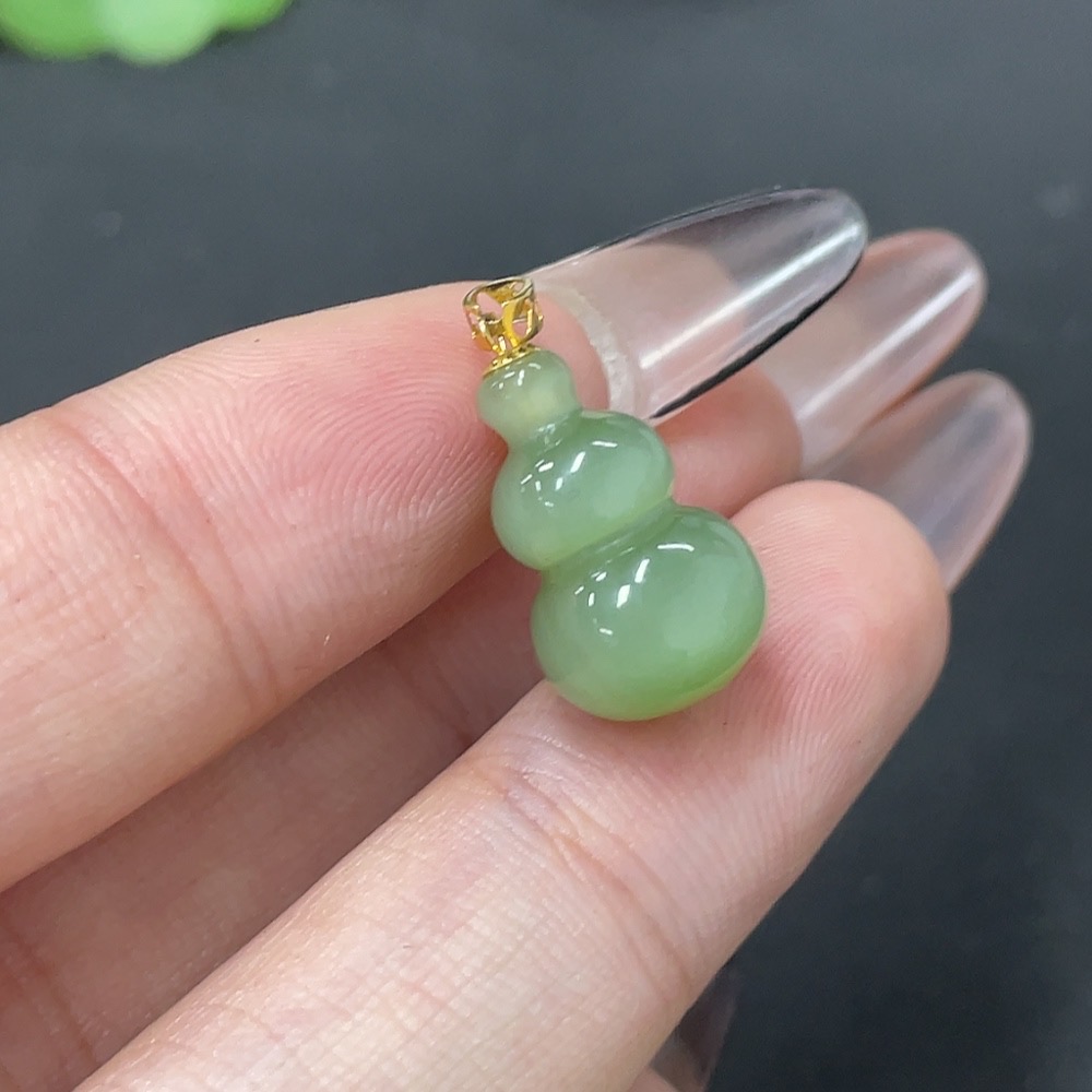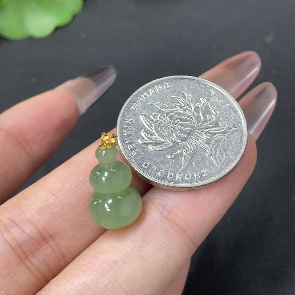 Hetian Jade Pendant Gourd 18k Gold Total Weight About 1.8g